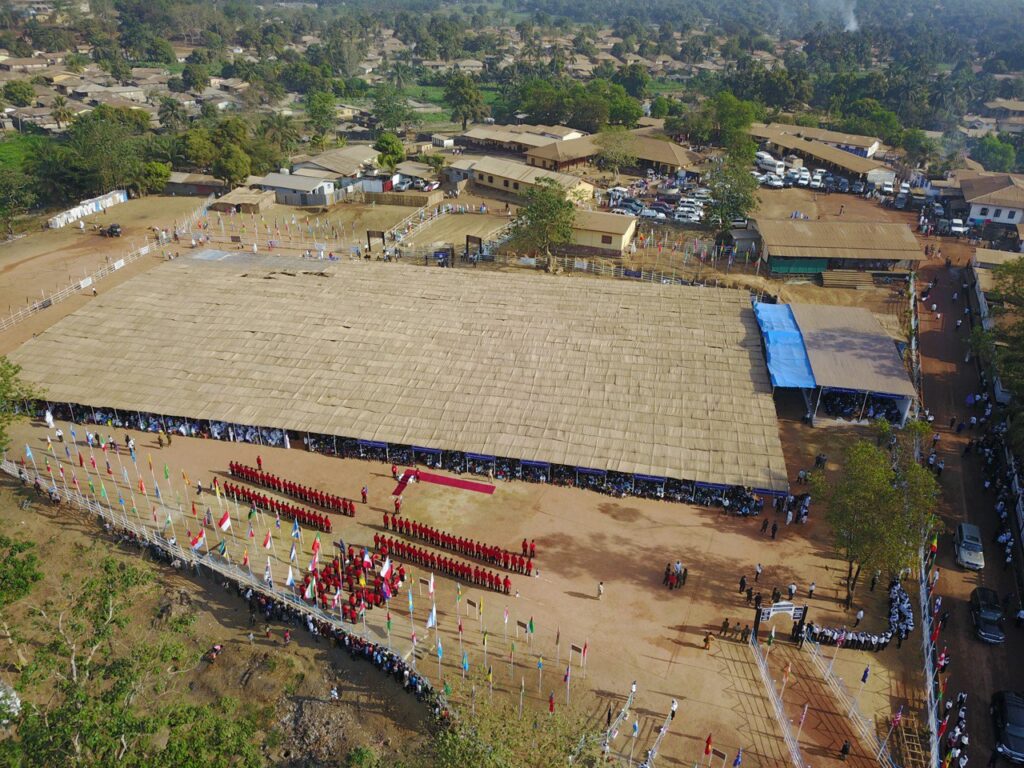پا علی روجرز صاحب کی جانب سے ہبہ کردہ قطعہ زمین پر ۱۰ مئی ۱۹۷۰ء کو حضرت خلیفة المسیح الثالث رحمہ اللہ تعالیٰ نے سنگِ بنیاد رکھا۔ حضور کی موجودگی میں پا علی روجرز صاحب، سعیدو بنگورا صاحب اور محمد کمانڈابونگے صاحب نے بھی مسجد کی بنیاد میں اینٹیں نصب کیں۔(الفضل ۴؍جون ۱۹۷۰ء)