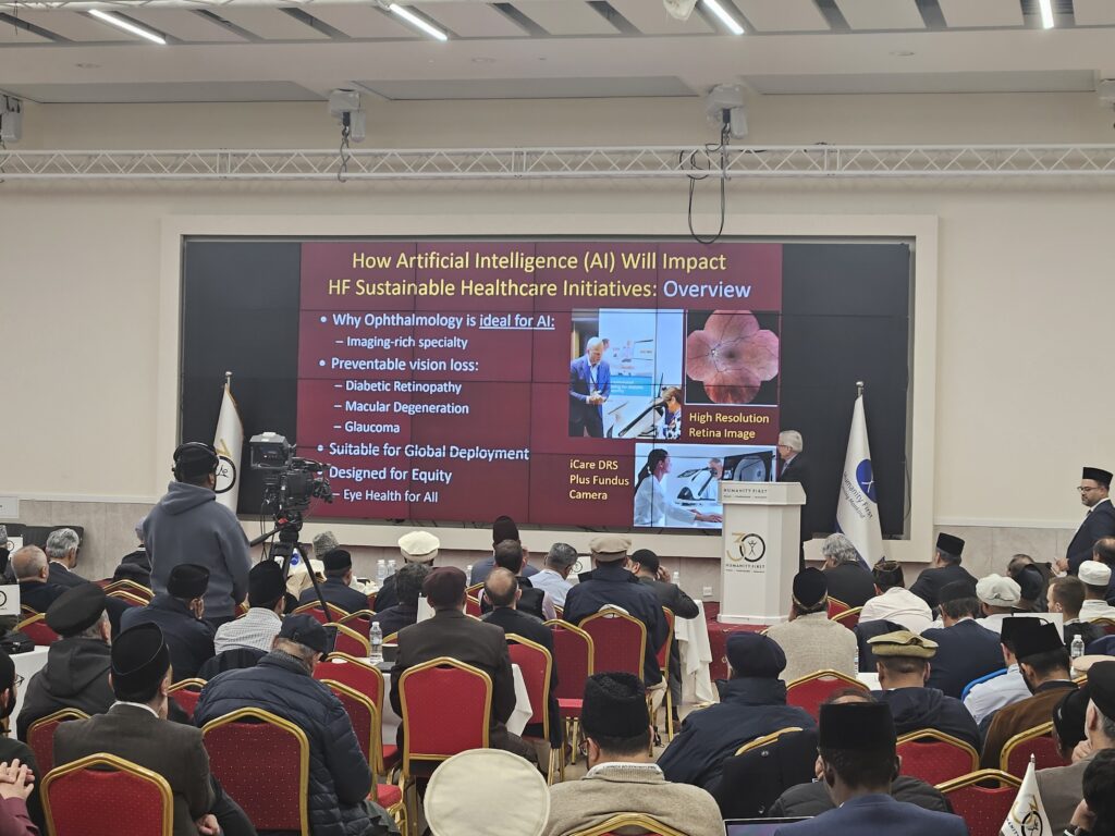 ہیومینٹی فرسٹ ہیلتھ اینڈ کیئر کے سی ای او مکرم ماجد خان صاحب نے پائیدار ترقی اور مستقبل کے امکانات کے لیے ایک نمونہ، شفا کے سفر پر مشتمل ایک ڈاکٹر کی رُوداد میں اپنے عملی تجربے کو ناصر اسپتال گوئٹے مالا کی ڈاکٹر گیبریلا موٹا صاحبہ نے بیان کیا جبکہ آپتھلمولوجی چیئرلویولا یونیورسٹی آف شکاگو کے ڈاکٹر چارلس باؤچرڈ صاحب نےہیومینٹی فرسٹ کے ہیلتھ کیئر ہسپتالوں میں اے آئی کی معاونت سےآنکھوں کی نگہداشت کے بارے میں اپنے خیالات کا اظہار کیا۔ جس کے بعد ہیومینٹی فرسٹ ہیلتھ کیئر سروسز کے بارے میں سوالات و جوابات کا ایک سیشن بھی منعقد کیا گیا۔