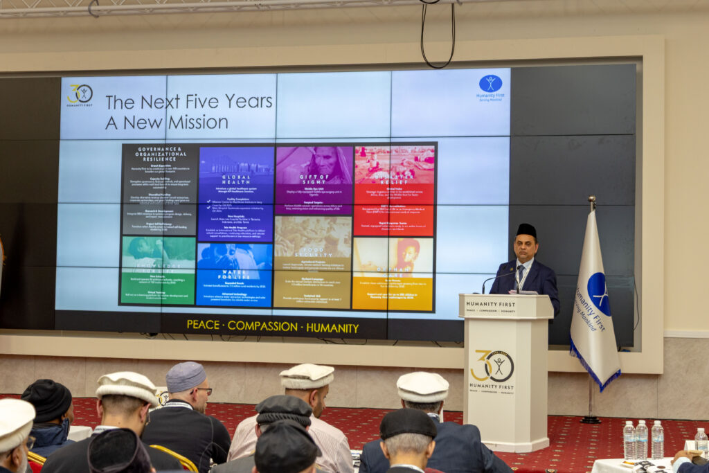 (۲۸؍نومبر ۲۰۲۵ء، مسجد بیت الفتوح، نمائندہ الفضل انٹرنیشنل) محض اللہ تعالیٰ کے فضل و کرم سے ہیومینٹی فرسٹ انٹرنیشنل کے قیام کے تیس سال مکمل ہونے پر مسجد بیت الفتوح میں ’’امن، شفقت اور انسانیت‘‘ کے مرکزی عنوان پر تین روزہ تاریخی کانفرنس کا آغاز آج سے ہوا جس میں دنیا کے پچاس سے زائد ممالک کے پانچ سو سے زائدنمائندگان، ماہرین، رضاکاران اور مختلف شعبوں کے قائدین شرکت کررہے ہیں۔ اس کانفرنس کے اہم مقاصد میں تیس سالہ خدمات کا جائزہ، آئندہ پانچ سال کے لیے عالمی حکمتِ عملی، عالمی غربت، قرضوں کے بحران اور سماجی چیلنجز پر مکالمہ، مصنوعی ذہانت (AI) اور جدید ٹیکنالوجی کے کردار کا جائزہ، عالمی صحت اور ہیلتھ کیئر سسٹمز کی بہتری، قدرتی آفات میں ہنگامی امداد کے نئے ماڈلز اور مختلف ممالک میں ہیومینٹی فرسٹ کے کاموں کاجائزہ لینا شامل ہے۔
