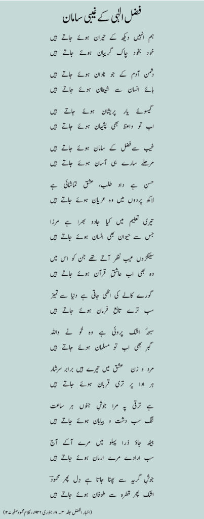 (اخبار الفضل جلد ۱۳۔ ۸؍جنوری ۱۹۲۶ء، کلام محمود صفحہ۱۲۷)