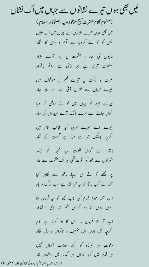 مَیں بھی ہوں تیرے نشانوں سے جہاں میں اک نشاں