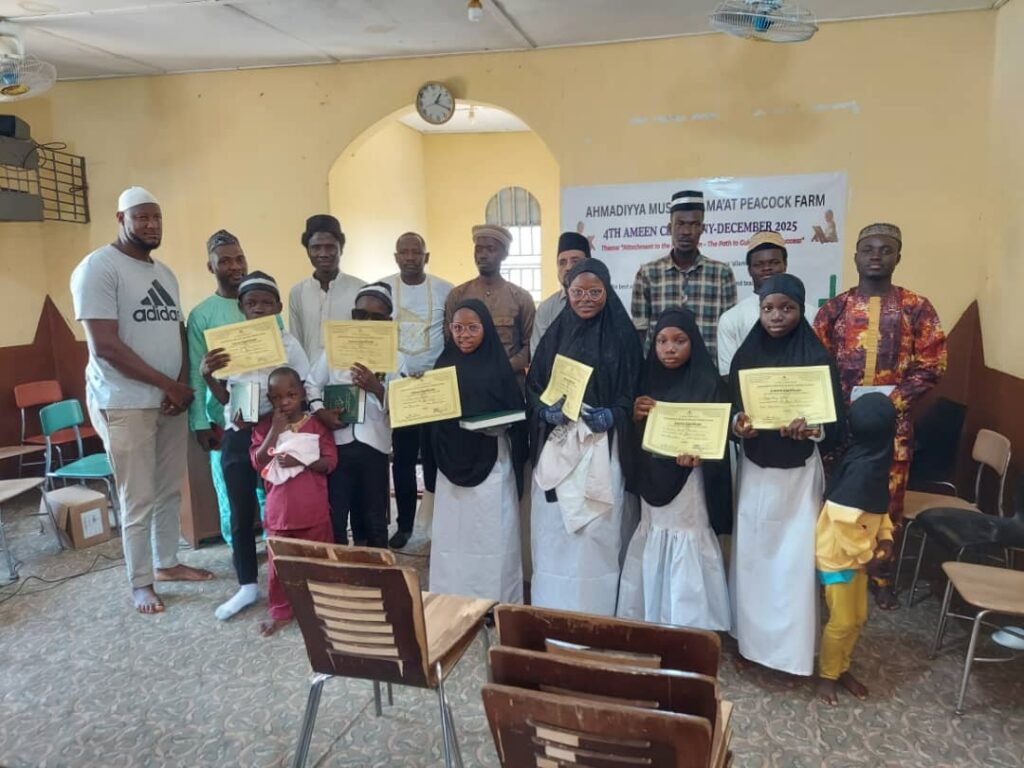 مکرم منیر حسین صاحب ریجنل مبلغ ویسٹرن ریجن، سیرالیون تحریر کرتے ہیں کہ مورخہ ۱۶؍ نومبر ۲۰۲۵ء کو فری ٹاؤن کی جماعت ایلن ٹاؤن میں قرآن کریم کا پہلا دور مکمل کرنے والے ۵؍اطفال، ۲؍ناصرات اور ایک ممبر لجنہ اماءاللہ کی پُروقار تقریب آمین منعقدہوئی۔ اسی طرح مورخہ ۲۰؍ دسمبر ۲۰۲۵ء کو پیکاک فارم میں بھی تقریب آمین کا انعقاد کیا گیا تھا جس میں ۸؍بچوں نے حصہ لیا۔ تین ناصرات اور پانچ اطفال نے قرآن پاک کا دور مکمل کیا۔ یاد رہے کہ ان تقریبات کے ذریعہ تبلیغ وتربیت کا کام لیا جاتا ہے۔ اس ليے آمین کی تقاریب جماعتی ترقی اور تربیت کے ساتھ ساتھ تبلیغ کا باعث بھی بنتی ہیں۔ آمین کی اس تقریب میں کثرت کے ساتھ غیراز جماعت احباب موجود تھے۔
