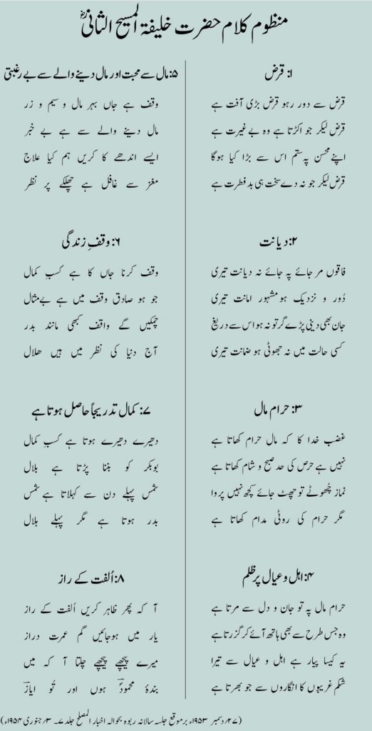 منظوم کلام حضرت خلیفة المسیح الثانیؓ