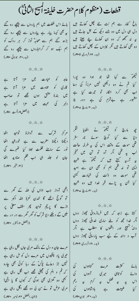قطعات (منظوم کلام حضرت خلیفۃ المسیح الثانیؓ)