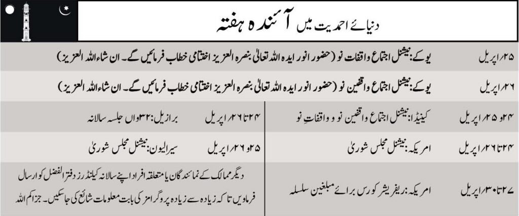 صفحۂ اول/عالمی خبریں/دنیائے احمدیت میں آئندہ ہفتہ/دنیائے احمدیت میں آئندہ ہفتہ دنیائے احمدیت میں آئندہ ہفتہ دنیائے احمدیت میں آئندہ ہفتہ24 اپریل 2026ء0 ایک منٹ سے بھی پہلے Facebook X WhatsApp Telegram Viber Share via Email Print 24 اپریل 2026ء0 ایک منٹ سے بھی پہلے Facebook X WhatsApp Telegram Viber Share via Email Print
