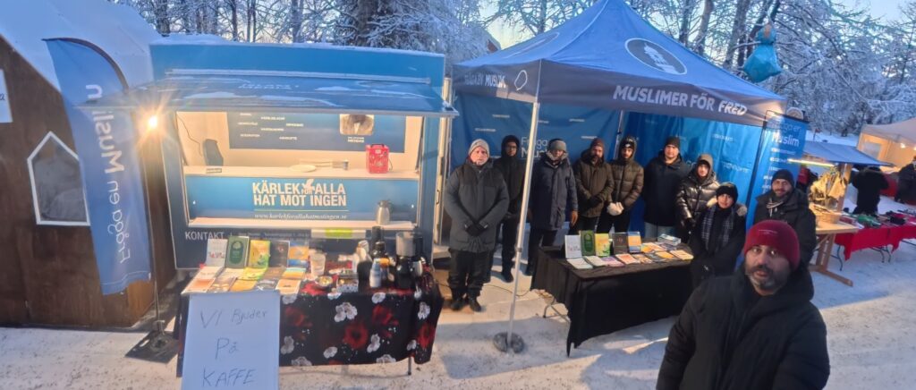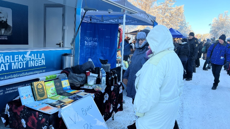 اللہ تعالیٰ کے فضل سے جماعت احمدیہ لولیو، سویڈن کو سویڈش لاپ لینڈ کے شہر یوک موک میں منعقد ہونے والے سالانہ ثقافتی میلہ و بازار میں تین روزہ تبلیغی سٹال قائم کرنے کی توفیق ملی۔ یہ میلہ ہر سال فروری کے پہلے ہفتے میں آرکٹک سرکل سے تقریباً ۱۴؍کلومیٹر شمال میں منعقد ہوتا ہے اور اپنی ۴۰۰؍سالہ قدیم روایت کے باعث خاص اہمیت کا حامل ہے۔ انتہائی سرد موسم جہاں درجہ حرارت منفی ۳۱؍ڈگری سیلسیس کے باوجود اس میلے میں تین دنوں کے دوران تقریباً ۴۰؍ہزار افراد شریک ہوئے۔
