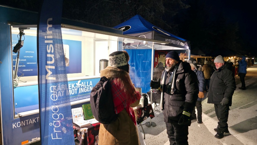 جماعت احمدیہ لولیو جو اس مقام سے تقریباً ۲۰۰؍کلومیٹر کے فاصلے پر واقع ہے کو انتظامیہ کی اجازت سے تیسری مرتبہ ’Ask A Muslim‘ تبلیغی سٹال لگانے کا موقع ملا۔ مکرم کاشف محمود صاحب سیکرٹری تبلیغ اور مکرم نایاب احمد ظافر صاحب صدر جماعت کے مشورے سے خاکسار (مبلغ سلسلہ)نے درخواست بھجوائی جبکہ دیگر انتظامات بھی احسن طریق پر مکمل کیے گئے۔ جماعتی ٹریلر پر حضرت مسیح موعودؑ کی تصویر اور نمایاں الفاظ میں ’’مسیح آچکا ہے‘‘ کا پیغام آویزاں کیا گیا تھا۔