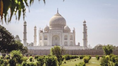 تاج محل یعنی مقبرہ ملکہ ممتاز محل زوجہ شاہ جہاں (۱۶۲۷ء۔۱۶۵۹ء)بھار ت کے شہر آگرہ میں واقع سنگ مرمر سے…