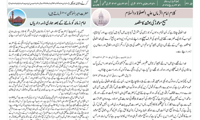 صفحۂ اول/مطبوعہ شمارے/مطبوعہ شمارے/الفضل انٹرنیشنل ۲۲؍مارچ ۲۰۲۵ء(خصوصی اشاعت برائے یومِ مسیح موعود) الفضل انٹرنیشنل ۲۲؍مارچ ۲۰۲۵ء(خصوصی اشاعت برائے یومِ مسیح موعود)