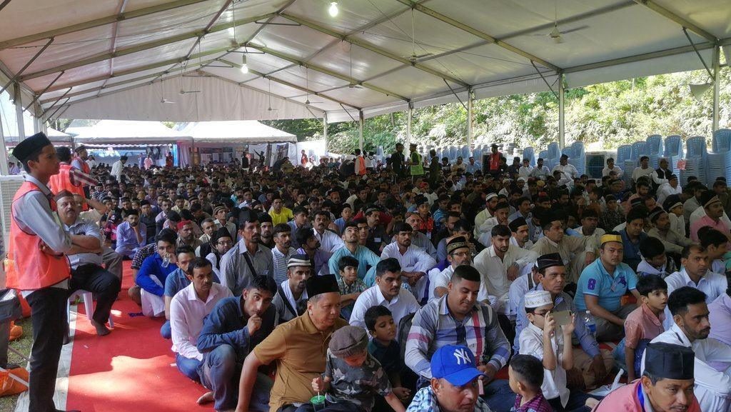 اللہ تعالیٰ کے فضل سے جماعت احمدیہ ملائیشیا کو اپنا جلسہ سالانہ21،22اور 23 دسمبر 2018ء کو منعقد کرنے کی توفیق ملی۔ اس جلسہ میں ملائیشیا کے مقامی احمدیوں کے علاوہ پاکستان سے آنے والے پناہ گزین احمدیوں نے بھی بھرپور شرکت کی۔ جلسہ سالانہ ملائیشیا 2018ء کا ایک منظر مزید برآں 15؍ خصوصی مہمان بھی اس جلسہ میں شامل ہوئے جن میں میڈیا کے نمائندگان، معروف این جی اوز کے سربراہان اور مسیحی برادری کے مذہبی لیڈرز شامل ہیں۔ یہ تمام مہمان جلسہ سالانہ کے پر امن او ر پر کشش ماحول سے متأثر نظر آتے تھے۔ اس جلسہ سالانہ کی ایک خصوصیت یہ تھی کہ حضور انور ایدہ اللہ تعالیٰ بنصرہ العزیز کی کتاب ’’World Crisis and the Pathway to Peace‘‘ کی رونمائی ہوئی۔ یہ کتاب مہمانان خصوصی کو تحفۃً پیش کی گئی اور حاضرین جلسہ کو اسے خریدنے اور اس سے استفادہ کرنے کی تلقین کی گئی ۔ جلسہ سالانہ ملائیشیا 2018ء کا ایک منظر بہت سے شاملین نے اس بات کا ذکر کیا کہ انتظامات نہایت عمدہ تھے اور ڈیوٹی دینے والے لوگوں نے اپنے فرائض بطریق احسن ادا کئے۔ اس جلسہ سالانہ کی کُل حاضری 5084رہی۔ اللہ تعالیٰ جماعت احمدیہ ملائیشیا کو روز افزوں ترقیات سے نوازے اور برکات سے فیضیاب فرمائے۔ آمین۔ ٭٭٭