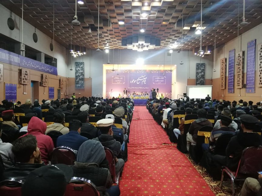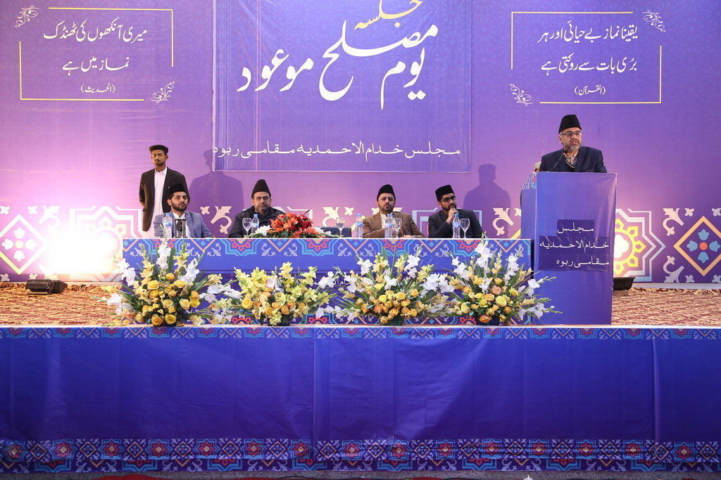 مجلس خدام الاحمدیہ مقامی ربوہ نے سیدنا حضرت مرزا بشیرالدین محمود احمد المصلح الموعود رضی اللہ عنہ کی یاد میں17؍فروری2019ء بروز اتوار ایوان محمود ربوہ میں جلسہ یوم مصلح موعود منعقد کیا۔ جلسہ کی صدارت مہمانِ خصوصی مکرم اسفند یار منیب صاحب انچارج شعبہ تاریخ احمدیت نے کی۔جلسہ میں شامل ہونے والے خدام کی تعداد کو بوجوہمحدود رکھنا مقصود تھا اس لئے ربوہ کے چھ سو سے زائد خدام اس جلسہ میں شامل ہو سکے۔ مہمان خصوصی سامعین سے مخاطب ہیں(ایوانِ محمود ربوہ) جلسہ یوم مصلح موعود کا آغاز تلاوت قرآن کریم سے ہوا۔ مکرم حافظ عبدالسلام صاحب نے تلاوت کرنے کی سعادت پائی۔اس کے بعد حضرت مصلح موعود رضی اللہ عنہ کے پاکیزہ منظوم کلام’’ عہد شکنی نہ کرو اہلِ وفا ہو جاؤ‘‘ میں سے منتخب اشعار مکرم لبیداحمد عالم صاحب نے پڑھے۔ بعد ازاں مکرم عدیل شہزاد صاحب نے خدام الاحمدیہ کے قیام کے مقاصد پر ایک تقریر کی جس میں انہوں نے حضرت مصلح موعود رضی اللہ عنہ کے ارشادات کی روشنی میں خدام بھائیوں کو خدام الاحمدیہ کے قیام کے بنیادی مقصد کےحوالے سے بتایا۔ جلسہ کے مہمان خصوصی نے حضرت مصلح موعود رضی اللہ عنہ کی سیرت سے چنیدہ واقعات پیش کئے اور خدام بھائیوں سے حضرت مصلح موعود رضی اللہ عنہ کی خدام الاحمدیہ سے توقعات کا اظہار کیا اور انہیں ان کی ذمہ داریوں کی طرف توجہ دلائی اوربتایا کہ حضرت مصلح موعود رضی اللہ عنہ کی ذات بابرکات کے بارے میں خود ہادی کونین رحمۃ للعلمین صلی اللہ علیہ و سلم نے پیش خبری دی تھی۔ جلسہ یوم مصلح موعود کا ایک منظر جلسہ کے اختتام سے قبل مکرم ارسلان احمد صاحب اور مکرم رانا صہیب احمدصاحب اور مکرم رضوان ملک صاحب نےپروفیسر مبارک احمدعابد صاحب کی نظم ’’اے فضلِ عمر‘‘ پیش کی۔جلسہ کے اختتام پر صدر جلسہ نے دعا کروائی ۔ (رپورٹ: سعود رفاقت۔ ناظم تربیت مقامی) ٭…٭…٭
