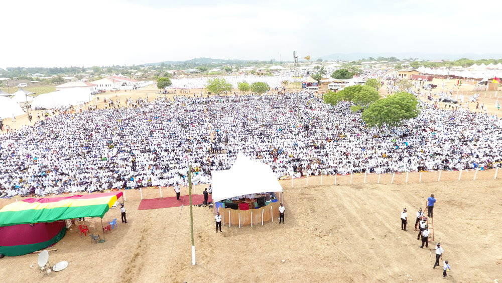 مغربی افریقہ کے پر امن اور رواداری کی فضا والے ملک گھانا کا پورا نام جمہوریہ گھانا ہے۔ مملکت کا ماٹو Freedom and Justice ہے جس کی جھلک حقیقی طورپر بھی مملکت کے معاملات میں واضح طورپر نظر آتی ہے۔ مذہبی رواداری اور برداشت کے ایسے مناظر دنیا میں کم نظر آتے ہیں جو یہاں کی روایات کا حصہ ہیں۔ ملک کے وسطی ریجن میں واقع مشہور و معروف شہر Winneba کی آبادی لگ بھگ ساٹھ ہزار نفوس پر مشتمل ہے لیکن سال میں تین دنوں کے لیے اس شہرکے قریب ایک اور شہر ‘‘باغ احمد’’ میں آباد ہو جاتا ہے۔جلسہ سالانہ گھانا میں شمولیت کے لیے ملک کے مختلف حصوں سے لوگ جوق در جوق یہاں آتے ہیں اور دن رات اس شہر کی فضا میں نعرہ ہائے تکبیر اور آنحضرتﷺ پر بھیجا جانے والا درود گونجتا رہتا ہے۔نماز تہجد سے آغاز ہونے والے پروگرام رات دیر گئے تک وقفہ وقفہ سے جاری رہتے ہیں اور شاملین پورے شوق سے ان تمام پروگراموں کو سنتے اور استفادہ کرتے ہیں۔ ‘‘باغ احمد ’’460 ایکڑ پر مشتمل ایک خوبصورت قطعۂ اراضی ہے جہاں جماعت احمدیہ گھاناکا سالانہ جلسہ منعقد ہوتا ہے۔جماعت احمدیہ گھانا کایہ87واں جلسہ سالانہ تھا جو4تا 6 جنوری 2019ء باغ احمد میں منعقدہوا جس میں ملک بھر سے38,079 احمدی احباب و خواتین نے شرکت کی۔ الحمدللہ ثم الحمد للہ۔ جلسہ سالانہ گھانا 2019ء کا ایک دلنشین اور خوبصورت منظر 4جنوری 2019ء بروز جمعۃ المبارک جلسہ سالانہ کے پہلے دن کا آغازنماز تہجد سے ہوا۔ اس کے بعد ‘‘ازدواجی تعلقات میں خلوص اور محبت کی اہمیت’’کے عنوان پر درس ہوا۔ جمعہ کے روز باہمی اخوت اور اظہار یکجہتی کے طور پربیشتر احباب وخواتین نے سفید رنگ کے لباس پہنے ہوئے تھے جو ایک خوبصورت روحانی منظر پیش کررہے تھے ۔ نماز فجر کے بعد مکرم مولانا محمد بن صالح صاحب امیرو مشنری انچارج گھانا نے حاضرین کا شکریہ ادا کیا کہ وہ دور دراز علاقوں سے سفر کرکے اس جلسہ میں شمولیت کے لیے تشریف لائے ہیں اور جلسہ سالانہ کے انتظامات، پروگرام اور جماعتی روایات کے حوالے سے بعض اہم نصائح کیں۔ افتتاحی اجلاس 4جنوری 2019ء بروز جمعۃ المبارک جلسہ کا پہلا دن تھا۔ جلسہ کا باقاعدہ اجلاس صبح سوا دس بجے تلاوت قرآن کریم سے شروع ہوا۔ مکرم حافظ عثمان Yeboah صاحب متعلم جامعہ احمدیہ انٹرنیشنل گھانانےسورۃ الحجرات کی آیات 10تا14کی تلاوت مع ترجمہ پیش کرنے کی سعادت پائی۔ اس کے بعد مدرسۃ الحفظ گھانا کے طلباء پر مشتمل ایک گروپ نے ‘‘خلافت کے امیں ہم ہیں’’ انتہائی پرسوز اور مترنم آواز میں پڑھا اور انگریزی ترجمہ پیش کیا۔ افتتاحی اجلاس ایک خاص اہمیت کا حامل تھا کیونکہ اس میںسب سے اوّل سیّدنا حضرت خلیفۃ المسیح الخامس ایّدہ اللہ تعالیٰ کاجماعت احمدیہ گھانا کے نام بابرکت اور نصائح سے پُر محبت بھرا پیغام پڑھ کر سنایا گیا۔حضور کے اس پیغام کے ساتھ ہی مکرم امیر صاحب نے جلسہ کا افتتاح کیا۔ حضور انور ایّدہ اللہ تعالیٰ کے انگریزی پیغام کا اردومفہوم درج ذیل ہے۔ خصوصی پیغام حضور انور ایدہ اللہ تعالیٰ بنصرہ العزیز حضور انور ایدہ اللہ تعالیٰ نے فرمایا کہ مجھے اس بات کی خوشی ہے کہ آپ اپنا 87 واں جلسہ سالانہ 4تا6 جنوری 2019ء کو منعقد کر رہے ہیں۔ میری دعا ہے کہ اللہ تعالیٰ ہر لحاظ سے آپ کے جلسہ کوکامیاب و بابرکت فرمائے، شاملین جلسہ اس منفرد مذہبی اجتماع سے بے انتہا روحانی فوائدحاصل کرنے والے ہوں اوراحباب جماعت مسلسل نیکیوں اور تقویٰ میں ترقی کرتے چلے جائیں۔ اللہ کے فضل سے جماعت احمدیہ گھانا دن بدن ترقی کر رہی ہے اور کئی لحاظ سے منظم ہوچکی ہے۔ اللہ تعالیٰ آپ سب کو نیکی اور فدائیت میں بڑھائے۔ یہ بات ہمیشہ ذہن نشین رکھیں کہ جماعت احمدیہ مسلمہ کی بنیاد اس اصول پر پڑی ہے کہ امتِ واحدہ کا قیام عمل میں آئے۔ حضرت مسیح موعودؑ نے یہ واضح فرما یا ہے کہ اسلامی تعلیمات کے مطابق تمام انسان چاہے وہ کسی بھی ملک، علاقہ یا قبیلہ سے تعلق رکھتے ہوںسب اللہ کی مخلوق ہیں۔ اللہ تعالیٰ نے قرآن کریم کی سورۃ الحجرات آیت 14میں فرما یا ہے کہ یٰٓاَیُّہَا النَّاسُ اِنَّا خَلَقْنٰکُمْ مِّنْ ذَکَرٍ وَّ اُنْ