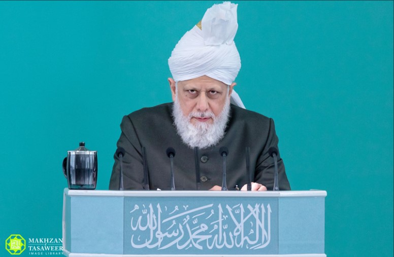 سیّدنا و امامنا حضرت امیرالمومنین خلیفۃ المسیح الخامس ایّدہ اللہ تعالیٰ بنصرہ العزیز نے یکم شوال 1440ہجری قمری بمطابق 5؍ جون 2019ء بروز بدھ مسجد بیت الفتوح مورڈن میں عید الفطر پڑھائی اور معرکہ آرا خطبہ ارشاد فرمایا۔ اس اجتماع میں دس ہزار سے زائد احمدیوں نے شرکت کی۔ حضورِ انور نمازِ عید پڑھانے کے لیے ٹھیک گیارہ بجے مسجد بیت الفتوح میں رونق افروز ہوئے اور نماز کا آغاز ہوا۔ نماز کے بعد حضورِ انور منبر پرتشریف لائے اورالسلام علیکم ورحمۃ اللہ کے بعد خطبہ عید الفطر کا آغاز فرمایا۔ حضورِ انور نے فرمایا کہ حضرت مصلح موعود رضی اللہ تعالیٰ عنہ نے آج سے قریباً سو سال سے زائد عرصہ پہلے عید پہ ایک خطبہ دیا تھا۔ وہ مضمون آج بھی بہت اہم ہے۔ اس لیے اس خطبہ سے استفادہ کرتے ہوئے میں آج عید کے حوالے سے کچھ باتیں کروں گا۔ اس کے بعد حضورِ انور نے عید اور پھر خوشی کے فلسفے کو بیان کرتے ہوئے فرمایا کہ دنیا میں جس قدر خوشیاں ہیں وہ اجتماع سے پیدا ہوتی ہیں۔ اسی طرح خوشی کے اظہار کے لیے بھی اجتماع منعقد کیے جاتے ہیں۔ اس بات کو اللہ تعالیٰ نے انسان کی فطرت میں رکھا ہے کہ جب اسے خوشی ہو تو وہ دوسروں سے ملے اور خوشی حاصل کرے۔ پس خوشی اور اجتماع دونوں لازم و ملزوم ہیں اور اسلام چونکہ دین فطرت ہے اس لیے اس نے عید کے موقع پر خوشی کا موقع پیدا کیا ہے، مسلمانوں کو جمع ہونے کا حکم دیا ہےکہ صرف ایک جگہ کے قریبی لوگ نہیں بلکہ تمام علاقے کے لوگ عید کے موقع پر عید گاہ میں جمع ہوں اور عید کی خوشی منائیں۔ پس اس نظر سے ہم دیکھیں تو واضح ہوتا ہے کہ خوشی درحقیقت اجتماع کا نام ہے۔ اس لحاظ سے عید بھی اجتماع کا نام ہے اور سب سے بڑی عید وہی ہو سکتی ہے جس میں سب سے بڑا اجتماع ہو اور اس سب سے بڑے اجتماع کی بنیاد کب پڑی جس کی وجہ سے سب سے بڑی عید کا موقع پیدا ہوا ؟ وہ اس وقت ہوا جب اللہ تعالیٰ کے ایک پیارے انسان نے تمام دنیا کو پکار کر کہا کہ يَا أَيُّهَا النَّاسُ إِنِّي رَسُولُ اللّٰهِ إِلَيْكُمْ جَمِيعًا کہ اے انسانو! یقینا میں تم سب کی طرف اللہ کا رسول ہوں۔ حضورِ انور نے فرمایا کہ دنیا نے مختلف انبیاء کی بعثت کے وقت چھوٹے پیمانے پر عیدیں تو دیکھی تھیں مگر حضرت آدم سے لے کر اگر دنیا میں کوئی بڑی عید ہوئی تو وہ وہی ہے جب اللہ تعالیٰ نے اپنے ایک انتہائی پیارے کو کہا کہ تم اپنے ذریعہ سے تمام جہان کو ایک جگہ جمع کرو۔ حضورِ انور نے فرمایا کہ نبی اکرمﷺ کو ایک لامتناہی روحانی خزانہ دیا گیا ہے جسے بلا تفریق پوری دنیا میں بھی تقسیم کیا جائے تو تھوڑا نہیں پڑے گا۔ یقیناً آپؐ کا آنا سب سے بڑی عید کا دن تھا کیونکہ آپؐ کی بعثت کے ساتھ تکمیل ہدایت ہوئی۔ حضورِ انور نے فرمایا کہ پھر ایک عید کا دن تھا جب اللہ تعالیٰ نے آنحضرتﷺ کی غلامی میں حضرت مسیح موعود علیہ الصلوٰۃ والسلام کو مبعوث فرما کو خود تکمیل تبلیغ اور اشاعتِ دین کا ذمہ لیا۔ چنانچہ جب حضرت مسیح موعود علیہ الصلوٰۃ والسلام کے ذریعے تمام دنیا شریعت کے احکام پر جمع ہو کر عملی طور پر ایک دین پر اکٹھی ہو جائے گی تو وہ اصل اور بڑی عید ہو گی اور اس عید کا زمانہ اللہ تعالیٰ نے ہمارے سپرد کیا ہے۔ حضورِ انور نے فرمایا کہ اگر حقیقی عید کا کرنا اس زمانے میں اللہ تعالیٰ نے ہمارے سپرد کیا ہے تو پھر ہمیں اپنی حالتوں کا بھی جائزہ لینا ہو گا کہ کس طرح ہم اس کام کو سرانجام دے سکتے ہیں۔ حضرت مسیح موعود علیہ الصلوٰۃ والسلام نے ہمارے لیے جو لائحہ عمل تجویز فرمایا ہے اس پر عمل کر کے ہم جلد سے جلد اس حقیقی عید لانے کے سامان کر سکتے ہیں، اس کام کو صحیح رنگ میں سرانجام دے سکتے ہیں جو اللہ تعالیٰ نے اس زمانے میں ہمارے سپرد کیا ہے۔ حضورِ انور نے اس مقصد کے حصول کے لیے چنیدہ نصائح بیان فرمائیں کہ ایسی فطرت حاصل کرو کہ خدا تعالیٰ کی محبت کسی غرض کے لیے نہ ہو ۔قرآن کو بکثرت پڑھو اور اپنے عملوں کو اس کے مطابق ڈھال کر عملی سچائی کے ذریعہ اسلام کی خوبیاں دنیا پر ظاہر کرو۔ تبلیغ کے لیے تقویٰ بھی ضروری ہے اس لیے قرآن کریم کی تعلیم پر عمل کر کے ہی تقویٰ پید