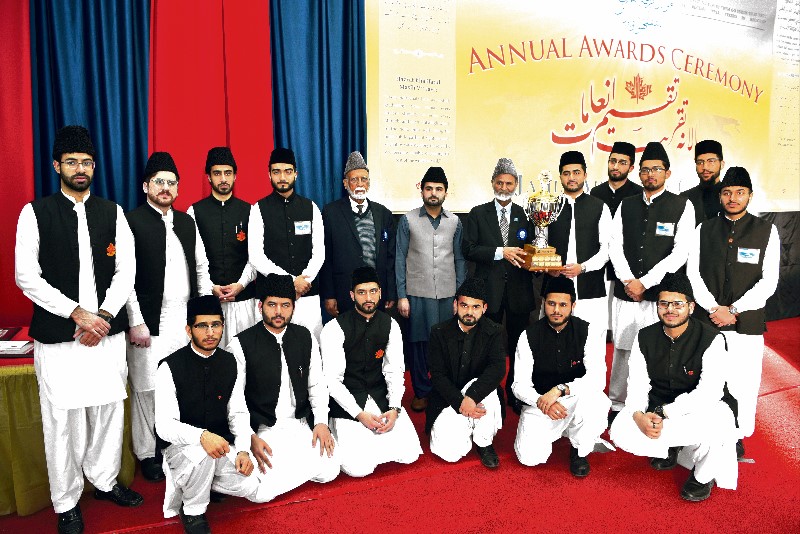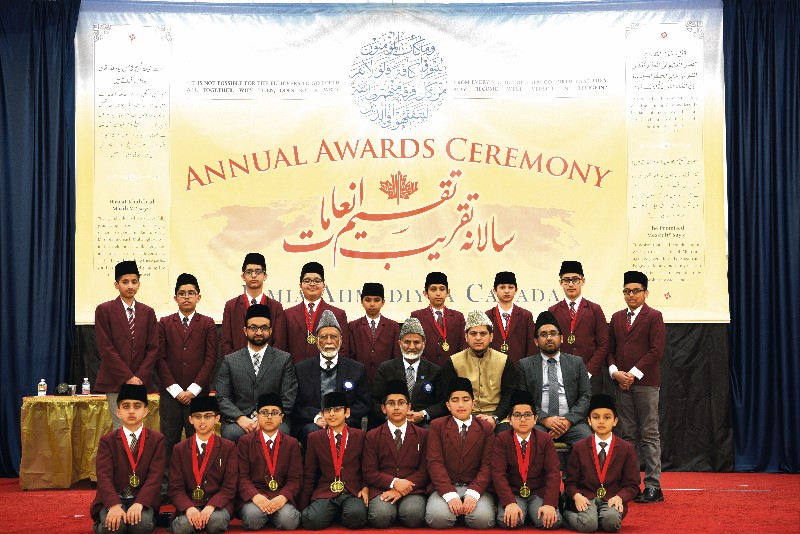 مؤرخہ 13 اپریل 2019ء بروز ہفتہ جامعہ احمدیہ اور حفظ سکول کینیڈا کی سالانہ تقریب تقسیم انعامات کا انعقاد ایوانِ طاہر میں کیا گیا۔ یہ تقریب دو حصوں پر مشتمل تھی ۔پہلے حصہ میں عربی ، اردو اور انگریزی زبانوں میں تقاریر کا حتمی مرحلہ ہوا جس کے بعد حفظ سکول کے ایک طالب علم نے اپنی مثالی تقریر پیش کی۔ تقریب کے اس حصہ کی صدارت درجہ سادسہ کے دو طلبہ عزیزم سرمد نوید اور عزیزم فاطر احمد نے کی۔ اساتذہ و طلبہ جامعہ احمدیہ کینیڈا مکرم امیر صاحب اور پر نسپل صاحب جامعہ احمدیہ کینیڈا کے ساتھ تقریب کے دوسرےحصہ کا آغاز مہمان ِخصوصی مکرم و محترم امیر صاحب جماعتہائے احمدیہ کینیڈا کی زیر صدارت ہوا۔ تلاوتِ قرآن کریم اور نظم کے بعد عزیزم اُسامہ رحمان طالبعلم درجہ خامسہ و نائب الرئیس الجمعیہ العلمیہ اور مکرم حافظ مجیب الرّحمان احمد صاحب استاد حفظ سکول کو بالترتیب جامعہ احمدیہ اور حفظ سکول کینیڈا کی غیر نصابی سرگرمیوں پر مبنی رپورٹ پیش کرنے کی توفیق ملی۔ ان رپورٹس کے بعد مکرم امیر صاحب جماعتہائے احمدیہ کینیڈا نے حفظ سکول اور جامعہ احمدیہ کینیڈا کے طلبہ میں، دورانِ سال ہونے والے مختلف انفرادی اور اجتماعی علمی مقا بلہ جات میں نمایاں پوزیشنز حاصل کرنے پر انعامات سے نوازا۔ اسی طرح امسال جامعہ احمدیہ کے زیرِ اہتمام لگائی جانے والی نمائش بعنوان ’خلافتِ راشدہ‘ کے لیے نمایاں کام کرنے والے طلبہ کو بھی انعامات دیئے گئے۔اس کے علاوہ جامعہ کے کچن اسٹاف کی غیر معمولی خدمات کے اعتراف میں بھی انہیں انعامات سے نوازا گیا۔ اساتذہ و طلبہ حفظ سکول کینیڈا مکرم امیر صاحب اور پرنسپل صاحب جامعہ احمدیہ کینیڈا کے ساتھ یاد رہے کہ غیر نصابی سرگرمیوں کو مؤثر بنانے کے لیے جامعہ احمدیہ کے جملہ طلبہ کو چار مختلف گروپس :شجاعت، امانت،دیانت اور رفاقت میں تقسیم کیا گیا ہے اور ہر گروپ کا نگران جامعہ احمدیہ کا ایک استاد ہے۔ دورانِ سال شام کے اوقات میں ان گروپس کے مابین انفرادی اور اجتماعی مقابلہ جات کا انعقاد کیا جاتا ہے۔ اسی طرح حفظ سکول کے طلبہ کو بھی غیر نصابی سرگرمیوں کے لیے تین احزاب میں تقسیم کیا گیا ہے۔ جامعہ احمدیہ کینیڈا کے تعلیمی سال 2018۔2019 میں مثالی طالبعلم عزیزم عمر فاروق طالبعلم درجہ خامسہ رہے اور شجاعت گروپ سب سے زیادہ نمبر حاصل کر کے نمایاں رہا۔ مکرم حافظ ھبۃ الرّحمان صاحب نگران استاد نے گروپ کے طلبہ کے ساتھ ٹرافی کو وصول کیا۔ ’شجاعت گروپ‘ مکرم امیر صاحب اور پرنسپل صاحب جامعہ احمدیہ کینیڈا کے ساتھ انعامات کی تقسیم مکمل ہونے پر مکرم و محترم داؤد حنیف صاحب پرنسپل جامعہ احمدیہ کینیڈا نے مہمانوں کا شکریہ ادا کیا۔ جس کے بعد مکرم امیر صاحب نے مختصر خطاب فرماتے ہوئے جامعہ احمدیہ کینیڈا کی طرف سے منعقد کی جانے والی نمائشوں کو سراہتے ہوئے فرمایا کہ طلبہ جامعہ احمدیہ اساتذہ کی زیر نگرانی بڑی محنت سے اعلیٰ معیار کی نمائشیں تیار کی جاتی ہیں ، جن سے کثیر احباب ِجماعت کو فائدہ اٹھانا چاہیے۔ تقریب کا اختتام دُعا سے ہوا جس کے بعد مہمانوں کی خدمت میں عشائیہ پیش کیاگیا ۔ (رپورٹ:سہیل احمد ثاقب ، استاد جامعہ احمدیہ کینیڈا رئیس الجمعیہ العلمیہ) ٭…٭…٭