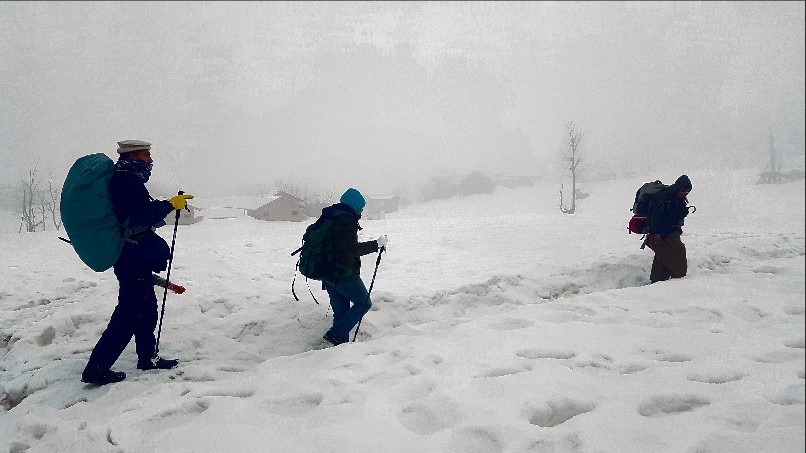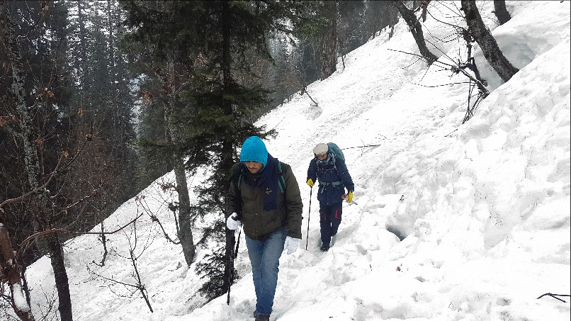 ماہ مارچ 2019ء کے آخری تین روز کی تعطیلات کو ضائع نہ ہونے دینے کا پروگرام بنا کر نصر بھٹی، واصل محمود اور خاکسار نے مل کر وادی نیلم کے سفر کا پروگرام بنایا اور کوہِ نور داس سفر پر 27؍ مارچ 2019ء کو روانہ وہ گئے۔ وادیٔ نیلم کا ایک خوبصورت منظر 28؍ مارچ 2019ء کودوپہرساڑھے گیارہ بجے ہم چنیوٹ، پھر بذریعہ بس راولپنڈی اور یہاں سے ایک کوسٹر میں سفر کرتے ہوئے رات 11بجے ہوئے آزادکشمیر کے صدر مقام مظفر آباد پہنچے۔دریائے جہلم پر تعمیر کیا گیا نیا پل دلفریب روشنیوں میں نہایا ہوا تھا۔ رسیوں کے سہارے معلق پل کا شمار بلا شبہ پاکستان کے خوبصورت ترین پلوں میں سے ہوتا ہے۔ مظفر آباد میں امیر صاحب مظفرآباد کے ہاں رات قیام کیا۔ ان کے صاحبزادے نے میزبانی کا خوب حق ادا کیا۔ اگلے روز29؍ مارچ کو صبح 11:30بجے بذریعہ کوسٹر کیل کے لیے روانہ ہوئے۔ پٹہکا، چلہانہ اور کنڈل شاہی سے ہوتے ہوئے اٹھمقام پہنچے۔ یہاں بہار کی آمد آمد تھی۔ پھول کھل رہے تھے۔اٹھمقام سے 53کلومیٹر کا سفر کر کے شاردہ پہنچے چند منٹ آرام کے لیے سفر معطل کیا گیا۔ ہم نے یہ موقع غنیمت جان کر شام کے مدہم اندھیرے میں شاردہ اور دریائے نیلم کی تصاویر لیں۔ ہر طرف برف ہی برف تھی۔ پہاڑوں کی ڈھلوانوں سے گھروں کی چھتوں تک، درختوں کی شاخوں سے دریا کے کناروں تک۔ یہ نیلم ہی کے دلفریب رنگ ہیں کہ صرف 2گھنٹوں میں 53کلومیٹر کا فاصلہ طے کرکے آپ بہار کے شگوفوں سے سرما کی برفوں میں پہنچ جاتے ہیں۔20منٹ بعد کیل کے لیے روانگی ہوئی۔ راستے میں دومقامات پر سڑک کی حالت پہاڑوں سے اترنے والے نالوں کے باعث خاصی خستہ تھی لیکن محض اللہ تعالیٰ کے فضل سے بخیریت یہاں سے گزر کر رات ساڑھے آٹھ بجے کیل پہنچے۔کیل میں سڑک کنارے برف پڑی تھی اور سردی بھی بہت زیادہ تھی۔ ایک دوست کے ذریعے ہوٹل میں کمرہ قبل ازیں حاصل کر لیا گیا تھا۔ رات اس میں قیام کیا۔ اگلے دن (30مارچ کو)ہم بیدار ہوئے تو سخت سردی کی وجہ سے گرم لحاف چھوڑنے کو دل نہ چاہا لیکن اس وقت سردی کا کوئی ہوش نہ رہا جب واصل صاحب نے کھڑکی سے باہر دیکھ برف باری کی نوید سنائی۔ اب بستروں میں رہنے کا کوئی جواز نہیں تھا سو ہم نے اڑنگ کیل جانے کی تیاری مکمل کر لی۔ایک ہوٹل سے مناسب ناشتہ کیا۔ برف باری اب خاصی تیز ہوچکی تھی۔ ہم اسی برف باری میں اڑنگ کیل روانہ ہوئے۔ موسم کے رنگ نہایت دلکش تھے۔ کوہساروں نے برف کی چادر اوڑھ رکھی تھی۔ برف باری تھمنے کے کوئی آثار نہیں تھے۔کیل سے کیبل کار کے زریعہ دریائے نیلم عبور کیا اور برف میں مستور پہاڑ کی ڈھلوانوں پر تقریباً ڈیڑھ کلومیٹر پیدل چل کراڑنگ کیل پہنچے جہاں زمین پر ہر طرف 6تا 7فٹ برف کی تہ موجود تھی۔ اڑنگ کیل میں قیام کے دوران ہمیں اپنے علاوہ کوئی سیاح نظر نہ آیا۔اس موسم میں مقامی لوگ گھروں سے نکلنے کی ہمت نہیں کرتے۔ ایسے میں سیاحوں کی یہاں موجودگی چہ معنی دارد؟! اڑنگ۔کیل تیز ہوا کی وجہ سے سردی خاصی تھی۔ ایک مناسب ہوٹل میں کمرہ حاصل کیا۔ باورچی خانے میں لکڑی کی آگ سے اپنے سرد پڑتے بدنوں کو حرارت پہنچائی۔سامان یہیں رکھا ا ور دوپہر کے کھانے کے بعد گرتی برف میں اڑنگ کیل کی سیر کو نکلے۔ برف باری اب بھی خاصی تیز تھی۔بادل خاصے نیچے آئے ہوئے تھے اور پہاڑ بادلوں میں مستور تھے۔ کوہساروں اور وادی کا منظر خاصا سحر انگیز تھا۔ عصر کا وقت تھا جب برف باری تھمی اور بادل منتشر ہونا شروع ہوگئے۔ مشرقی پہاڑ پر سورج کی کرنیں بادلوں میں سے نکل کر پہاڑ کی چوٹی پر پڑ رہی تھی اور پہاڑ کی چوٹی سونے میں تبدیل ہوچکی تھی۔ یہ کوہساروں کا کوہ نوردوں کے لیے شاید سب سے حسین تحفہ تھا۔رات کے اندھیرے میں تاروں بھرے آسمان کا نظارہ بھی دلکشی میں اپنی مثال آپ تھا۔اڑنگ کیل میں جو کم سے کم درجہ حرارت ہم نے نوٹ کیا وہ -7ڈگری سینٹی گریڈ تھا۔ کیل اگلے روز 31؍ مارچ کو اڑنگ سے واپسی ہوئی۔ ہمارا ارادہ تھاکہ تاؤبٹ روڈ پر ایک مقام پھلاوائی تک رسائی حاصل کی جائے جہاں ہمارے ایک دوست خرم جمال صاحب کا گھر ہے۔ جیپ ٹریک مچھل نامی مقام تک کھلا تھا جو کیل سے تقریباً8کلومیٹر کے فاصلے پر واقع ہے۔ 