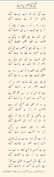اے شمع دیکھ پھر ترے پَروانے آگئے بندھن تمام توڑ کے دیوانے آگئے دریا و بحر و کوہ و بیاباں کو پھاند کر گِر پڑ کے تیرے در پہ ہیں مستانے آگئے اہلِ زمیں نے چاہا پہنچنے نہ پائیں یہ افلاک سے مَلک انہیں پہنچانے آگئے اُڑ کر ہے کوئی پہنچا تو گھٹنوں کے بَل کوئی چاروں طرف سے کیسے خدا جانے آگئے ارضِ صہیبؓ سے کوئی ارضِ بلالؓ سے دیکھو تو رنگا رنگ کے پَروانے آگئے آنکھیں ہیں اشک بار تو لب پر درود ہے عشاق تیرے لے کے یہ نذرانے آگئے باندھے رہیں گے خدمتِ اسلام پر کمر تیرے حضور عہد یہ دُہرانے آگئے دیکھا تھا جس کو دُور سے چشمِ کلیمؑ نے اس آگ سے دلوں کو یہ گرمانے آگئے یہ وہ نشہ نہیں جسے تُرشی اُتار دے نامحرموں کو راز یہ سمجھانے آگئے ان عاشقوں کی مستی کا عالم تو دیکھیے نام اپنا فردِ جُرم میں لکھوانے آگئے دیکھو ذرا نظامِ خلافت کی برکتیں گِردِ امام بکھرے ہوئے دانے آگئے بھر دے گُلِ مراد سے اب ان کی جھولیاں دامن تِرے حضور یہ پھیلانے آگئے ان کے گھروں کا آپ محافظ ہو اَے خدا تیرے سپرد کر کے یہ کاشانے آگئے ہیں کتنے خوش نصیب وہ عشّاق اے ظفرؔ اپنے دلوں کی آگ جو بھڑکانے آگئے