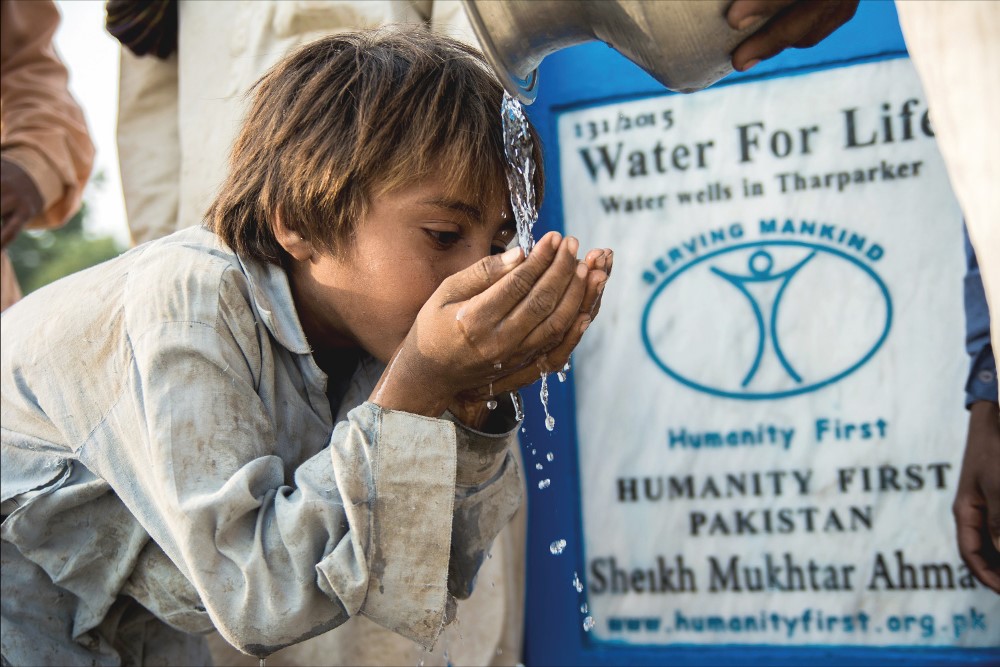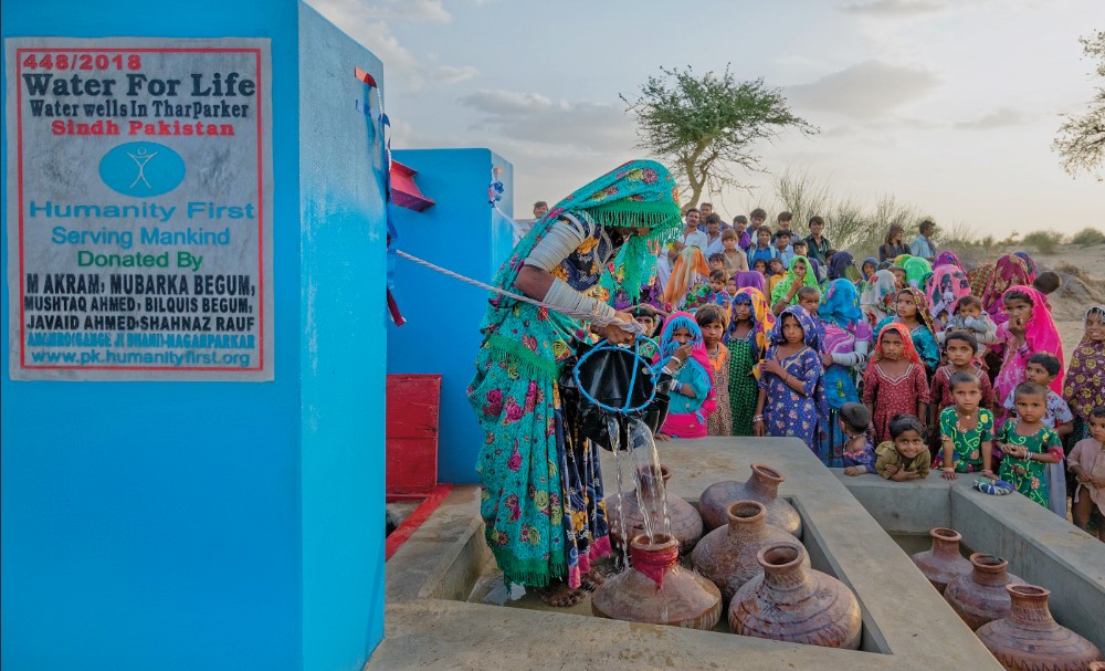 حضرت اقدس مسیح موعودؑ اپنے ایک فارسی منظوم کلام میں فرماتے ہیں ؎ مرا مقصود و مطلوب و تمنا خدمت خلق است ہمیں کارم ہمیں بارم ہمیں رسمم ہمیں راہم اس فارسی شعر کا مطلب یہ ہے کہ مخلوق خدا کی خدمت کرنا میر امقصد اور میری خواہش ہے۔ اسی مقصد کے حصول کے لیے میں سب کچھ کرتا ہوں اور اس کام سے مجھے خوشی ملتی ہے۔ یہی میرے کام ہیں۔یہی وہ ذمہ داری ہے جو میرے سپرد ہوئی ہے۔یہی وہ رسم یا طریقہ ہے جو میرا طریقہ ہے اور اس کے کرنے کا یہی وہ راستہ ہے جو میں خود دکھاتا ہوں ۔ جماعت احمدیہ حضرت مسیح موعودعلیہ السلام اورخلفائے احمدیت کی ہدایات کے زیر سایہ خدمت انسانی کے اہم فریضہ کی بجا آوری کو اپنے لیے ایک فرض سمجھتی ہے اور اس شعبہ میں کار ہائے نمایاں سرانجام دینے کی سعی کرتی ہے ۔خدمتِ خلق کے کام کو ایک مربوط نظام کےتحت سرانجام دینے کے لیے حضرت خلیفۃ المسیح الرابع ؒنے 1995 میں ہیومینٹی فرسٹ کا اجرا فرمایا ۔ اللہ کے فضل سےہیومینٹی فرسٹ کی شاخیں پچاس سے زائد ممالک میں قائم ہو چکی ہیں جہاں بلا تفریق رنگ و نسل ،مذہب و فرقہ ،علاقائی یا لسانی اختلاف کے رضاکارانہ طور پر دکھی ، نادار اور مستحق انسانیت کی خدمت کے متعدّد کام جاری ہیں۔ ہیومینٹی فرسٹ کے پاکستان چیپٹرنے اپنے کام کا آغاز 2005ء میں آنے والے ہولناک زلزلے کے بعد متاثرین کی ہر ممکنہ امداد سے کیا ۔ہیومینٹی فرسٹ پاکستان کویہ اعزاز بھی حاصل ہے کہ حضورِ انور ایدہ اللہ تعالیٰ بنصرہ العزیز نےازراہ شفقت ہیومینٹی فرسٹ پاکستان کے پراجیکٹ Water for Lifeکے لیے ایک کنواں عطیہ فرمایا ۔ جس کےبعدہیومینٹی فرسٹ پاکستان پر اللہ تعالیٰ کے فضل پہلے سے بھی زیادہ تیزی کے ساتھ نازل ہونا شروع ہوگئے ہیں اور عطیہ جات کی وصولی کا سلسلہ سارا سال ہی جاری رہتا ہے۔ احبابِ جماعت اس کارِ خیر میں بڑھ چڑھ کر شامل ہو تے ہیں۔ ہیومینٹی فرسٹ پاکستان کو مختلف منصوبہ جات کے تحت خدمت انسانیت کی توفیق مل رہی ہے ۔ان میں سے چند کا تعارف درج ذیل ہے۔ Water for life تھر میں پانی کی شدید قلت ہے اور پانی کی چند بوندوں کے لیے علاقے کی خواتین کوگھنٹوں پیدل سفر کر کے میلوں دور جانا پڑتا ہے اور پانی کے محدود ذخائر بھی اکثر ایسے ہیں جہاں جانور اور انسان اکٹھے پانی پیتے ہیں۔ اس منصوبے کے تحت مختلف دیہات میں کنووں کی کھدائی کی جاتی ہے اور سینکڑوں سالوں بعد یہ علاقہ صاف پانی کی شکل دیکھتا ہے۔ کنووں کی کھدائی سے علاقہ مکینوں میں جہاں خوشی کی لہر دوڑ جاتی ہے وہاں ان کے چہروں پر مسرت کا نظّارہ دیدنی ہوتا ہے ۔ اب تک اس منصوبے کے تحت 670 میٹھے پانی کے کنواں جات لگائے جا چکے ہیں ۔اس منصوبہ کے تحت پاکستان کے دور دراز پس ماندہ علاقوں میں پانی کے نلکے (ہینڈ پمپس)بھی لگائے جا رہے ہیں۔ اس کے علاوہ گلگت اور چترال میں علاقے کی ساخت کے پیشِ نظر سپیشل ہینڈ پمپس اور اسی طرح اندرون سندھ میں سولر انرجی سے چلنے والے واٹر پمپس بھی لگائے جاتے ہیں۔ Global health اس منصوبہ کے ذریعہ تھر میں فری میڈیکل کیمپس کے ذریعہ علاقہ مکینوں کی طبی ضروریات پوری کی جاتی ہیں۔ اس کے علاوہ میٹرنٹی اینڈ چائلڈ کیمپس کا انعقاد بھی اس منصوبہ میں شامل ہے ۔ان میڈیکل کیمپس میں نو مولود بچوں کی مناسب دیکھ بھال کے حوالے سے علاقے کی عورتوں کی مناسب راہنمائی بھی کی جاتی ہے ۔ Gift of Sight موتیا کی بیماری تھر میں عام ہے۔ اگر اس بیماری کا بروقت علاج نہ کیا جائے تو بینائی جانے کا خدشہ لاحق رہتا ہے ۔اس منصوبہ کے ذریعہ آنکھ کی بیماریوں کا علاج ہوتا ہے ۔اور بعض اوقات آپریشن کے بعد متاثرہ افراد اپنے روزمرہ کے کام کاج سہولت کے ساتھ کر سکتےہیں نیز اس حوالہ سے ان کے لیےایک نئی زندگی کا آغاز ہوتا ہے۔اس منصوبہ کی خاص بات یہ ہے کہ متاثرہ مریض کی خوراک،اسے گھر سے میڈیکل کیمپس تک لانے اور گھر واپس چھوڑنے تک کے اخراجات کاخرچ بھی ہیومینٹی فرسٹ اٹھاتی ہے۔ Knowledge for Life اس منصوبہ کے تحت تھرپارکر کے علاقہ میں “چوہرا” سکولوں کا قیام کیا گیا ہے ۔چوہرا مقامی زبان میں مٹی وغیرہ کے ان گھروندوں کو کہتے ہیں جہاں مقامی لوگ اپنی رہائش رک