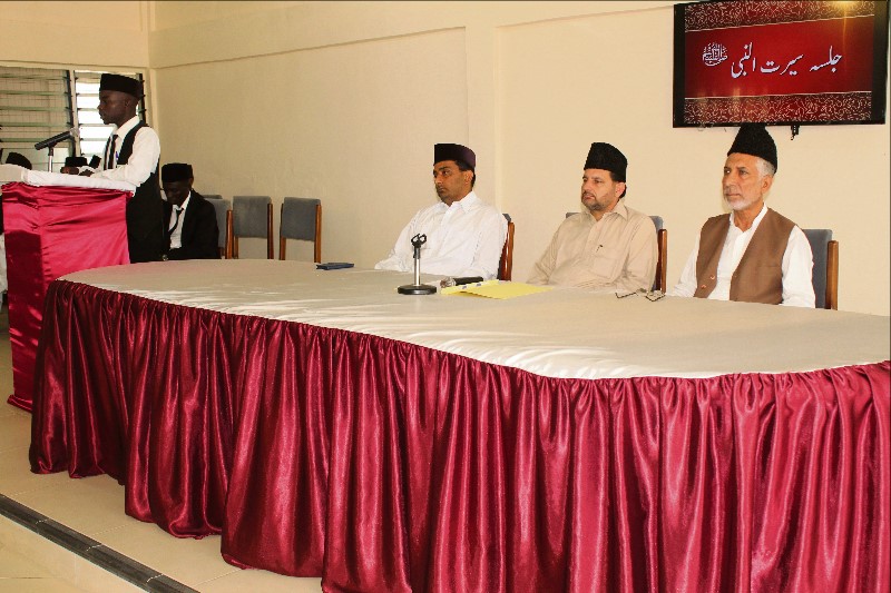 اس تحریر کو بآواز سننے کے لیے یہاں کلک کیجیے: یوں تو جامعہ احمدیہ انٹرنیشنل میں دوران سال حضرت اقدس محمد مصطفیٰ صلی اللہ علیہ وسلم کی سیرت ،سوانح اور آپ کے کامل اخلاق کے بیان پر مبنی پروگراموں کا سلسلہ کسی نہ کسی رنگ میں جاری رہتا ہے تاہم ماہ ربیع الاول کی مناسبت سے جامعہ احمدیہ انٹرنیشنل گھانا میں10؍ نومبر 2019ء بروز اتوار صبح ساڑھے نو بجے خصوصی طور پر ایک جلسہ سیرت النبیﷺ کا انعقاد کیا گیا۔ الحمد للہ۔ طلبا اور اساتذہ اس اہم پروگرام سے فیض پانے کے لیے موجود تھے۔ جلسہ کی کارروائی کا آغاز تلاوت قرآن کریم اور اردو ترجمہ کے ساتھ کیا گیا جو عزیزم حافظ عبدالباسط نے پیش کی۔ حضرت اقدس مسیح موعودؑ کانعتیہ منظوم کلام ‘ہر طرف فکر کو دوڑا کے تھکایا ہم نے’ عزیزم طاہر رمضان مرونڈا نے خوش الحانی کے ساتھ پڑھا۔ ‘آنحضورﷺ کی صفتِ سخاوت’ کے موضوع پر ایک تقریر عزیزم حفیف ابراہیم نے انگریزی زبان میں پیش کی جس کے بعد آنحضرتﷺ کی مدح میں لکھا گیا حضرت اقدس مسیح موعودؑ کا قصیدہ ‘یا عین فیض اللّٰہ والعرفان’عزیز حافظ عثمان ییبواہ نے ترنم کے ساتھ پڑھا۔ مکرم محمد نصیر اللہ صاحب استاد جامعہ احمدیہ انٹرنیشنل نے ‘صداقت نبویﷺ از روئے بائبل’ کے موضوع پر ایک مدلّل تقریر پیش کی۔ بعد ازاں عزیزم الیاس آدم اور ان کی ٹیم نے ایک نعتیہ ترانہ چار مختلف زبانوں میں ترنم کے ساتھ پیش کیا۔ ‘آنحضرتﷺ ایک مربی اعظم’ کے موضوع پر مکرم عبدالسمیع خان صاحب نے ایک تقریر پیش کی۔ جلسہ کے دوران طلبا فرطِ جذبات سے نعرہ ہائے تکبیربھی بلند کرتے رہے اور درود شریف کا ورد بھی جاری رہا۔ صدر مجلس مکرم مرزا خلیل احمد بیگ صاحب نے اختتامی کلمات کے بعد دعا کے ساتھ اس بابرکت اور روحانی جلسہ کا اختتام کروایا۔ جس کے بعد تمام طلبا ء کو ریفریشمنٹ پیش کی گئی۔ (رپورٹ: انتصار احمد۔استاد جامعہ احمدیہ انٹرنیشنل گھانا)