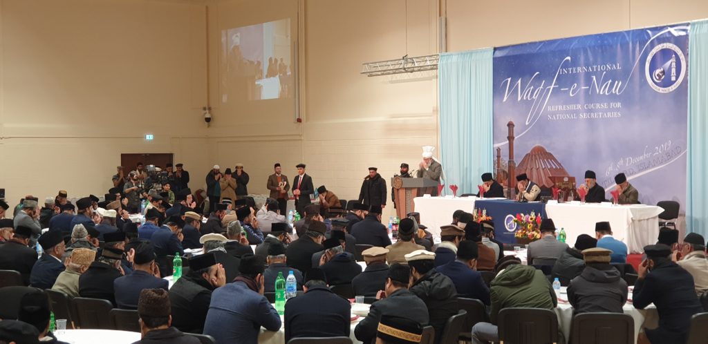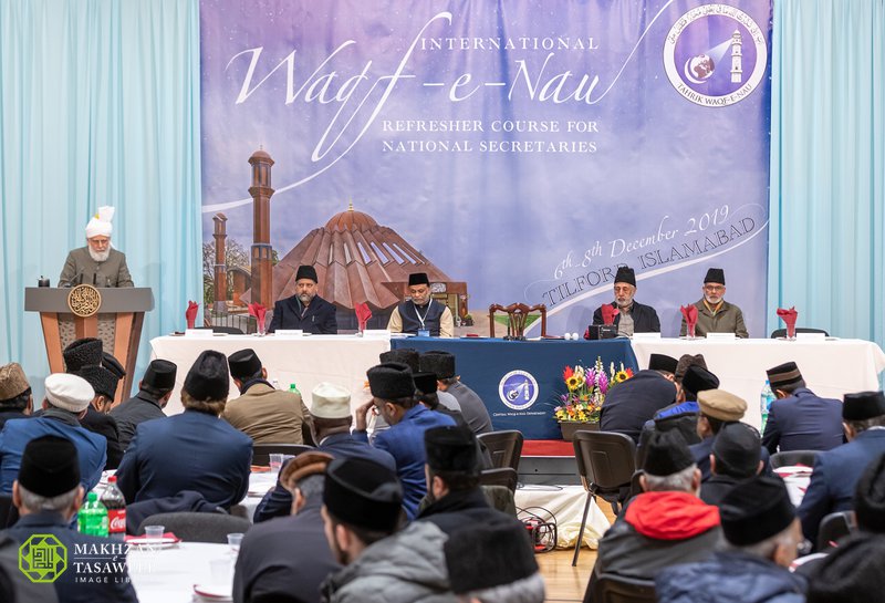 شعبہ وقفِ نَو مرکزیہ (یوکے)کے زیرِ اہتمام انٹرنیشنل ریفریشر کورس میں 30 ممالک سے تعلق رکھنے والے 42نمائندگان کی شمولیت، شعبے سے متعلق تعارفی اور معلوماتی لیکچرز کے ساتھ ساتھ حضرت امیر المومنین کی ہدایات سے آگاہی نیز مرکزِ احمدیت کے مختلف دفاتر کا معلوماتی دورہ (ایوانِ مسروراسلام آباد ٹلفورڈ، 07؍ دسمبر 2019، نمائندہ الفضل انٹرنیشنل لندن)حضرت امیر المومنین ایّدہ اللہ تعالیٰ بنصرہ العزیز نے آج شام نمازِ عشاء کے بعد شعبہ وقفِ نَو مرکزیہ (یوکے) کے زیرِ اہتمام نیشنل سیکرٹریان وقفِ نو کے انٹرنیشنل ریفریشر کورس کو برکت بخشی، شاملینِ ریفریشر کورس اور مہمانانِ کرام کے اعزاز میں دیے جانے والے عشائیہ میں شمولیت فرمائی اور بصیرت افروز خطاب فرمایا۔ حضورِ انور ایّدہ اللہ تعالیٰ الودود بنصرہ العزیز رات آٹھ بج کر33 منٹ پر ایوانِ مسرور میں رونق افروز ہوئے جہاں انچارج شعبہ وقفِ نَو مرکزیہ لقمان احمد کشور صاحب نے حضورِ انور کا استقبال کرنے کی سعادت حاصل کی۔ حضورِ انور کے کرسیٔ صدارت پر رونق افروز ہونے کے بعد پروگرام کا آغاز ہوا۔ تلاوتِ قرآنِ کریم کی سعادت مکرم نورالدین Okubenaصاحب نمائندہ جماعت احمدیہ نائیجیریا نے حاصل کی۔ آپ نے تلاوت کی جانے والی سورۂ آلِ عمران کی آیات 36 اور 37؍ کا انگریزی ترجمہ بھی پیش کیا۔ بعد ازاں مکرم طاہراحمد خالد صاحب (مبلغ سلسلہ جماعت احمدیہ یوکے)نے نظم خلافت ہے انعام آسمانی خلافت ہی نظام معتبر ہے سے منتخب اشعار پیش کیے۔ بعد ازاں انچارج صاحب شعبہ وقفِ نَو مرکزیہ نے رپورٹ پیش کی۔ انہوں نے بتایا کہ اللہ تعالیٰ کے فضل سے سیکرٹریانِ واقفین نو کا پہلا ریفریشر کورس منعقد ہورہا ہے۔ حضور انور کی ہدایت پر تمام ممالک جن میں واقفین نو کی تعداد زیادہ ہے ان کو دعوت نامے بھجوائے گئے۔35ممالک نے اپنے ملکوں کے نمائندگان کے نام بھجوائے جن میں سے 5ممالک کے نمائندگان کو ویزا نہیں مل سکا۔ چنانچہ30 ممالک کے 42 نمائندگان اس ریفریشر کورس میں شامل ہورہے ہیں جو 6 تا 8دسمبر منعقد ہورہا ہے۔ نمائندگان کی رہائش کا انتظام حدیقۃ المہدی میں کیا گیا ہے تاکہ وہ اپنے امام کے قرب سے زیادہ سے زیادہ فیض حاصل کرسکیں اور پانچوں نمازیں حضور انور کی اقتدا میں ادا کرسکیں۔بعد ازاں انہوں نے اس ریفریشر کورس کے دوران ہونے والے مختلف پروگرامز کا تذکرہ کیا۔ خطاب حضورِ انور ایّدہ اللہ تعالیٰ بنصرہ العزیز بعد ازاں حضور پُر نور آٹھ بج کر 46 منٹ پر منبر پر رونق افروز ہوئے اور تشہد، تعوّذاور تسمیہ کے ساتھ اپنے خطاب کا آغاز فرمایا۔ حضورِ انور نے فرمایا کہ اللہ تعالیٰ کے فضل سے پہلا وقف نو ریفریشر کورس منعقد ہو رہا ہے۔ حضور انورایّدہ اللہ نے سیکرٹریان وقف نو کو ان کی ذمہ داریوں کی طرف توجہ لاتے ہوئے فرمایا کہ واقفین نو کے ذمہ مستقبل میں جماعت کی فلاح و بہبود کا کام ہے اس لیے ان کی صحیح طور پر تربیت کرنا ضروری ہے۔ حضور انور نے فرمایا کہ اللہ تعالیٰ کے فضل سے جب سے وقفِ نو کی سکیم جاری کی گئی ہے اس وقت سےوالدین اپنے ہونے والے بچوں کو اس بابرکت سکیم میں شامل کر رہے ہیں۔ بچے کی پیدائش کے بعد ماؤں کی یہ ذمہ داری ہے کہ وہ اپنے بچے کی صحیح طریق پر تعلیم و تربیت کریں تاکہ وہ جماعت کے مشن کو بہترین رنگ میں آگے بڑھا سکیں۔ حضورِ انور نے مختلف ممالک میں قائم جامعات احمدیہ کا ذکر کرتے ہوئے فرمایا کہ بوجوہ جامعات کی تعداد ابھی کم ہے۔اس کے بعد حضور انور نے جماعت احمدیہ کی ضروریات پر بات کرتے ہوئے فرمایا کہ میڈیکل کے شعبے میں واقفین نو کو جانا چاہیے۔ حضورِ انور نے سیکرٹریان واقفین نو کو اس بات کی طرف توجہ دلائی کہ چونکہ انہوں نے واقفینِ نَو کی تربیت کرنی ہے اس لیے ان کو چاہیے کہ وہ اپنے اخلاقی معیاروں کو مزید بلند کریںتاکہ دوسروں کی تربیت بھی کی جا سکے اور واقفینِ نو اس معیار کو حاصل کرنے کی کوشش کریں۔ حضور انور نے نمازوں اور نوافل کی ادائیگی نیز کامل تذلّل کے ساتھ اللہ تعالیٰ کی عبادت کرنے کی طرف توجہ دلائی۔ حضور انور نے فرمایا اگر آپ دعاؤں پر زور دیتے ہوئے ا