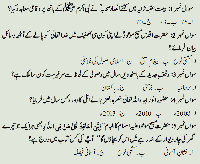 ان سوالات کے جوابات بذریعہ ای میل jawab@alfazl.com یا بذریعہ فیکس 00442085447611 پر اپنے نام اور پتے کے ساتھ 24؍ جنوری تک ارسال کیجیے۔ درست جوابات بتانے والے چند افراد کے اسماء الفضل انٹرنیشنل کے شمارہ 28؍جنوری2020ء میں شائع کیے جائیں گے۔ان شاء اللہ