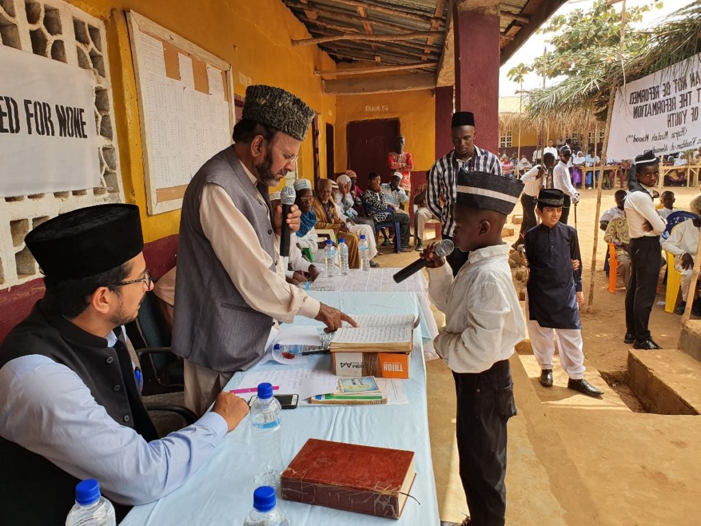 Listen to 2020-04-03_27-27(SIRALEON MEN NMAZ E JUMA) byAl Fazl International on hearthis.at پارلیمنٹ میں نماز جمعہ مورخہ 7؍فروری کو سیرالیون پارلیمنٹ کی طرف سے دعوت پر امیر جماعت سیرالیون مکرم مولانا سعیدالرحمٰن صاحب نے سیرالیون پارلیمنٹ میں خطبہ جمعہ دیا اور نماز جمعہ کی امامت فرمائی۔ آپ کے ساتھ مکرم جمال الدین محمود صاحب جنرل سیکرٹری احمدیہ مسلم جماعت سیرالیون بھی تشریف لے گئے تھے۔ مکرم امیرصاحب نے خطبہ جمعہ میں درود شریف کی اہمیت و برکات بیان کیں ۔ نماز جمعہ کے بعد مکرم سپیکر صاحب پارلیمنٹ نے آپ کو اپنے آفس میں مدعو کیا اور جماعت کی کاوشوں کو سراہا۔ نماز جمعہ میں متعدد پارلیمنٹیرین سمیت حاضری 200؍افراد سے زائد رہی۔ الحمد للہ ، اس طرح سیرالیون کے حکومتی ایوان میں جماعت کا پیغام پہنچانے اور تبلیغ کا بہترین موقع ملا۔ افتتاح مسجد محض اللہ تعالیٰ کے فضل سے مورخہ 15؍ فروری 2020ء کو جماعت احمدیہ سیرالیون کو لنگے ریجن میں ایک مسجد کے افتتاح کی توفیق ملی۔ اس پروگرام اور لنگے ریجن میں ہونے والی بعض تقاریب آمین کی رپورٹ پیش خدمت ہے۔ مورخہ 15؍فروری کو لنگے ریجن کی جماعت Tagrinمیں ایک مسجد کا افتتاح ہوا۔ پروگرام کا باقاعدہ آغاز دن ساڑھے دس بجے مکرم امیر صاحب سیرالیون کی صدارت میں تلاوت قرآن کریم سے ہوا۔ جس کے بعد مہمانوں کا تعارف کروایا گیا۔ مکرم امیر صاحب نے حاضرین سے خطاب کیا اور جماعت کا تعارف پیش کیااور مسجدکے باقاعدہ افتتاح کے بعددعا کروائی۔ پروگرام کے بعد حاضرین کی خدمت میں کھانا پیش کیا گیا۔ اس مسجد کا سنگ بنیاد مورخہ 9؍اگست2017ءکو مکرم محمد نعیم اظہر صاحب ، مبلغ سلسلہ نے رکھا تھا۔ اس مسجدکا کل مسقف حصہ 30x35فٹ ہے اور اس میں 200؍افراد نماز ادا کرسکتے ہیں۔ یہ مسجد جماعتی خرچ پر تیار ہوئی ہے اور اس کے کام کی نگرانی خود مکرم امیر صاحب نے کی۔ مسجد کی تعمیر پر کل 6000 پاؤنڈز خرچ ہوئے۔ اس بابرکت تقریب میں علاقہ کے غیر از جماعت ائمہ اور معززین علاقہ سمیت 500سےزائد افراد شامل ہوئے۔ تقاریب آمین مکرم امیر صاحب سیرالیون نے مورخہ 15تا 16فروری لنگے ریجن میں مختلف تقاریب آمین میں شرکت کی اور قرآن کریم ناظرہ کا پہلا دور مکمل کرنے والے بچوں اور بچیوں کی حوصلہ افزائی فرمائی اور ان میں اسناد تقسیم کیں۔ لنگے ریجن کی کل 4جماعتوں کے 39؍افراد نے قرآن کریم ناظرہ کا اول دور مکمل کرنے کی سعادت حاصل کی۔ ان افراد میں ایک 70سالہ شخص پا مورلائی کمارا صاحب بھی شامل ہیں۔ کثرت سے غیر از جماعت اماموں اور شرفاء علاقہ نے ان پروگراموں میں شرکت کی اور اس کا بہت نیک اثر ہوا۔ ان بابرکت تقریبات میں احباب جماعت و غیرازجماعت احباب سمیت 1000سے زائد افراد شامل ہوئے۔