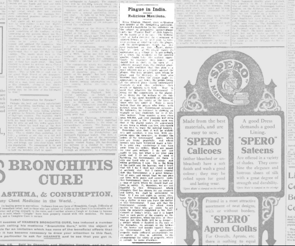 112 برس قبل آسٹریلیا میں حضرت اقدس مسیح موعود علیہ الصلوٰۃ والسلام کے ارشادات کی ترویج Listen to 2020-04-01_(AIK NADIR HAWALA) byAl Fazl International on hearthis.at برسبین (کوئنزلینڈ، آسٹریلیا) سے شائع ہونے والے اخبار دی ٹیلیگراف (The Telegraph.QLD) نے ہفتہ 5 ؍اکتوبر1907 ء کوصفحہ 12 پر ایک رپورٹ شائع کی جس کا عنوان ’’ہندوستان میں طاعون۔۔ مذہبی اعلامیہ‘‘ ( Plague in India. Religious Manifesto) ہے۔ تحریکِ احمدیت کے بانی حضرت مرزا غلام احمد قادیانی مسیح موعود و مہدی معہود علیہ الصلوٰۃ والسلام اخبار نے لکھا کہ تحریک احمدیت کے بانی مرزاغلام احمدرئیس قادیان نے اپنے پیروکاروں کے لیے طاعون سے نبٹنے کے لیے ایک اعلامیہ جاری کیا ہے جو کہ اخبار‘‘پائنیئر میل’’( Pioneer Mail ) نے 30 ؍اگست کو شائع کیاہے۔انہوں نے کہا ہے کہ گورنمنٹ آف انڈیا کے نزدیک طاعون زدہ مکان سے انخلاء اس انفیکشن میں مبتلا ہونے کے امکانات کو کم کرنے کا بہترین طریق ہے۔اور اس ضمن میں جوہدایات حال ہی میں شائع کی گئی ہیں ان کے مطابق جوں ہی کسی گاؤں یا شہرکے کسی محلہ میں طاعون ظاہر ہو جائےتو وہاں کے مکین فوری طورپر متاثرشدہ عمارات سے انخلا کرکے کسی کھلی جگہ منتقل ہوجائیں جو طاعون زدہ علاقہ سے محفوظ اور مناسب دوری پر واقع ہو۔ https://trove.nla.gov.au/newspaper/article/170593418 میں پورے اعتماد کے ساتھ کہتاہوں کہ یہ منصوبہ طاعون کے خلاف ایک مؤثرترین حربہ ہے۔ ہمارے نبی پاک صلی اللہ علیہ وسلم نے بھی یہی حکم فرمایا تھا کہ ’’جب کسی آبادی میں طاعون ظاہر ہو تو وہاں سے لوگوں کوفوری طورپر نکل جاناچاہیے، بصورت دیگر وہ لوگ خداسے جنگ لڑنے والے ہوں گے۔‘‘ یاد رکھوکہ طاعون کا قلع قمع کرنے کی خاطرحکومت جو بھی اقدامات کررہی ہے وہ رعایا کی فلاح و بہبود کےلیے ہی کررہی ہے۔ حکومت ہزاروں لاکھوں روپے اپنی رعایا کی جانوں کے تحفظ کی خاطر خرچ کر چکی ہے۔اس سے بڑھ کر اور کون بیوقوف ہوسکتا ہے جو حکومتی اقدامات کو شک کی نگاہ سے دیکھے۔ میری جماعت کوچاہیے کہ وہ سب سے بڑھ کر اس سلسلہ میں حکومتی احکامات کی اطاعت کرکے دکھلائے کیونکہ اسی میں تمہارابھلاہے۔اس وقت تمہاری تعدادقریباً چارلاکھ ہےاور تمہارانمونہ بہتوں کی زندگیاں بچانے کے لئے ایک (قابلِ تقلید) مثال بن سکتاہے…۔ میں تمہیں تاکید کرتا ہوں کہ اگر ایسی جگہ طاعون ظاہر ہوجائے جہاں تم رہائش پذیر ہوتوتم فوراً اس جگہ کو چھوڑ دو۔ یاد رکھو کہ اگر تم ان اقدامات کو شک کی نگاہ سے دیکھوگے یا حکومتی احکامات کی نافرمانی کروگے توایسافعل فساد اور شرارت میں شمارہوگا۔ تم ایک ایسی حکومت کی نافرمانی کررہے ہوگے جس کے سایہ میں تم امن سے رہ رہے ہو اور جس کی عنایات پر تم بارہا شاہد ٹھہر چکے ہو ۔یہ تمہاری اپنی بدقسمتی ہوگی اگر تم اس کے ان احکامات سے روگردانی اختیارکروگے جو تمہارے ہی فائدہ کے لیے ہیں۔ میں جو کچھ بھی کہہ رہا ہوں تمہاری بھلائی کی خاطر کہہ رہا ہوں نہ کہ گورنمنٹ کی خوشامد کی غرض سے۔ مجھے اس کی چنداں ضرورت نہیں کیونکہ میرا بادشاہ میرا خدا ہے جو میری پناہ ہے اور اسی سے میں اپنی حفاظت چاہتا ہوں ۔ وہ زمین اور آسمان کا بادشاہ ہے اور مجھے یقین ہے کہ مرتے دم تک مجھے کسی اورسے مددکی ضرورت نہیں پڑے گی۔لیکن میں اس بات کا اظہارکرنا بھی ضروری سمجھتا ہوں کہ جبکہ خدا تعالیٰ نے ہمیں ایسی حکومت عطا کی ہے جوہم سب کی بہبود کا اتنا سامان کررہی ہے…تواس حکومت کا شکریہ ادانہ کرنا خدا تعالیٰ کی ناشکری کرنےکے مترادف ہوگا۔‘‘ https://trove.nla.gov.au/newspaper/article/170593280 اس اعلامیہ کے ذریعہ اگر ایک طرف حضرت مسیح موعود علیہ السلام نے احباب جماعت کو مذکورہ بالاہدایات سے نوازا،تو ساتھ ہی حکومت وقت کی توجہ بھی احمدیوں کی ظاہری حفاظت کے حوالہ سے ایک اہم پہلو کی طرف مبذول کروائی۔ جسے اخبارنے اس رپورٹ میں شاملِ اشاعت کیا ہے۔ رپورٹ کے مطابق حضورعلیہ السلام نے فرمایا: ’’ جیسا کہ حکومت ان لوگوں کو جو اس کے جاری کردہ احکامات پرعمل کرنے کے لیے تیارہوں گے، ہرممکن سہولت میسرکرنے کا عزم رکھتی ہے، میں اس بات کا اضافہ کرناچاہتاہوں کہ ایسے علاقے مثلاً صوبہ سرحد، جہاں