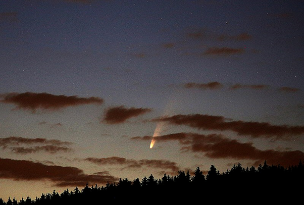 پرانے وقتوں میں موسم گرما میں اکثر لوگ، کیا دیہاتی اور کیا شہری جیسے ہی رات اپنی کالی چادر اوڑھنے لگتی اپنے گھروں کے کھلے صحنوں میں چارپائیا ں بچھا لیتے۔ بچے اپنے والدین سے ستاروں کی کہانیاں سنتے اور والدین بھی آسمان پر موجود جھلملانے والے دیدہ زیب ستاروں کی طرف اشارہ کرکے بچوں کو ستاروں، پریوں اور ان سے منسلکہ کہاوتوں کی اوڑ میں بچوں کو نیند کی آغوش میں پہنچا دیتے۔لیکن آج کل کےمصروف الاوقات دَور میں انسان کی نظر آسمان کی طرف کم ہی اٹھتی ہے خصوصاً رات کے وقت شہروں میں تیز روشنیوں کے باعث ہم لوگ آسمان میں موجود خوبصورت ستاروں کا نظارہ کرنے سے محروم رہتے ہیں۔لیکن آج کل آسمان پر ایک نیا دُم دار ستارہ جس کو کومیٹ نیووائز (COMET NEOWISE) کہتے ہیں آسمان کی زینت بنا ہوا ہے جس کو باآسانی دیکھا جا سکتا ہے۔ This photo is taken from Zuzici, Istria, Croatia, 08.07.2020. 4 in the morning with Nikon P1000 (3000 mm). Source WikiPedia اگر یہ کومیٹ ہم اس مرتبہ نہ دیکھ سکے، تو اس کودیکھنے کے لیے ہمیں سات ہزار سال تک انتظار کرنا پڑ سکتا ہے، جو کہ شاید تھوڑا مشکل ہو۔ English: Komet C/2020 F3 (NEOWISE) near Sursee, Central Switzerland, 7 July 2020 Source WikiPedia کومیٹ نیو وائزآج کل غروبِ آفتاب کے بعد اور طلوعِ آفتاب سے قبل آسمان پر دیکھا جا سکتا ہے۔ اسے نیو وائز کا نام اس لیے دیا گیا ہے کیونکہ اسے ناسا کی نیو وائز خلائی دوربین نے دریافت کیا ہے۔ This is a 4-second exposure of Comet C/2020 F3 NEOWISE captured with a Canon 6D DSLR (120mm, f/2.8) in San Francisco, California, 7 July 2020, 04:02:00 WikiPedia ان دم دار ستاروں کی اپ ڈیٹ لینے کےلیے آپ اپنے موبائل فون پر GOOGLE SKYMAP کی APPLICATION، SKY SAFARI APP انسٹال کر کے اس سے مدد لے سکتے ہیں۔ سائنسدانوں کے مطابق یہ کومیٹ اب تقریباً 6766 سال بعد دوبارہ ہماری زمین کے پاس آئے گا۔ کومیٹ یا دمدار ستارہ کس کو کہتے ہیں؟ کومیٹ کو عام طور پر اُردو میں دُم دار ستارہ کہا جاتا ہے حالانکہ یہ ستارے نہیں ہوتے، تاہم ان کی دُم ضرور ہوتی ہے۔کومیٹ ہمارے نظامِ شمسی کا حصہ ہوتے ہیں، اور کبھی کبھی یہ ادھر اُدھر سے گھومتے ہوئے ہمارے سورج کی کششِ ثقل (گریویٹی) میں پھنس جاتے ہیں اور اس کے گرد چکر لگانا شروع کر دیتے ہیں۔کومیٹ یادُمدار ستارے میں اکثر حصہ برف پر مشتمل ہوتا ہے نیز خاک اور پتھر وغیرہ کا ملبہ بھی ہوتا ہے اس کے علاوہ گیسیں مثلاً METHANE+AMMONIA+CARBON MONO OXIDE + CARBONDIOXIDE وغیرہ بھی موجود ہوتی ہیں اور سورج سے دور یہ گیسیں جمی ہوئی حالت میں ہوتی ہیں۔دُمدار ستارے چند سو میٹر سے لے کر 40کلو میٹر سے کچھ اوپر سائز کے ہوتے ہیں۔ دُمدار ستارے بہت بڑی تعداد میں نظام شمسی میں پائے جاتے ہیں۔یہ سورج کے گرد بیضوی مدار (ELLIPTIC ORBIT)میں گھومتے ہیں۔ زیادہ وقت سورج سے دور ہوتے ہیں اور نظر نہیں آتے۔ جب سورج کے قریب آتے ہیں تو دُمدار ستارے کی شکل میں نظر آتے ہیں۔ اس چکر کے ایک سرے پر یہ سورج کے بالکل قریب سے گزرتے ہیں اور دوسری انتہا پر یہ سورج سے بہت دور نکل جاتے ہیں یہاں تک کہ ان میں سے بعض سورج کے گرد موجود تمام سیاروں سے بھی دور نکل جاتے ہیں اور پھر دوبارہ سورج کے بالکل قریب سے گزرتے ہیں۔جن دُمدار ستاروں کا محور چھوٹا ہوتا ہے وہ یہ محور بیس سال سے کم عرصہ میں مکمل کرتے ہیں۔ ان میں سے بعض ایسے ہیں جو کہ یہ محور دو سو سال کے عرصہ میں پورا کرتے ہیں اور بعض ایسے ہیں کہ سورج کے گرد اپنا چکر ہزاروں سالوں میں مکمل کرتے ہیں۔ جن دُمدار ستاروں کے درمیانی دور دو سو سال سے کم ہوتے ہیں ان کو SHORT PERIOD COMETS کہتے ہیں اور جن کے درمیانی دور دو سو سال سے زیادہ ہوتے ہیں ان کو LONG PERIOD COMETS کہتے ہیں۔ نظام شمسی میں موجود بے شمار دُمدار ستاروں میں سے بہت تھوڑی تعداد ہوتی ہے جسے ہم زمین سے بغیر دوربین یا دیگر آلات کی مدد سے دیکھ سکتے ہیں۔بعض دُمدار ستارے سورج سے اتنا دور نکل آتے ہیں کہ وہ ہمارے نظام شمسی سے ہمیشہ کے لیے رخصت ہو جاتے ہیں اور بعض سورج کے قریب سے گزرتے ہوئے ختم ہو جاتے ہیں۔ جب یہ دُمدار ستارے نظام شمسی کے اندر کے حصہ سے گزرتے ہیں تو سورج کی شعاعوں کے اثر سے ان سے بخارات اٹھتے ہیں جو کہ دُمدار ستارے کے ارد گرد ایک روشن ہالہ بناتے ہیں جسے
