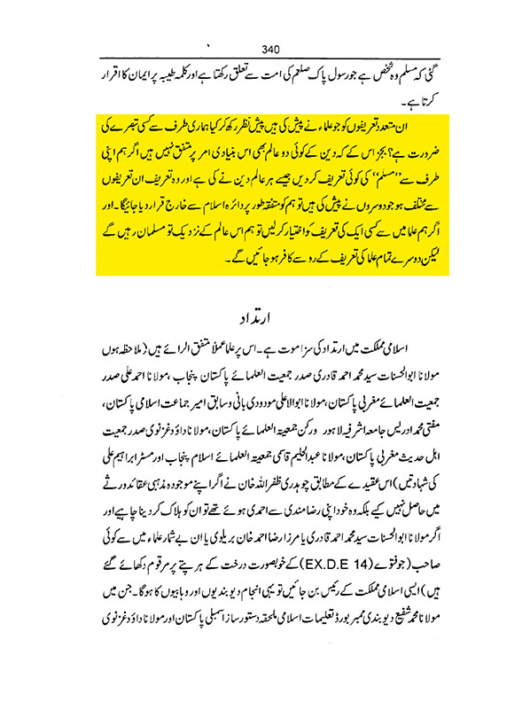 احمدیوں کو دائرہ اسلام سے نکالنے کا شوق بعض نام نہاد علماء کو ہمیشہ بے چین اور مضطرب رکھتا ہے ۔اس سلسلے میں قرآن و حدیث میں بیان کردہ مسلمان کی تعریف سے ہٹ کر ہی کوئی تعریف کیوں نہ بنانی پڑے،یہ طبقہ اس سے بھی دریغ نہیں کرتا۔چنانچہ اس کی دلچسپ صورتحال 1953ء میں پیش آئی جب حکومت پنجاب نے اس سال ہونے والے احمدیہ مخالف فسادات کی تحقیقات کے لیے ایک تحقیقاتی کمیشن قائم کیا۔یہ تحقیق دو فاضل جج صاحبان محمد منیر اور ایم آر کیانی نے بڑی محنت اور جانفشانی سے کی۔اس سلسلے میں 117 اجلاس کیے گئے۔تحقیقات کے لیے بڑے بڑے مسلمان علماء کو اس سلسلےمیں کمیٹی میں بلایا گیا۔ بعد ازاں ’’رپورٹ تحقیقاتی عدالت برائے تحقیقات فسادات پنجاب 1953ءالمعروف منیر انکوائری رپورٹ‘‘ کے نام سے شائع کی گئی۔624صفحات پر مشتمل اس رپورٹ کا مطالعہ انتہا پسند مذہبی ٹھیکیداروں کے کردار اور اخلاق کو جانچنے کا نہایت معلوماتی اور ٹھوس ثبوت ہے۔اس رپورٹ کے ایک حصہ میں مسلمان کی تعریف پر بحث شامل کی گئی ہے۔ کمیٹی نے اس دور کے جید علمائے دین سے مسلمان کی تعریف پوچھی اور سب کو اچھی طرح بتایا گیا کہ آپ وہ قلیل سے قلیل شرائط بیان کیجیے جن کی تکمیل سے کسی شخص کو مسلمان کہلانے کا حق حاصل ہوجاتا ہے۔ان علماء نے مسلمان کی جو جو تعریف کی اس پر کوئی سے دو علماء بھی ایک تعریف پر متفق نہیں تھے۔یاد رہے تعریف کرنے والے ان علماء میں ہر طبقہ فکر کی بڑی بڑی شخصیات شامل تھیں۔مثلاً مولانا ابو الحسنات محمد احمد قادری صدر جمیعت علماء پاکستان۔مولا نا احمد علی صاحب صدر جمیعت علماء مغربی پاکستان،مولانا ابو الاعلیٰ مودودی صاحب امیر جماعت اسلامی،غازی سراج الدین منیر صاحب،مفتی محمد ادریس صاحب جامعہ اشرفیہ نیلا گنبد لاہور،حافظ کفایت حسین صاحب ادارہ تحفظ حقوق شیعہ،مولانا عبد الماجد بدایونی صاحب،مولانا محمد علی کاندھلوی صاحب دار الشہابیہ سیالکوٹ،مولانا امین احسن اصلاحی صاحب ۔ چنانچہ ان علماء کی تعریفیں درج کرنے کے بعد رپورٹ میں فاضل جج صاحبان نے تبصرہ کرتے ہوئے لکھا کہ ’’ان متعدد تعریفوں کو جو علماء نے پیش کی ہیں پیش نظر رکھ کر کیا ہماری طرف سے کسی تبصرے کی ضرورت ہے؟بجز اس کے کہ دین کے کوئی دو عالم بھی اس بنیادی امر پر متفق نہیں ہیں ۔اگر ہم اپنی طرف سے ’مسلم‘ کی کوئی تعریف کردیں جیسے ہر عالم دین نے کی ہے اور وہ تعریف ان تعریفوں سے مختلف ہو جو دوسروں نے پیش کی ہیں تو ہم کو متفقہ طور پر دائرہ اسلام سے خارج قرار دیا جائے گا۔اور اگر ہم علماء میں سے کسی ایک کی تعریف کو اختیار کرلیں تو ہم اس عالم کے نزدیک تو مسلمان رہیں گے لیکن دوسرے تمام علماء کی تعریف کی رو سے کافر ہوجائیں گے۔‘‘ (منیر انکوائری رپورٹ صفحہ 340) اس سے اگلے صفحہ پر لکھا ہے: ’’شیعوں کے نزدیک تمام سنی کافر ہیں اور اہل قرآن یعنی وہ لوگ جو حدیث کو غیر معتبر سمجھتے ہیں اور واجب التعمیل نہیں مانتے متفقہ طور پر کافر ہیں۔اور یہی حال آزاد مفکرین کا ہے۔اس تمام بحث کا آخری نتیجہ یہ ہے کہ شیعہ ،سنی،دیوبندی، اہل حدیث اور بریلوی لوگوں میں سے کوئی بھی مسلم نہیں۔ اور اگر مملکت کی حکومت کسی ایسی جماعت کے ہاتھ میں ہو جو دوسری جماعت کو کافر سمجھتی ہے تو جہاں کوئی شخص ایک عقیدے کو بدل کر دوسرا اختیار کرے گا ۔اس کو اسلامی مملکت میں لازما ًموت کی سزا دی جائے گی ۔‘‘ (منیر انکوائری رپورٹ صفحہ 341) (مرسلہ: ساجد محمود بٹر۔گھانا)