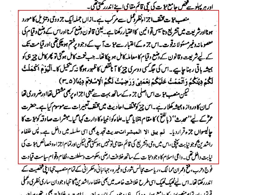 Listen to 20210108_daleel say byAl Fazl International on hearthis.at مولانا ابوالکلام آزاد کا اصل نام محی الدین احمد تھا۔ آپ11؍نومبر 1888ء میں مکہ معظمہ میں پیدا ہوئے۔ عربی آپ کی مادری زبان تھی۔ 1895ء میں کلکتہ آگئے اور یہاں آپ کی باقاعدہ تعلیم شروع ہوئی۔ قرآن و حدیث و فقہ کا گہرا مطالعہ کیا۔ شاعربھی تھے۔ رانچی قیام کے زمانے میں ترجمان القرآن ترتیب دیا اور ’’الصلوٰۃ و الزکوٰۃ‘‘ اور ’’النکاح‘‘ وغیرہ تصانیف مکمل کیں۔ مولانا کی زندگی کا بڑا حصہ ادبی اور سیاسی میدان میں طبع آزمائی کرتے گزرا۔ بہت سے رسالوں میں مضامین لکھے اور کئی ادبی رسالے شائع کیے۔ سب سے پہلا رسالہ ماہنامہ ’’نیرنگِ عالم‘‘ 1899ء میں جاری کیا۔ 1909ء میں ’’لسان الصدق‘‘ (ماہنامہ )شائع کیا۔ 31؍جولائی 1906ء کو ہفت روزہ ’’الہلال‘‘ کا پہلا شمارہ شائع کیا۔ حکومت نے ’’الہلال‘‘پریس کو ضبط کرلیا تو مولانا نے ’’البلاغ‘‘ کے نام سے دوسرا اخبار جاری کیا۔ مولانا کے خطوط کے مجموعے’’غبار خاطر‘‘، ’’کاروان خیال‘‘، ’’برکات آزاد‘‘کے نام سے شائع ہوئے۔ تقسیم ہندکے بعد ہندوستان کی عبوری حکومت میں وزارت تعلیم اور سائنسی تحقیقات کے قلم دان کی ذمہ داری سنبھالی۔ 1947ء سے 1957ء تک اعلیٰ اور فنی تعلیم کے ارتقا کے لیے کام کیا۔ آپ کی وفات 22؍فروری 1958ء کوہوئی۔ آپ منصب نبوت کے متعلق لکھتے ہیں کہ ’’منصب نبوت مختلف اجزاء نظر وعمل سے مرکب ہے۔ ازاں جملہ ایک جزو وحی وتنزیل کا مورد ہونا اور شریعت میں تشریع وتاسیس قوانین کا اختیار رکھنا ہے۔ یعنی قانون وضع کرنا اور اس کے وضع وقیام کی معصومانہ وغیر مسئولانہ قوت۔ اس جز کے اعتبار سے نبوت آپ کے وجود پر ختم ہوچکی تھی اور قیامت تک کے لئے شریعت وقانون کے وضع وقیام کا معاملہ کامل ہوچکا تھا۔ جب نعمت کامل ہوگئی تو پھر کامل چیز ہی کو ہمیشہ باقی رہنا چاہیے۔ اس کی جگہ کسی دوسری چیز کا آنا نقص کا ظہور ہوگا نہ کہ تکمیل کا۔ اَلْیَوْمَ اَکمَلْتُ لَکُمْ دِیْنَکُمْ وَاَتمَمْتُ عَلَیْکُمْ نِعْمَتِیْ وَرَضِیْتُ لَکُمْ الْاِسْلاَمَ دِیْنًا (5-3) لیکن منصب نبوت اس اصلی جز کے ساتھ بہت سے تبعی اجزاء پربھی مشتمل تھا اور ضروری تھا کہ ان کا دروازہ ہمیشہ کھلا رہے۔ اس چیز کو مختلف احادیث میں مختلف تعبیرات سے موسوم کیا ہے۔ حضرت عمرؓ کے لئے ’’محدث‘‘(بالفتح)کا مقام بتلایا گیا۔ علماء کو انبیاء کا وارث کہا گیا۔ مبشرات صادقہ کو نبوت کا چالیسواں جز قرار دیا۔ لَمْ یَبْقَ اِلَّا الْمُبَشِّرَا تِحدیث تجدید بھی اسی سلسلہ میں داخل ہے۔ پس خلفاء راشدینؓ کو جو نیابت پہنچی۔ اس میں وحی وتشریع کی قائم مقامی تو نہیں ہوسکتی تھی لیکن اور تمام اجزاء وخصائص نبوت کی نیابت داخل تھی۔ ‘‘ (مسئلہ خلافت از مولانا ابو الکلام آزاد صفحہ نمبر 33ناشر مکتبہ جمال، اصغر پریس، 2006ء ) حضرت مسیح موعود علیہ السلام فرماتے ہیں کہ ’’میں اس کے رسول پر دلی صدق سے ایمان لایا ہوں۔ اور جانتا ہوں کہ تمام نبوّتیں اس پر ختم ہیں اور اس کی شریعت خاتم الشرائع ہے۔ مگر ایک قسم کی نبوّت ختم نہیں یعنی وہ نبوّت جو اس کی کامل پیروی سے ملتی ہے اور جو اس کے چراغ میں سے نور لیتی ہے وہ ختم نہیں کیونکہ وہ محمدی نبوّت ہے یعنی اس کا ظل ہے اور اسی کے ذریعہ سے ہے اور اسی کا مظہر ہے اور اسی سے فیضیاب ہے‘‘ (چشمہ معرفت، روحانی خزائن جلد23صفحہ340) اسی صفحہ کے حاشیہ میں فرمایا کہ ’’ہم بارہا لکھ چکے ہیں کہ حقیقی اور واقعی طور پر تو یہ امر ہے کہ ہمارے سید ومولیٰ آنحضرتﷺ خاتم الانبیاء ہیں اور آنجناب کے بعد مستقل طور پر کوئی نبوت نہیں اور نہ کوئی شریعت ہے اور اگر کوئی ایسا دعویٰ کرے تو بلاشبہ وہ بے دین اور مردود ہے لیکن خدا تعالیٰ نے ابتدا سے ارادہ کیا تھا کہ آنحضرتﷺ کے کمالات متعدیہ کے اظہار واثبات کے لئے کسی شخص کو آنجناب کی پیروی اور متابعت کی وجہ سے وہ مرتبہ کثرت مکالمات اور مخاطبات الہٰیہ بخشے کہ جو اس کے وجود میں عکسی طور پر نبوت کا رنگ پیدا کر دے۔ سو اس طور سے خدا نے میرا نام نبی رکھا یعنی نبوتِ محمدیہ میرے آئینۂ نفس میں منعکس ہوگئی 