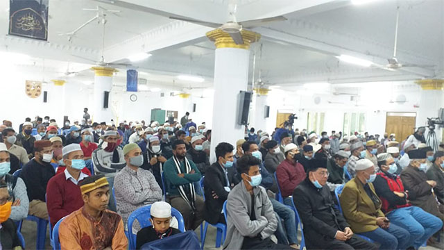 اللہ تعالیٰ کے فضل سے بنگلہ دیش میں حضرت خلیفۃ المسیح الثانی رضی اللہ عنہ کے دور خلافت سے قضاء کا نظام جاری ہے۔ جماعت احمدیہ بنگلہ دیش کے نیشنل قضاء بورڈ کا سیمینار مورخہ 11؍دسمبر 2020ء بروز جمعہ بخیر و عافیت ڈھاکہ کی مرکزی مسجد میں منعقد ہوا۔ الحمد للہ نماز جمعہ کے فوراً بعد یہ سیمینار شروع ہوا۔ سیمینار کی صدارت نیشنل امیر جماعت بنگلہ دیش مکرم عبد الاول خان صاحب چودھری نے کی۔ اجلاس کا آغاز تلاوت قرآن کریم سے ہوا جو مولانا شاہ محمد نور الامین صاحب نے کی۔ بعد ازاں مکرم امیر صاحب نے دعا کروائی۔ مکرم میجر جنرل محمود الزمان صاحب (ریٹائرڈ) صدر نیشنل قضاء بورڈ نے افتتاحی تقریر کی۔ موصوف نے اپنی تقریر میں بتایا کہ قضاء بورڈ میں کس طرح معاملہ یا مسئلہ پیش کرنا ہوتا ہے۔ نیز نیشنل قضاء بورڈ کے ممبران سے تعارف بھی کرایا۔ اس کے بعد مولانا صالح احمد صاحب نے قضاء بورڈ کی تاریخ و اہمیت کے موضوع پر تقریر کی۔ پھر سیمینار میں موجود حاضرین، نیز Zoom app کے ذریعہ شامل ہونے والے احباب کو سوالات کرنے کا موقع دیا گیا جن کے احسن رنگ میں جوابات دیے گئے۔ آخر پر مکرم امیر صاحب نے اختتامی تقریر کی اور اختتامی دعا کے ساتھ یہ سیمینار اختتام پذیر ہوا۔ اس کے بعد حاضرین کی خدمت میں کھانا پیش کیا گیا۔ یہ سیمینار YouTube اور Zoom app کے ذریعہ براہ راست نشر کیا گیا جس میں بنگلہ دیش کی قریبا ًہر جماعت نے بھر پور حصہ لیا۔ موصول شدہ رپورٹ کے مطابق ڈھاکہ مرکزی مسجد میں کل حاضری 625 تھی۔ احباب جماعت سے دعا کی درخواست ہے کہ قضاء بورڈ کا یہ سیمینار ہر لحاظ سے مبارک ثابت ہو۔آمین ( رپورٹ: نوید احمد لیمن۔ نمائندہ الفضل انٹرنیشنل)