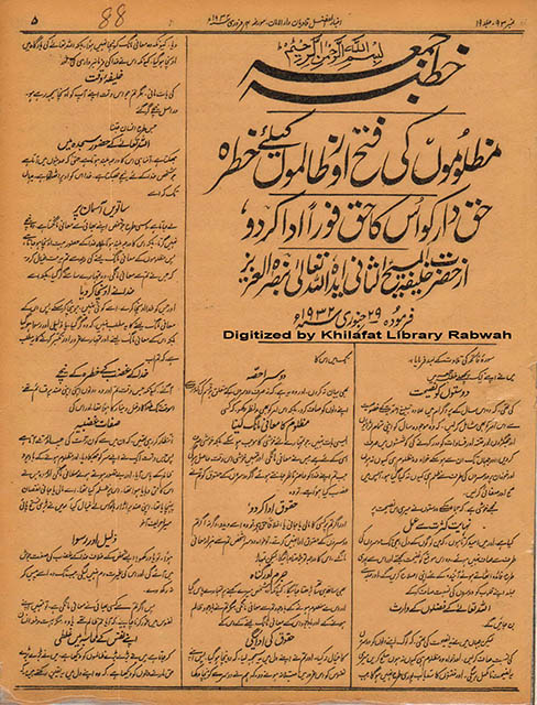 Listen to 20210129_tareekh ahmadiyyat byAl Fazl International on hearthis.at تبلیغی نظام چونکہ جماعت مومنین کے باہمی اتفاق و اتحاد اور جذبہ اخوت کے بغیر کامیاب نہیں ہو سکتا۔ اس لیے حضرت مصلح موعودؓ نے تبلیغ پرزور دینے کے ساتھ 8؍ جنوری کے خطبہ جمعہ ہی میں جماعت سے اس خواہش کا بھی اظہار فرمایا کہ میں چاہتا ہوں کہ ہم اس نئے سال کو اس غرض کے لیے وقف کر دیں کہ جماعت سے تمام لڑائیاں جھگڑے تفرقے اور عناد اللہ تعالیٰ کے فضل سے مٹا دیں۔ اس سلسلہ میں احبابِ جماعت کو یہ خاص ہدایت بھی فرمائی کہ جو شخص اپنے دوسرے بھائی سے کسی وجہ سے نہیں بولتا۔ یا اس سے عداوت اور بغض رکھتا ہے وہ فوراً اپنے بھائی کے پاس جائے اور اس سے خلوص دل کے ساتھ صلح کرلے اور آئندہ کے لیے کوشش کرے کہ آپس میں کوئی لڑائی اور جھگڑا نہ ہو۔ (الفضل 14؍ جنوری 1932ء۔ خطبہ جمعہ فرمودہ 8؍ جنوری 1932ء) حضورؓ کے اس خطبہ کا جماعت پر حیرت انگیز اثر ہوا اور جماعت کے دوستوں نے اپنی رنجشوں اور کدورتوں کو حضور کے اشارہ پر چھوڑ دیا۔ حتیٰ کہ لوگوں نے مالی نقصان گوارا کرکے خطبہ سنتے یا پڑھتے ہی صلح کر لی۔ مستثنیات تو ہر معاملہ میں چلتی ہیں۔ تاہم شاذ و نادر ہی کوئی ایک شخص ہوگا جو اس سعادت سے بکلی محروم رہا ہو۔ (رپورٹ سالانہ صیغہ جات صدر انجمن احمدیہ قادیان 32-1931ء صفحہ 77) حضرت مصلح موعودؓ کی قیمتی نصیحت جماعت میں صلح و آشتی کا یہ خوشکن نظارہ دیکھ کر حضورؓ نے 29؍جنوری 1932ء کے خطبہ جمعہ میں نہایت خوشنودی کا اظہار فرمایا۔ مگر ساتھ ہی نصیحت فرمائی: ’’میں نے یہ نصیحت کی تھی کہ لوگ اپنے دلوں کو دوسروں کی نسبت صاف کر لیں اور خواہ وہ مظلوم ہی کیوں نہ ہوں صلح کر لیں۔ میری یہ نصیحت نامکمل رہے گی اور فتنوں کا سدباب پوری طرح نہیں ہو گا جب تک میں اس کا دوسرا حصہ بھی بیان نہ کروں اور وہ یہ ہے کہ نہ صرف دوسروں کے متعلق ہر قسم کی کدورت سے اپنے دلوں کو صاف کرو بلکہ اس امر کو بھی مدنظر رکھو کہ کسی مظلوم کا معافی مانگ لینا ایسی بات نہیں جو تمہارے لئے خوشی کا موجب ہو سکے بلکہ خوشی صرف اسی کے لئے ہے جس نے معافی مانگی اور تمہیں خوشی اس وقت حاصل ہو گی جب تم اپنے خدا کو حاضر ناظر جانتے ہوئے اگر دوسروں کے حقوق کو تم نے غصب کیا ہوا ہے تو وہ حقوق ادا کر دو۔ اور اگر تم پر کسی کا مالی یا جانی یا اخلاقاً حق ہے تو وہ اسے دے دو۔ ورنہ اگر تم دوسروں کے حقوق ادا نہیں کرتے تو خواہ دوسرا شخص تم سے ہزار معافی مانگے اس کا درجہ تو بڑھتا جائے گا لیکن تمہارا جرم اور گناہ بھی ساتھ ہی ساتھ بڑھتا جائے گا کیونکہ وہ شخص میرے کہنے پر تمہارے پاس گیا۔ اور اس نے مظلوم ہونے کے باوجود تم سے معافی مانگی۔ مگر تم نے باوجود ظالم ہونے کے اور باوجود اس کے معافی مانگ لینے کے اس کے حقوق کی ادائیگی کا خیال نہ کیا۔ اور تم نے اپنے دل میں یہ سمجھ لیا کہ وہ نیچا ہو گیا پس اپنے نفوس کو اس غرور میں مبتلا نہ ہونے دو کہ ہم نے دوسرے کو نیچا دکھا دیا کیونکہ وہ معافی مانگ کر نیچا نہیں ہوا بلکہ اللہ تعالیٰ کی بارگاہ میں اونچا ہو گیا۔ کیونکہ اس نے خدا کی فرمانبرداری کی اور خلیفہ وقت کی بات مانی مگر تم جو اس وقت اپنے آپ کو اونچا سمجھ رہے ہو دراصل نیچے گر گئے جس طرح انسان جتنا اللہ تعالیٰ کے حضور سجدہ میں جھکتا ہے اتنا ہی اس کا درجہ بلند ہوتا ہے۔ حتیٰ کہ حدیثوں میں آتا ہے جو شخص خدا کے لئے نیچے جھکتا ہے۔ خدا اس کو اوپر اٹھاتا ہے یہاں تک کہ اسے ساتویں آسمان پر لے جاتا ہے اسی طرح جو شخص اپنے بھائی سے معافی مانگتا ہے وہ نیچے نہیں گرتا بلکہ اس کا درجہ بلند ہوتا اور خدا کے حضور بہت بلند ہو جاتا ہے۔ ‘‘ ( الفضل 4؍ فروری 1932ء ) دوبارہ تحریک اور زبردست انتباہ کچھ عرصہ بعد جبکہ جماعتی مخالفت زوروں پر تھی جماعت کے ایک طبقہ میں اندرونی مناقشات نے پھر سر اٹھایا۔ اور اس تحریک کے اثرات زائل ہوتے نظر آئے تو حضورؓ نے 26؍ مئی 1935ء کو پھر توجہ دلائی کہ ’’کوئی احمق ہی اس وقت اپنے بھائی سے لڑ سکتا ہے۔ جب کوئی دشمن اس کے گھر پر حملہ آور ہو ایسے نازک وقت میں اپنے بھائی کی گردن پکڑنے والا یا تو پاگل ہو سکتا ہے یا منافق۔ ایسے شخص کے 