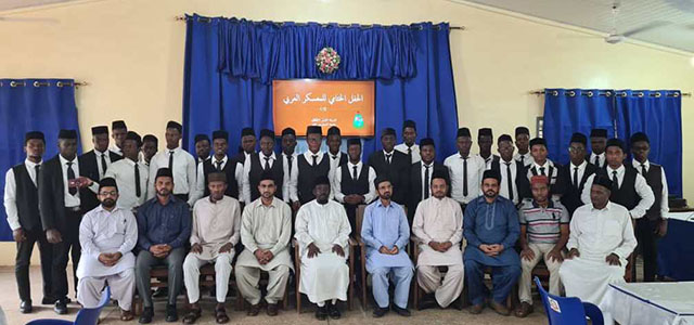 Listen to 20210212_ghana jamia report byAl Fazl International on hearthis.at خدا تعالیٰ کے فضل و احسان سے جامعۃ المبشرین گھانا میں نئے چار سالہ کورس کا آغاز ہو چکا ہے۔ نئے چار سالہ کورس کے ابتدائی دو سالوں کی نصابی سر گرمیوں میں طلباء کو انگریزی، اردو اور عربی زبانوں میں مہارت حاصل کرنے کی طرف زیادہ توجہ دی جا رہی ہے۔ اسی سلسلہ میں رواں سال میں پہلی مرتبہ 5؍تا 28 جنوری درجہ اولیٰ کے لیے عربی کیمپ کا انعقاد عمل میں لایا گیا جس کا مقصد طلباء کو عربی زبان سے متعارف کروانا تھا تا کہ وہ دوران تعلیم بھی بہترین طور پر اسلامی علوم سے خود کو بہرہ ور کرسکیں اور میدان عمل میں بھی انہیں عربی تقریر و تحریر میں کسی قسم کی دقت نہ پیش آئے۔ عربی کیمپ سے متوقع نتائج کے حصول کے لیے چھ رکنی کمیٹی تشکیل دی گئی جس کے شا ملین میں مکرم مبشر حسین صاحب(چیئرمین)،مکرم الحسن الحسن احمد صاحب، مکرم طاہر احمد ظفر صاحب، مکرم رضوان احمد کوثر صاحب، مکرم مبشر اقبال صاحب اور مکرم نواز احمد صاحب تھے۔ کیمپ کے انعقاد کے لیے مختلف شعبہ جات قائم کیے گئے جن کی نگرانی کمیٹی ممبرز کے سپرد کی گئی۔ ان شعبہ جات میں نظامت علیا، خوراک ، آڈیو ویڈیو، دروس و تقاریر، کھیل، مہمان نوازی، علمی و ورزشی مقابلہ جات، معاون خصوصی اور انعامات کا شعبہ شامل ہیں۔ عربی کیمپ کی نمایاں سرگرمیوں میں صبح ساڑھے سات بجے سے ڈیڑھ بجے تک تدریس تھی جس دوران طلباء کو عربی زبان میں گفتگو کے آداب اور قواعد سے آگاہی دلائی گئی۔ تدریسی اوقات کے دوران ایک پیریڈ (period)صرف و نحو کی تعلیم کے لیے مختص رہا اور روز مرہ مستعمل عربی زبان سے واقفیت کے لیے طلباء کو عربی زبان میں ویڈیوز بھی دکھائی گئیں اور رات کو لقاء مع العرب بھی دکھایا جاتا رہا۔ طلباء چھوٹی چھوٹی عربی کتب کا مطالعہ کرتے رہے اور ان کی مدد کے لیے انہیں عربی ڈکشنری استعمال کرنے کا طریق بھی سمجھایا گیا۔ طلباء سے عربی زبان میں حضور انور ایدہ للہ تعالیٰ کی خدمت میں دعائیہ خطوط بھی لکھوائے گئے۔ روزانہ کی بنیاد پر بعد نماز عصر طلباء کھیل میں شامل ہوتے اور اختتامی دنوں میں طلباء کو دو گروپس ناصر اور طاہر میں تقسیم کر کے ورزشی مقابلہ جات بھی کروائے گئے۔ اسی طرح روزانہ کی بنیاد پر رات کے کھانے پر مدعو مہمان کے ساتھ طلباء کاعربی زبان میں مجلس سوال و جواب کا بھی انعقاد کیا جاتا رہا۔ جس سے طلباء کو روانی سے عربی بول چال کا موقع میسر آیا۔ باری کی بنیادپر طلباء اسمبلی کے دوران حضرت خلیفۃ المسیح ایدہ اللہ تعالیٰ کے خطابات میں سے منتخب حصوں کا عربی میں ترجمہ بھی پڑھ کر سناتے رہے۔ نیز نماز عصر کے بعد عربی زبان میں درس کا سلسلہ بھی جاری کیا گیا۔ کیمپ کے دوران آنے والے جمعہ کے دنوں میں طلباء عربی زبان میں خطبہ بھی دیتے رہے۔ مورخہ 30؍جنوری بروز ہفتہ عربی کیمپ کی اختتامی تقریب عمل میں لائی گئی جس کی صدارت خاکسار (پرنسپل جامعۃ المبشرین گھانا) کو کرنے کی سعادت ملی۔ اس تقریب کے دوران کیمپ کی سرگرمیوں پرمشتمل رپورٹ پیش کی گئی اور علمی و ورزشی مقابلہ جات میں نمایاں کامیابی حاصل کرنے والے طلباء میں انعامات بھی تقسیم کیے گئے۔ اس تقریب میں جامعۃ المبشرین کے تمام اساتذہ اور طلباء شامل ہوئے۔ یہ کیمپ اللہ کے فضل سے ایک نیا اور کامیاب تجربہ تھا جو بے حد مفید رہا۔ تقریب کےآخر میں خاکسار نے جملہ اساتذہ اور طلباء کا شکریہ ادا کیا اور طلباء کو اس زبان کی اپنے طور پر بولنے کی مشق کی طرف توجہ دلائی۔ خاکسا ر نے بالخصوص مکرم الحسن الحسن صاحب عربی استاذ کا شکریہ اد اکیا جنہوں نے اس کیمپ کے لیے بے حد محنت کی۔ دعا کے ساتھ یہ تقریب اختتام پذیر ہوئی۔ اس موقع پر خصوصی ظہرانے کا بھی انتظام کیا گیا تھا۔ خدا تعالیٰ اپنے فضل سے تمام اساتذہ کو بہترین جزا دے اور طلباء کی ذہنی ، روحانی اور جسمانی قابلیتوں کو بڑھائے اور انہیں نورِدین سے منور کرے۔ آمین (رپورٹ: فہیم احمد خادم۔ نما ئندہ الفضل انٹرنیشنل)