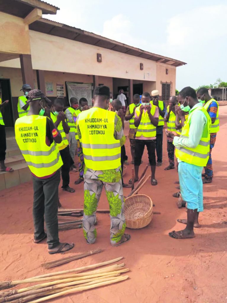 خدمتِ خلق جماعت احمدیہ کے ممتاز اخلاقِ حسنہ میں سے ایک غیر معمولی خلق ہے جس میں جماعت کے بچے، بوڑھے مرد اور عورتیں اپنا اپنا کردار نبھاتے نظر آتے ہیں اور رمضان کے ان بابرکت ایام میں تو یہ دلی جوش دیدنی ہے۔ اسی جذبہ کا ایک خوبصورت اظہار مورخہ 18؍اپریل 2021ء کی صبح کودیکھنے میں آیا جب خدام الاحمدیہ ریجن کوتونو، بینن کے تحت نائب صدر صاحب خدام کی معیت میں کلاوی (Calavi) شہر کے ایک سرکاری مرکزِ صحت میں مثالی وقارِ عمل کا انعقاد کیا گیا۔ مکرم ابراہیم ابلادوں ریجنل قائد کوتونو اور خاکسار(ریجنل مبلغ کوتونو) نے اس پروگرام سے ایک رات قبل ایک مقامی جماعت بوزون(Bouzon) میں تربیتی پروگرام منعقد کرنے کی توفیق پائی جس میں مقامی خدام کے علاہ آس پاس کے گاؤں کے خدام و انصار اور مکرم حسنی یحیٰ صاحب صدر انصار بینن نے بھی شرکت کی۔ نمازِ تہجد کی باجماعت ادائیگی ،سحری اور نمازِ فجر کے بعد مقررہ جگہ پر 21خدام و انصار حاضر ہوئے جنہیں 2 ٹیموں میں تقسیم کر کے مرکزِ صحت کے اندرون اور بیرون کی صفائی کا کام تفویض کیا گیا۔ دعا کے ساتھ شروع کیے گئے 3گھنٹوں کے اس مثالی وقارِ عمل میں نہایت تندہی کے ساتھ خدام نے وقارِ عمل کیا۔ راستے کی صفائی، کچرے کو ٹھکانے لگانا، خستہ حال دیواروں کی ممکنہ مرمت، مرکزِ صحت میں لگے پھولوں اور پودوں کی کانٹ چھانٹ وغیرہ اس پروگرام کے اہم حصے تھے۔ موقع پر موجود نگران مرکزِ صحت نے پُر مسرت، حیرت اور شکر کے مشترکہ جذبات کے ساتھ تمام شاملین کا شکریہ ادا کیا اور اس بات کا اظہار کیا کہ یقیناً آپ نوجوانوں کا یہ عمل نہ صرف یہاں کے عملہ بلکہ مقامی نوجوانوں کےلیے بھی ایک نمونہ ہے۔ آج ہر ایک جہاں اپنے چھوٹے سے چھوٹے عمل کی بھی قیمت کا متمنی ہے آپ لوگوں نے یہ ثابت کیا ہے کہ خدا کی محبت کے طالب لوگ بھی موجود ہیں جو روزہ رکھ کے محض انسانیت کی خدمت کی نیت لےکر یہاں آئے ہیں۔