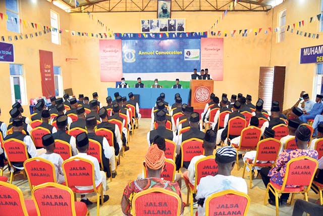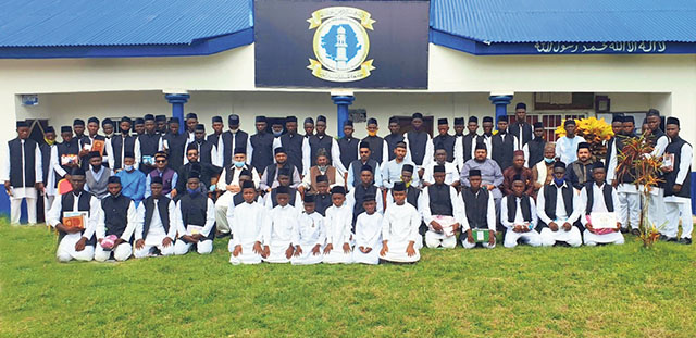 محض اللہ تعالیٰ کے فضل سے جامعۃ المبشرین سیرالیون کو مورخہ 27؍جون 2021ء کو اپنی سالانہ تقریب تقسیمِ انعامات منعقد کرنے کی توفیق ملی۔ تقریب کا باقاعدہ آغاز دن کےبارہ بجے مولانا سعیدالرحمٰن صاحب، امیرو مشنری انچارج سیرالیون کی صدارت میں تلاوتِ قرآنِ کریم و ترجمہ سے ہوا جس کی سعادت عزیزم عثمان سیسے کو حاصل ہوئی۔ اس کے بعد عزیزم محمد ییرو کمارا، عزیزم بشیرالدین اور عزیزم علی بی کانو نے نظم پیش کی۔ مکرم مبارک احمد گھمن صاحب نے جامعۃ المبشرین کی سالانہ رپورٹ پیش کی۔ جس کے بعد خاکسار (نگران مجلسِ علمی) نے علمی مقابلہ جات میں پوزیشن لینے والے طلباء کے ناموں کا اعلان کیا اور امیر صاحب نے ان طلباء میں انعامات تقسیم کیے۔ اس سال ہونے والے انفرادی مقابلہ جات میں تلاوتِ قرآنِ کریم، اذان، فی البدیہ مضمون نویسی، قصیدہ خوانی، فی البدیہ تقریر، حفظِ قرآن، حفظ قصیدہ، مضمون نویسی، کسوٹی اور لطیفہ گوئی کے مقابلہ جات ہوئے۔ گروپس مقابلہ جات میں پیغام رسانی، دینی معلومات، قصیدہ کورس، معلوماتِ عامہ، حدیث کوئز، خلافت کوئز، سیرۃ المہدی کوئز اور قرآن کوئز کے مقابلہ جات کروائے گئے۔ عزیزم حسن نوحا اس سال مجلسِ علمی کے مقابلہ جات میں بہترین طالبِ علم اور محمود گروپ بہترین گروپ قرار پایا۔ بارک اللّٰہ لہم۔ اس کے بعد مکرم مولائی فورنا صاحب نگران مجلسِ العاب نے کھیلوں کے مقابلہ جات میں پوزیشن لینے والے طلباء کے ناموں کا اعلان کیا اور مکرم عقیل احمد صاحب ریجنل مبلغ بو ریجن نے ان میں انعامات تقسیم کیے۔ اس سال انفرادی مقابلہ جات میں سومیٹر دوڑ، پانچ سو میٹر دوڑ، لمبی چھلانگ، اونچی چھلانگ، کراس کنٹری ریس، پیدل چلنے کا مقابلہ، نشانہ غلیل، تھالی پھینکنا، گولہ پھینکنا، ثابت قدمی، پندرہ سو میٹر دوڑ، تین ٹانگ دوڑ، کلائی پکڑنا، پنجہ آزمائی، میوزیکل چیئر اور رکاوٹ ریس شامل تھے۔ اجتماعی مقابلہ جات میں فٹ بال، والی بال، باڑی، رسہ کشی اور ریلے ریس کے مقابلہ جات کروائے گئے۔ عزیزم الحسین کانو بہترین کھلاڑی اور بسالت گروپ بہترین گروپ قرار پایا۔ اساتذہ اور طلباء کے مابین ہونے والے میچ میں طلباء کامیاب رہے۔ بارک اللہ لہم مکرم ادریس احمد صاحب نگران شعبہ امتحانات نے امتحانات میں پوزیشن لینے والے طلباء کے ناموں کا اعلان کیا اور مکرم امیرصاحب نے ان میں انعامات تقسیم کیے۔ سال اول میں عزیزم علی بَلا، سال دوم میں عزیزم جبریلا اے کمارا، سال سوم میں عزیزم علی بی کانو اور سال چہارم میں عزیزم حسن نوحا نے پہلی پوزیشن حاصل کی۔ اس سال کل چھ طلباء فارغ التحصیل ہوکر میدانِ عمل میں جارہے ہیں۔ مکرم امیرصاحب نے اس سال فارغ التحصیل ہونے والے طلباء میں سندات تقسیم کیں اور انہیں قرآنِ کریم باترجمہ کے تحفے دیے۔ دعا ہے کہ اللہ تعالیٰ فارغ التحصیل طلباء ان کے فرائض کماحقہ ادا کرنے کی توفیق عطا فرمائے۔ آمین مکرم امیرصاحب نے اپنی تقریر میں طلباء کو شکر ادا کرنے کی طرف توجہ دلائی اور انہیں بتایا کے ایک وقفِ زندگی ہر حال میں خدا تعالیٰ کا شکر گزار رہتا ہے اور اپنے فرائض بغیر کسی کوتاہی کے ادا کرتا چلا جاتا ہے۔ عزیزم ارونا ایس کانو نے طلباء کی طرف سے مکرم امیرصاحب اور جامعہ کی انتظامیہ کا شکریہ ادا کیا۔ دعا کے ساتھ پروگرام کا ختتام ہوا۔ نمازِ ظہر و عصر کی ادائیگی کے بعد تمام حاضرین کی خدمت میں ظہرانہ پیش کیا گیا۔ (رپورٹ: عبدالہادی قریشی۔ نمائندہ الفضل انٹرنیشنل)