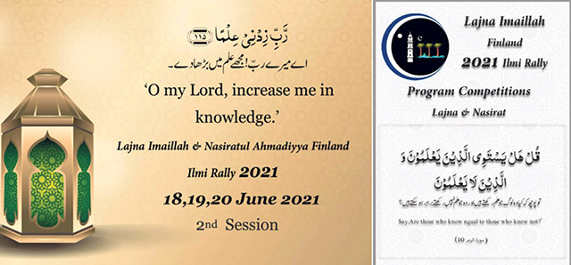 اللہ تعالیٰ کے فضل سے امسال لجنہ اما ء اللہ فن لینڈ کو پہلی مرتبہ اجتماع کی بجائے آن لا ئن علمی ریلی منعقد کر نے کا مو قع ملا۔ موجودہ حالات کے پیشِ نظر کسی بھی جگہ پر اکٹھے ہو کر اجتماع کرنا ممکن نہیں تھا۔ اس بات کو مد نظر رکھتے ہو ئے حضور انور ایدہ اللہ تعالیٰ بنصرہ العزیز کی خد متِ اقدس میں تین دن کے آن لائن اجتماع لجنہ اماء اللہ فن لینڈ کی منظوری کے لیے لکھا گیا، جس پر حضور انور ایدہ اللہ تعالیٰ بنصرہ العزیز نے 18، 19 اور 20 جون کی تاریخوں کی منظوری دیتے ہو ئے ارشاد فر ما یا : ’’آن لائن اجتماع تو نہیں ہو سکتا کیو نکہ اجتما ع میں ورزشی مقابلہ جات بھی ہو تے ہیں جو آن لائن منعقد نہیں ہو سکتے، ہاں اگر علمی پروگرام کر نے ہیں تو آپ کو اسکی اجا زت ہے۔‘‘ حضور انور ایدہ اللہ تعالیٰ بنصرہ العزیز کی اجا زت کے ساتھ ہی علمی ریلی کی انتظامیہ تشکیل دی گئی اور باقاعدہ طور پر علمی ریلی کی تیاری کا آغا ز کیا گیا۔ سب سے پہلا اور ضروری کام لجنہ و نا صرات کے مقابلہ جات کا تعین کر کے نصاب تیار کر نا اور ممبرات تک پہنچانا تھا۔ اس ضمن میں نیشنل سیکریٹری تعلیم مکرمہ کنزہ محمود صاحبہ اور نیشنل سیکریٹری ناصرات مکرمہ سعدیہ مبشرہ صاحبہ نے اہم ذمہ داری ادا کی۔ جنہوں نے خاکسار (نیشنل صدر لجنہ) اور نیشنل جنرل سیکریٹری مکرمہ عفت سعید صاحبہ سے راہنمائی لیتے ہوئے اس نصاب کو تر تیب دیا۔ نصاب کی تیا ری کے لیے متعدد میٹنگز ہوئیں جس کے بعد پورے نصاب کو کتاب کی حتمی شکل دے کر تمام لجنہ و نا صرات کے ساتھ شیئر کیا گیا۔ اس با ت کو یقینی بنا یا گیا کہ یہ نصاب تمام لجنہ و ناصرات تک پہنچ جائے اور وہ اس کے مطا بق ہی تیا ری کریں۔ نصاب کی تفصیل اور تیاری سے متعلق لجنہ و ناصرات کے ماہانہ اجلاس میں لجنہ کی راہنمائی کی گئی۔ نصاب کی تیا ری کےلیے نیشنل شعبہ تعلیم نے ایک الگ کلاس کا انعقاد کیا جس میں لجنہ ممبرات کو نصاب کی تیاری کروائی گئی اور نصاب سمجھانے کے ساتھ ساتھ قواعد و ضوابط سے آگا ہ کیا گیا۔ مقابلہ جا ت کی پلاننگ اور حصہ لینے والی لجنہ کی آسانی کےلیے اُن لجنات کے نام پہلے سے اکٹھے کر لیے گئے جو مقابلہ جات میں حصہ لینا چاہتی تھیں۔ لجنہ کو دو معیار وں میں تقسیم کیا گیا تھا۔ ہر دو معیار کے آٹھ آٹھ مقابلہ جات ان کے معیار کے نصاب کے مطابق کروائے گئے۔ جبکہ پانچ مقابلہ جات دونوں معیاروں کے اکٹھے کروائے گئے۔ مقابلہ جات میں تلاوت قرآن کریم، حفظ، نظم، قصیدہ، درود شریف، حدیث، ادعیہ، اردوتقریر، فنش تقریر، تقریر فی البدیہ، شرائظ بیعت، دینی معلومات، مشاہدہ معائنہ اور بیت بازی شامل تھے۔ اس کے علاوہ لجنہ اور ناصرات کے مقابلہ کیلیگرافی اور ہینڈی کرافٹ بھی علمی ریلی میں شامل کیے گئے، جن میں تمام شاملین نے بھرپور حصہ لیا اور پہلے سے اپنی کاوشیں بھجوا دیں۔ ناصرات کے لیے تین معیاروں کے مطابق نصاب تیار کیا گیا۔ تینوں معیار کے الگ الگ آٹھ علمی مقابلہ جات ہوئے۔ سا ت سال سے کم عمر بچوں کو دو گروپس میں تقسیم کیاگیا اور ہر گروپ کے چارچار مقابلہ جات کروائے گئے۔ تینوں ایام میں نشستوں کے دوران وقتاً فوقتاً بچوں کی ویڈیوز بھی چلائی گئیں جن میں بچوں نے اپنی پسند سے کوئی بھی سورت، حدیث یا دعا سنا کر علمی ریلی کے لیے بھجوائی تھیں۔ اس سال کچھ نئے مقا بلہ جا ت بھی علمی ریلی کا حصہ بنے، جن میں مقا بلہ قصیدہ، درودشریف، مقا بلہ ادعیہ، شرائط بیعت اور حدیث شا مل ہیں۔ ان مقابلوں کا مقصد علمی پرو گراموں کو زیادہ سے زیادہ مفید بنا نا تھا تاکہ لجنات اس سے علمی استفادہ حاصل کر سکیں۔ ان مقابلہ جات میں لجنا ت کی دلچسپی، ان کی بھرپور شرکت کے صورت میں دیکھنے میں آئی ۔ علمی ریلی کے پروگرام کو تین ایام میں پانچ نشستوں میں تقسیم کیا گیا۔ پہلی نشست میں افتتاحی اجلاس کی کارروائی تلاوت قرآن کریم حدیث اور عہد سے ہوئی۔ جس کے بعد خاکسار نے لجنہ کو مخاطب کرتے ہوئے، ان کو جماعتی پروگراموں میں شمولیت کی اہمیت کی طرف توجہ دلائی۔ خاکسار نے حضور انور ایدہ اللہ تعالیٰ بنصرہ العزیز کے تازہ ارشاد کا حوالہ دیا جس 