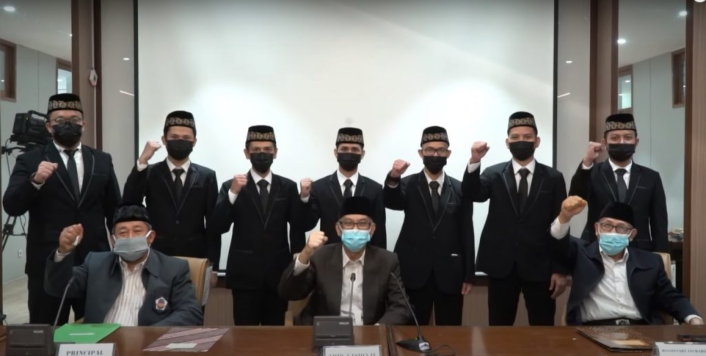 اللہ تعالیٰ کے بے حد فضل و احسان اور حضرت خلیفۃ المسیح ایدہ اللہ تعالیٰ بنصرہ العزیز کی دعاؤں سے حضرت مسیح موعودؑ کی قائم کردہ دینی درس گاہ کی ایک شاخ جو مشرق بعید میں واقع ہے یعنی جامعہ احمدیہ انڈونیشیا سے اس سال4شاہدین اور 7 مبشرین فارغ التحصیل ہوئے۔ کورونا وبا کی حالیہ صورتحال کی وجہ سے تقسیم اسناد کا پروگرام آن لائن مورخہ 15؍جولائی 2021ء بروز جمعرات گیسٹ ہاؤس کے ہال میں منعقد ہوا۔ اس تقریب کے مہمان خصوصی نیشنل امیر مکرم مولانا عبد الباسط صاحب اور مشنری انچارج مکرم مولانا معراج الدین صاحب تھے۔ جامعہ احمدیہ انڈونیشیا کے اساتذہ و طلباء، ممبران مجلس عاملہ اور فارغ التحصیل مربیان کرام کے والدین بھی اس پروگرام میں آن لائن شامل ہوئے۔ اس بابرکت تقریب کا آغاز تلاوت قرآن کریم سے ہوا جو احمد حسن صاحب نے کی۔ اس کے بعد انوار احمد صاحب نے خوش الحانی سے نظم پیش کی۔ مکرم معصوم احمد شاہد صاحب پرنسپل جامعہ احمدیہ انڈونیشیا نے دورانِ سال ہونے والی سرگرمیوں کی مختصر رپورٹ پیش کی۔ بعد ازاں مکرم مشنری انچارج صاحب نے وقفِ زندگی کی اہمیت بیان کرتے ہوئے تبلیغی میدان کے بعض ایمان افروز واقعات کا ذکرکیا اور مبلغین کرام کو قیمتی نصائح کیں۔ مکرم نیشنل امیر صاحب نے نظام خلافت سے کامل وابستگی، توکل علی اللہ اور مجاہدات کے موضوعات پر مختصر تقریر کی۔ تقسیمِ اسناد کے بعد دورانِ تعلیمی سال تمام کلاسز میں اول، دوم اور سوم پوزیشن حاصل کرنے والے طلباء کے اسماء پڑھ کر سنائے گئے۔ آخر پر مکرم نیشنل امیر صاحب نے پرنسپل صاحب اور جملہ اساتذہ کو مبارک باد پیش کی اور اجتماعی دعا سے اس تقریب کا اختتام کیا۔ اس سال درج ذیل شاہدین فارغ التحصیل ہوئے: مکرم محمد فخر الرجال صاحب، مکرم ابرار احمد صاحب، مکرم احمد حسن صاحب اور مکرم فاتح احمد صاحب۔ جامعہ احمدیہ انڈونیشیا کے فارغ التحصیل مبشرین مکرم نیشنل امیر صاحب کے ہمراہ جبکہ اس سال درج ذیل مبشرین فارغ التحصیل ہوئے: مکرم احمد ظفر اللہ صاحب، مکرم یوسف احمد صاحب، مکرم انوار احمد صاحب، مکرم مصلح الدین احسان صاحب، مکرم ہادیت ہُدیٰ صاحب، مکرم مبارک احمد صاحب اور مکرم بلال احمد صاحب۔ جامعہ احمدیہ انڈونیشیا کے فارغ التحصیل شاہدین مکرم نیشنل امیر صاحب کے ہمراہ اسی طرح مدرسہ تحفیظ القرآن جو جامعہ احمدیہ انڈونیشیا کے تحت ہے میں اللہ تعالیٰ کے فضل سے تین سالہ کورس مکمل کرنے کے بعد اس سال 6 طلباء فارغ التحصیل ہوئے۔ ان طلباء کے اسماء درج ذیل ہیں: عزیزم حافظ کاشف احمد، عزیزم حافظ عبد الباسط، عزیزم عبد الباسط، عزیزم مسرور نور عرفان، عزیزم بلال مفتاح الزمان اور عزیزم رجال احمدی۔ مدرسہ تحفیظ القرآن انڈونیشیا کے فارغ التحصیل طلباء مکرم نیشنل امیر صاحب کے ہمراہ احباب جماعت سے دعا کی درخواست ہے کہ اللہ تعالیٰ اس دینی درسگاہ سے ہمیشہ ایسے وجود عطا کرتے رہے جو قرآن کریم کے عاشق ہوں اور مقبول خدمت دین کرنے والے ہوں۔ اللہ تعالیٰ ہماری تبلیغی مہمات میں غیر معمولی برکات عطا کرے تا انڈونیشیا کے طول و عرض میں پاک فطرت انسان احمدیت یعنی حقیقی اسلام میں داخل ہوں۔ آمین