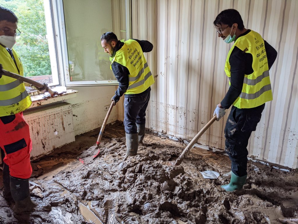 جرمنی میں 10 جولائی 2021ء کو محکمہ موسمیات کی طرف سے خبردار کر دیا گیا کہ جرمنی میں مون سون کے موسم میں معمول سے ہٹ کر بارشوں کا امکان ہے لیکن اس بات کا اندازہ کسی کو بھی نہ تھا کہ اس بار آسمان سے برسنے والا پانی نظام زندگی کو درہم برہم کر کے رکھ دے گا۔ چنانچہ گزشتہ ہفتے کے دوران دن رات جاری رہنے والی بارشوں کا جو سلسلہ شروع ہوا اس نے چار روز میں وہ قیامت ڈھائی جس کا اندازہ کرنا مشکل ہے۔ چھوٹے چھوٹے گاؤں صفحہ ٔ ہستی سے مٹ گئے۔ پوری پوری عمارتیں دریاؤں کی روانی کا حصہ بن گئیں۔ اگر حکومتی محکمے بروقت حرکت میں نہ آتے تو جرمنی کے دو صوبوں North Rhine-Westphalia اور Rhineland کا نقشہ بدل جاتا۔ 2002ء میں شدید بارشوں سے دو دریا Elbe اور Oder میں طغیانی سے 4.65 بلین کا نقصان ہوا تھا۔ موجودہ بارشوں میں جرمنی کے جو دو صوبے بارشوں کی زد میں آئے اس میں جرمن انشورنس ایسوسی ایشن کے بیان کے مطابق اب تک پانچ بلین یورو سے زائد کے کلیم داخل کیے جاچکے ہیں اور کلیم داخل کرنے کا یہ سلسلہ ابھی جاری ہے۔ مرکزی حکومت کے ترجمان کے مطابق اس بار کا نقصان کئی سو بلین کا ہے۔ صرف ریلوے ٹریک اور سڑکوں کی تباہی دو بلین سے زیادہ ہے۔ گھروں، بزنس، بجلی و دیگر نقصانات کے سروے کا کام جاری ہے۔ سر دست حکومت نے چار سو ملین یورو کا امدادی فنڈ جاری کیا ہے جس میں پچاس فیصد مرکزی حکومت اور پچاس فیصد صوبائی حکومتیں ادا کریں گی۔ جرمنی کی حکومت نے یورپین یونین کے EU Solidarity Fund سے بھی مدد مانگ لی ہے۔ خوفناک بارشوں کے دوران 174 افراد ہلاک ہوئے ہیں۔ سینکڑوں بے گھر لوگ کمیونٹی اور سکول ہالز میں پناہ لیے ہوئے ہیں۔ اس صورت حال کا مقابلہ کرنے کے لیے پوری جرمن قوم اٹھ کھڑی ہوئی۔ سرکاری محکموں کے علاوہ کئی رفاعی ادارے اور فلاحی تنظیمیں مدد کے لیے میدان عمل میں موجود ہیں۔ جماعت احمدیہ جرمنی کے نوجوانوں کی تنظیم مجلس خدام الاحمدیہ، نیشنل شعبہ ضیافت، فلاحی تنظیمیں ہیومینٹی فرسٹ، النصرت بھی 16 جولائی سے میدان عمل کا حصہ ہیں۔ چنانچہ فوری طور پر چھ مختلف شہروں میں احمدیہ مساجد اور سینٹرز میں کھانا پکانے کا انتظام شروع کر دیا گیا۔ بیت السبوح، فرانکفرٹ سے روزانہ دو بار کھانا تیار کرکے دو سو کلومیٹر فاصلہ پرWittlich شہر پہنچایا جا رہا ہے۔ اس کے علاوہ Cologne، Aachen، Iserlon، Koblenz اور Neuwied کی مساجد میں کھانا تیار کیا جا رہا ہے۔ Bonn شہر کے قریب Meckenheim میں مکرم سعید احمد بھٹی صاحب نے اپنا گھر اس نیک کام کے لیے پیش کیا۔ جہاں روزانہ 1200 افراد کا کھانا تیار کیا جارہا ہے۔ یاد رہے کہ سعید صاحب کا اپنا گھر سیلاب سے متاثر ہوا اور ان کے وسیع گھر میں دو دو میٹر پانی کھڑا تھا۔ پانی کے اترنے کے بعد پوری فیملی نے مل کر گھر کی صفائی کی اور خدمت خلق پر کمر بستہ ہو گئے۔ چنانچہ ہیومینٹی فرسٹ کی ٹیم کھانا تیار کر کے خدام کے تعاون سے علاقے میں متاثرہ لوگوں کو پہنچا رہی ہے۔ لوگ شکریہ ادا کرنے اس جگہ پر بھی پہنچ رہے ہیں جہاں کھانا تیار کیا جا رہا ہے۔ چنانچہ علاقے کی دو خواتین نے 250 افراد کا کھانا تقسیم کرنے کی ذمہ داری ادا کرنے کی خواہش کا اظہار کیا۔ قصبہ Senden میں ایک احمدی دوست کے Pizza ریسٹورنٹ کو ٹرینس بنایا گیا ہے جہاں کھانا تیار کرکے پہنچا دیا جاتا ہے اور لوگ وہاں سے کھانا حاصل کرتے ہیں۔ کام کی تقسیم کار کچھ اس طرح ہے کہ علاقے میں سروے کا کام مجلس خدام الاحمدیہ جرمنی اور ہیومینیٹی فرسٹ کرتے ہیں۔ ان کی رپورٹ پر سیکرٹری نیشنل شعبہ ضیافت مکرم ملک ابرار الحق اور ان کی ٹیم ہر سنٹر کو اطلاع دیتی ہے کہ انہوں نے کتنے افراد کا کھانا تیار کرنا ہے۔ اسی طرح اجناس کی خریداری میں بھی ہیومینٹی فرسٹ اور نیشنل شعبہ ضیافت مل کر کام کر رہے ہیں۔ تیار شدہ کھانے کو اس کے مقام تک پہنچانا اور کھانے کی تقسیم کی ذمہ داری مجلس خدام الاحمدیہ کے ذمہ ہے۔ جس کو خدام احمدیت بڑی دلچسپی اور جواں مردی سے سرانجام دے رہے ہیں۔ مکرم اسامہ احمد صاحب نائب صدر مجلس خدام الاحمدیہ نے خاکسار (نمائندہ الفضل انٹرنیشنل) کو بتایا کہ سیلاب سے متاثرہ دونوں صوبوں میں 500 خدام 41 متاثرہ مق