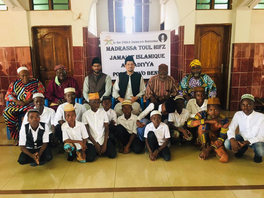 جماعت احمدیہ کی خدمتِ قرآن اور محبتِ قرآن، خود قرآن ہی کی طرح درخشاں اور تاباں ہے۔ مختلف زبانوں میں تراجم ہوں یا قرآن حکیم سکھانے کی کاوش، طباعتِ قرآن ہو یا اشاعتِ قرآن، جماعتِ احمدیہ عالمِ اسلام میں ایک منفرد مقام رکھتی ہے اور ایسا کیوں نہ ہوکہ امام زماں نے اپنی پیاری جماعت کو یہی سکھایا کہ ’’جو لوگ قرآن کو عزت دیں گے وہ آسمان پر عزت پائیں گے‘‘۔ مدرسۃ الحفظ بینن اللہ تعالیٰ جماعت احمدیہ نائیجیریا کو جزائے خیر سے نوازے جنہوں نے ایک لمبا عرصہ جماعت احمدیہ بینن سے جانے والے بچوں کو قرآن حفظ کروایا اور بینن کو حُفاظِ کرام فراہم کئے مگر لمبی مسافت اور محدود وسائل کے باعث باوجود خواہش کے بہت سے احمدی احباب اپنے بچوں کو اس عظیم برکت کا وارث نہ بنا پاتے، انہی بڑھتی ہوئی جماعتی ضروریات کے پیشِ نظر ایک عرصہ سے احبابِ جماعت بینن کو اپنا ایک مدرسۃ الحفظ نہ ہونے کی تشنگی ستارہی تھی۔ اس حوالہ سے سال 2016ء کی مجلسِ شوریٰ میں مدرسۃ الحفظ کے قیام کی تجویز ہوئی مگر ملکی حالات کے باعث فوری طور پر عملدرآمد نہ ہو سکا۔ 2020ء میں امیر صاحب بینن مکرم میاں قمر احمد صاحب کی درخواست پر حضور انور ایدہ اللہ تعالیٰ نے ازراہِ شفقت بینن جماعت کو ایک مرتبہ پھر اپنے ایک علیحدہ مدرسہ کے قیام کی اجازت عنایت فرمائی اور مکرم حافظ توصیف احمد صاحب مبلغ سلسلہ کو بطور انچارج مدرسۃ الحفظ مقرر کیا گیا۔ اللہ تعالیٰ ان کو یہ اعزاز مبارک فرمائے اورمقبول خدمت کی توفیق عطا فرمائے۔ خوشی کا سماں حضورِ انور ایدہ اللہ تعالیٰ بنصرہ العزیز کی طرف سے اجازت کی خبر نے بینن جماعت کو اپنے بچوں کو حافظِ قرآن بنانے کی ایک نئی امنگ عطا کی مگر ساتھ ہی احباب ِ جماعت کو اس طرف بھی توجہ ہوئی کہ یہ ایک عظیم فریضہ ہے جس کے لئے انتھک محنت اور لگن کی ضرورت ہے۔ مدرسہ کی اجازت کا یہ اعلان خوشی کی خبر بن کر جماعتی سوشل میڈیا کے فارمز، تحریری صورت اور جماعتی اعلانات کی صورت میں ملک کے طول وعرض میں خوب نشرہوا جس پر احباب جماعت نے لبیک کہا اور مدرسہ کے قواعد کے مطابق اپنے بچوں کو انٹرویو اور امتحان کے لئے تیاری شروع کروائی۔ ماہِ جولائی 2021ء میں حتمی طور پرتمام امیدواران کا امتحان اور انٹرویو لیا گیا اور 13 طلباء کو پہلی کلاس کے لئے مشروط طور پر شامل کیا گیا ہے۔ افتتاحی تقریب مورخہ04 اگست 2021ء کوظہر کی نمازسے قبل مکرم امیر صاحب بینن اپنے وفد کے ہمراہ پورتو نووو کی مسجد المھدی تشریف لائے۔ جہاں انچارج مدرسہ و ریجنل مشنری مکرم حافظ توصیف صاحب نے احبابِ جماعت پورتونووو اور مدرسۃ الحفظ کے طلباء کے ہمراہ اس وفد کا استقبال کیا۔ طلباء سے تعارف کے بعد امیر صاحب نے نمازِ ظہر و عصر جمع کرکے پڑھائیں جس کے بعد امیر صاحب کی صدارت میں باقاعدہ تقریب کا آغاز ہوا۔ عزیزم نویدِ فائق صاحب نے تلاوت اور فرنچ ترجمہ جبکہ عزیزم سعیدوعالیو صاحب نے حضرت مسیحِ موعود علیہ السلام کا عربی قصیدہ پیش کیا۔ مکرم حافظ فضل اللہ صاحب استاد مدرسۃ الحفظ بینن نے مدرسۃ الحفظ کی رپورٹ اور کلاسز کا لائحہ عمل پیش کرتے ہوئے اور بتایا کہ الحمدللہ پانچ ریجنز کے 13 طلباء کے ساتھ ہم اس پہلی کلاس کا آغاز کر رہے ہیں جن کو تین ماہ کے لیے مشروط داخلہ دیا گیا ہے۔ بینن جماعت کے پرانے احمدی مکرم یونس داؤداصاحب، مکرم راجی ابراہیم صاحب نائب امیر جماعت بینن، مکرم بکری مصلحو صاحب چیئرمین ہیومینٹی فرسٹ بینن، مکرم کاکپولا قاسم صاحب صدر جماعت پورتونووو اور بینن کے ابتدائی حفاظ مکرم حافظ مسرور صاحب اور مکرم حافظ کبیر صاحب نے اپنے خیالات کا اظہار کرتے ہوئے مدرسۃ الحفظ کے قیام پر اظہارِ مسرت کیا اور طلباء کو زریں ہدایات سے نوازا۔ انچارج صاحب مدرسہ احمدیہ بینن نے حاضرین، کا شکریہ ادا کیا اور دعا کی درخواست کی کہ اس مدرسہ سے نہ صرف قرآن حفظ کرنے والے طلباء نکلیں بلکہ اس پر عمل کرنے والے بھی ہوں۔ پروگرام کے آخری حصہ میں مکرم امیرصاحب نے اختتامی کلمات کہے اوراللہ تعالیٰ کا شکر ادا کیا کہ اس نے اس خواب کو پورا کیا اور حضورِ انورایدہ ال