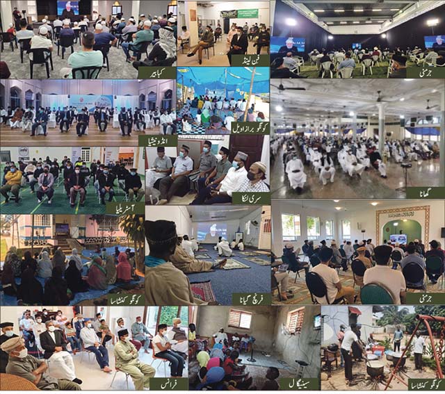 جلسہ سالانہ برطانیہ ایک عالمی حیثیت کا حامل ہے۔ ایک سال کے وقفے کے بعد جب امسال اس کا انعقاد ہوا اور حضورِ انور نے اس میں بنفسِ نفیس شمولیت فرمائی تو پوری دنیا میں رونق کا سماں تھا۔ دنیا کے پانچوں برِ اعظموں پر بسنے والے احمدیوں نے وقت کی پروا کیے بغیر اپنے امام کے خطابات کو براہِ راست سننے کی کوشش کی۔ ذیل میں دنیا کے مختلف ممالک سے جلسہ سالانہ برطانیہ میں مواصلاتی رابطے کے ذریعہ شمولیت کی بابت موصولہ رپورٹس خلاصۃً پیش ہیں: ٭…انڈونیشیا سے مکرم فضل عمر فاروق صاحب (نمائندہ الفضل انٹرنیشنل) لکھتے ہیں کہ انڈونیشیا میں کورونا وبا کی حالیہ صورتحال کی وجہ سےملک گیر لاک ڈاؤن ابھی تک جاری ہے۔ چنانچہ دو جگہوں پر ایم ٹی اے سے لائیو نشریات دکھانے کا انتظام کیا گیا یعنی مسجد نصر، بوگور جوکہ ہماری مرکزی مسجد ہے اور مسجد مبارک،بانڈونگ، مغربی جاوا میں۔ طبی حکام کی پابندیوں کو مد نظر رکھتے ہوئے جلسہ سالانہ کے پہلے روز مسجد نصر میں 75 احباب نے جلسہ سالانہ کی کارروائی دیکھی۔ ان میں سے 55 طلباء جامعہ تھے اور باقی مقامی مربیان سلسلہ اور بعض اراکین نیشنل عاملہ تھے۔ اسی طرح مسجد مبارک بانڈونگ میں 30 افراد نے جلسہ کی کارروائی دیکھی۔ اسی طرح گھروں میں اور باقی جگہوں پر جلسہ کی کارروائی دیکھنے والے احباب کی کل تعداد 6288 تھی جو کہ 304 لوکل جماعتوں میں پھیلے ہوئے ہیں۔ جماعت Manislorصوبہ مغربی جاوا میں 454 احباب، جماعت Kemangصوبہ مغربی جاوا میں 208 احباب اور جماعت Gondrongصوبہ بانٹان میں 331احباب نے انفرادی طور پر جلسہ سالانہ سنا۔ اگر چہ انڈونیشیا کا مقامی وقت برطانیہ سے 6-8 گھنٹے آگے ہے اور جلسہ سالانہ کا افتتاحی اجلاس رات ساڑھے دس بجے شروع ہوا (یعنی نماز عشاء کے دو گھنٹے بعد) لیکن احباب جماعت نے بڑی سنجیدگی سےجلسہ کی کارروائی کو سنا اور دیکھا۔ مقامی لنگر خانہ میں اس موقع پر خاص پکوان پکائے گئے ہیں جیسے سوپ، چاول، مع خاص چٹنی جو ڈبوں میں پیک کرکے احباب جماعت میں تقسیم کیے گئے۔ ایک اور قابل ذکر بات ہے کہ انڈونیشیا کے ایک مشہور اخبار Republikaنے جلسہ سالانہ برطانیہ کی رپورٹ شائع کی۔ اس میں اس بات کا ذکر تھا کہ یہ احمدیہ مسلم جماعت انٹرنیشنل کا جلسہ ہے جو کہ برطانیہ کاسب سے بڑا، پرانا اور مشہور ترین جلسہ ہے۔ نیز یہ کہ اس جلسہ میں محض امن، بھائی چارہ، اسلامی اتحاد، ہمدردی بنی نوع انسان، تقویٰ اور تعلق باللہ کی باتیں بتائی گئیں۔ فالحمد للہ علیٰ ذالک۔ ٭…گھانا سے مکرم علیم محمود صاحب مربی سلسلہ لکھتے ہیں کہ کووڈ 19 کی وجہ سے عالمگیر وبائی حالات کے پیش نظر گزشتہ دو سال سے گھانا میں جلسہ سالانہ منعقد نہیں کیا جاسکا۔ آخری جلسہ 2019ء کو باغ احمد میں منعقد ہوا تھا۔ یوکے جلسہ سالانہ کے انعقاد کی خبر سے ہر احمدی کے دل میں خوشی کی ایک لہر دوڑ گئی۔ بے شک ہم نہ جا سکیں گے، لیکن ایم ٹی اے کے ذریعہ شریک تو ہوں گے۔ پہلے اجلاس کے دوران جب دنیا کے مختلف ممالک میں بیٹھے ہوئے احمدی دکھائے گئے تو ایسے ہی محسوس ہو رہا تھا کہ ایک مقناطیسی قوّت کے ذریعہ سے بے شمار فاصلوں کے باوجود ایک دوسرے سے جُڑ کر امت واحدہ بن گئے ہیں۔ یہ احمدیت کی سچائی کا ایک زبردست زندہ نشان ہے۔ ویسے تو سارے ملک کے طول و عرض میں احمدی احباب جماعتی طور پر بھی اور ذاتی طور پر گھروں میں جمع تھے۔ لیکن ایم ٹی اے کے ویڈیو لنک کے لیے درج ذیل دو جگہوں پر بڑے پیمانے پر انتظام کیا گیا تھا: بستانِ احمد، اکرا: یہاں پر تو ایک وسیع اراضی ہے اور کووڈ 19 کے باوجود کھلے طور پر بیٹھنے کا اچھا انتظام کیا گیا تھا۔ دو بڑی LED سکرین لگائی تھیں، تاکہ حاضرین صاف تصویر دیکھ سکیں اور بہترین آڈیو کاانتظام کیا گیا تھا۔ کل حاضری 790رہی۔ کماسی سنٹرل مسجد:کماسی کی کل حاضری 700 تھی۔ یہاں بیٹھنے کا انتظام کماسی کی سنٹرل مسجد میں تھا، یہاں صرف 15 سال سے بڑے اور 65 سال سے کم عمرلوگوں کو بلایا گیا تھا۔ ٭…ایڈیلیڈ، آسٹریلیا سے مکرم عاطف زاہد صاحب تحریر کرتے ہیں کہ اللہ تعالیٰ کے فضل سے مورخہ 6تا8 اگست جلسہ سالانہ یوکے کا انعقاد ہوا۔ جلسہ سالانہ ک