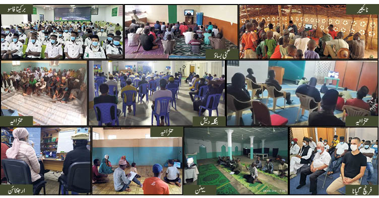 ٭…فن لینڈ سے فرخ اسلام صاحب (نمائندہ الفضل انٹرنیشنل) تحریر کرتے ہیں کہ الله تعالیٰ کے فضل سے جماعت احمدیہ فن لینڈ نے جلسہ سالانہ یو کے کو سننے اور آن لائن براہ راست دیکھنے کا انتظام کیا تھا۔ فن لینڈ کے دارالحکومت ہیلسنکی میں جماعت کے نماز سینٹر میں احباب جماعت نے جلسہ سالانہ یوکے کی برکات حاصل کرنے کے لیے بڑے جوش وخروش سے شمولیت کی اور اپنے آقا پیارے امام کی نصائح کو بڑی توجہ سے سنا۔ اسی طرح جلسہ کے مہمانوں کو کھانا بھی پیش کیا گیا۔ کووڈ سے بچاؤ کے پیش نظر تمام احتیاطی تدابیر کو اختیار کیا گیا، تمام افراد نے ماسک لگا کر اور ایک دوسرے سےفاصلہ رکھ کر جلسہ کو سنا۔ شعبہ سمعی و بصری کا MTA سےبراہ راست رابطہ تھا اور MTA پر گاہے بگاہے احباب جماعت فن لینڈ کو براہ راست دکھایا بھی گیا۔ الحمدلله نماز سینٹر میں پہلے دن کی حاضری 30 اور دوسرے دن کی حاضری 32 تھی۔ الحمد لله ٭… سُرینام سے مکرم لئیق احمد مشتاق صاحب (مربی سلسلہ) لکھتے ہیں کہ سُرینام میں اپریل 2021ء سے کورونا کی تیسری لہر جاری ہے، جس کی شدت میں تاحال کمی نہیں آئی اور روزانہ مثبت کیسز کی شرح 25 فیصد سے زائد ہے۔ اس لیے امسال ہم اس بابرکت آغاز کا حصہ نہیں بن سکے جو دنیا کے مختلف ممالک اور جماعتوں کی جلسہ سالانہ برطانیہ میں بذریعہ لائیو سٹریم شمولیت کی صورت میں ہوا ہے۔ لیکن خدا تعالیٰ کے فضل سے سُرینام جنوبی امریکہ کا پہلا ملک ہے جہاں ایم ٹی اے لوکل ٹی وی چینل RBN 5.3 کے ذریعہ ہر گھر میں پہنچ رہا ہے۔ اس لیے افراد جماعت کو بار بار مختلف طریق سےجلسہ سالانہ برطانیہ کے پروگرامز دیکھنے کی طرف توجہ دلائی گئی۔ لجنہ اماء اللہ نے بھی خواتین کو پروگرامز دیکھنے کی نصیحت کی۔ افراد جماعت کو یہ تلقین کی گئی کہ اختتامی دعا کے فوراً بعد ایپ یا فون کے ذریعہ اطلاع دیں کہ تینوں دن کتنے افراد نے پروگرام دیکھا۔ اور موصولہ رپوٹس کے مطابق خداتعالیٰ کے فضل سے 155 افراد جماعت نے جلسہ سالانہ برطانیہ کے پروگرامز دیکھے۔ الحمد للہ علیٰ ذٰلک ٭…ڈنمارک سے نعمت اللہ بشارت صاحب (نمائندہ الفضل انٹر نیشنل) لکھتے ہیں کہ الحمد للہ تمام احباب جماعت ڈنمارک اپنےپورے اہل خانہ بشمول مرد و خواتین اور بچگان اپنے اپنے گھروں میں نہایت دلجمعی اور دلی شوق و جذبہ سے انٹرنیشنل جلسہ سالانہ یوکے کے تمام پروگراموں سے مستفید ہوتے رہے۔ حضور انور کے روح پرور خطابات اور دیگر تمام مقررین کی تقاریر سب افراد خاندان نے اکٹھے بیٹھ کر سنے۔ اکثر احباب نے اپنے تاثرات کا اظہار کرتے ہوئے بتایا ہے کہ اگرچہ وہ کورونا کے باعث اس جلسہ میں خود انگلستان جاکر شامل تو نہیں ہوسکے مگر ایم ٹی اے کی برکت سے حضور انور کے تمام خطابات کے علاوہ دیگر تمام پروگراموں کو دیکھنے اور سننے سے انہوں نے یہی محسوس کیا کہ جیسے وہ خود اس جلسہ میں شامل تھے اور اس جلسہ کی برکات سے مستفید ہوئے۔ ٭…ارجنٹائن سے مروان سرور گِل صاحب (نمائندہ الفضل انٹر نیشنل) نے بتایا کہ دار الحکومت Buenos Aires کے مشن ہاؤس میں 5 احباب جماعت نے اجتماعی طور پرجلسہ سالانہ کی کارروائی کو سنا اور دیکھا۔ ٭…سیرالیون سے عبد الہادی قریشی صاحب (نمائندہ الفضل انٹر نیشنل) نے تحریر کیا کہ سیرالیون میں کووڈ 19 کی وجہ سے مساجد بند ہیں اور اجتماعات پر پابندی ہے۔ احباب جماعت گھروں اور دفاتر میں جلسہ سالانہ برطانیہ اور حضور انور ایدہ اللہ کے خطابات سے فیض یاب ہوئے۔ جماعتی ریڈیو اور ملکی چینلز نے بھی جلسہ سالانہ برطانیہ اور حضور انور ایدہ اللہ کے خطابات براہ راست نشر کیے۔ ٭…تنزانیہ سے عبد الناصر مومن صاحب اور شہاب احمد صاحب نے بتایا کہ الحمدللہ طلبہ و اساتذہ جامعہ احمدیہ تنزانیہ کو جلسہ سالانہ برطانیہ 2021ء میں بذریعہ انٹرنیٹ ایم ٹی اے تنزانیہ سٹوڈیوز کی وساطت سے شرکت کا موقع ملا۔ طلبہ و اساتذہ نے جلسہ کی مناسبت سے ہال کی تزئین و آرائش کی، مثالی وقار عمل کیا اور جدت کے لیے تینوں ایام کے دوران جلسہ گاہ میں مختلف sitting arrangements and setup کا اہتمام کیا گیا۔ جامعہ احمدیہ میں باقاعدہ طور پر جلسہ کے ٹائم ٹیبل ک