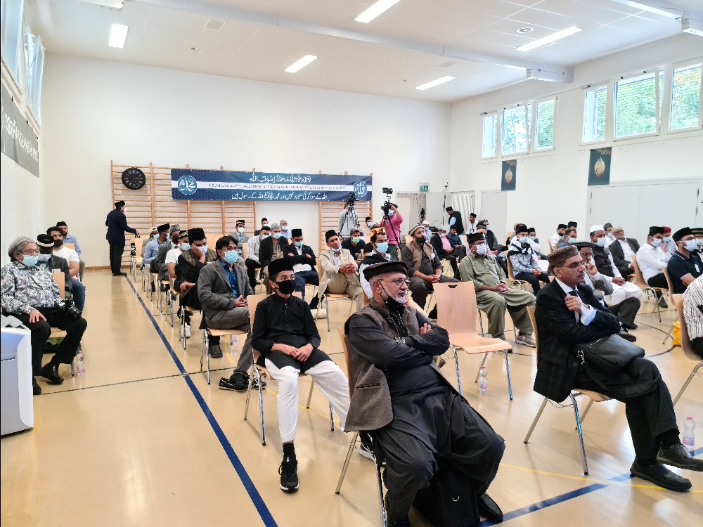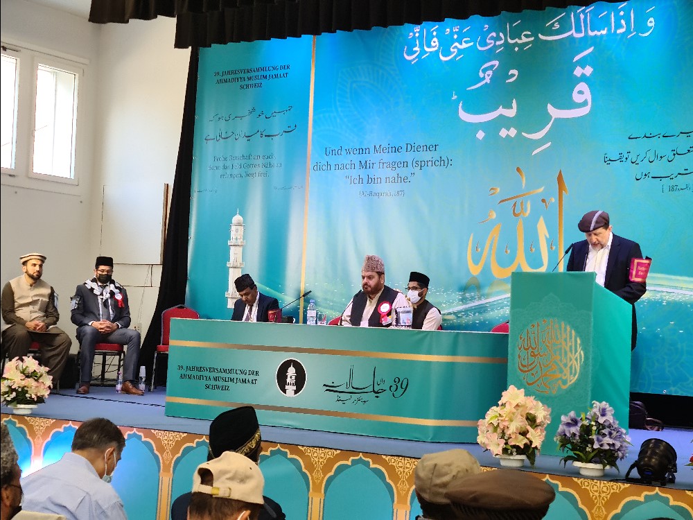 ٭…حضرت خلیفۃ المسیح الخامس ایدہ اللہ کا خصوصی پیغام اور ایمان افروز تقاریر ٭…باجماعت نمازِ تہجد، دروس، پُر سوز نمازیں اور اسلامی بھائی چارے ک نمونہ Listen to 20211005_switzerland jalsa salana byAl Fazl International on hearthis.at جماعت احمدیہ سوئٹزرلینڈ کا 39 واں دو روزہ جلسہ سالانہ مورخہ 11 اور 12؍ستمبر 2021ء بروز ہفتہ و اتوار مسجد نور ویگولٹینگن (Wigoltingen) کے قریب سکول میں منعقد ہوا۔ معائنہ انتظامات جلسہ سالانہ جلسہ سالانہ سے ایک روز قبل مورخہ 10؍ستمبر بروز جمعہ مکرم ملک عارف محمود صاحب افسر جلسہ سالانہ نے مکرم ولید طارق تارنتسر صاحب نیشنل امیر جماعت احمدیہ سوئٹزرلینڈ کو جلسہ سالانہ 2021ء کے انتظامات کا معائنہ اور خدمت پر مامور ناظمین کا تعارف کروایا۔ محترم امیر صاحب نے نظامتوں کی کارکردگی کاجائزہ لیتے ہوئے افسران اور ناظمین کو ہدایات دیں۔ جلسہ سالانہ کے انتظامی معائنہ کے بعدمحترم امیر صاحب کی صدارت میں ایک مختصر تقریب ہوئی، جس کا آغاز مکرم محمد فائز احمد خان صاحب نائب مبلغ انچارج کی تلاوت قرآنِ کریم مع اُردو و جرمن ترجمہ سے ہوا۔ امیر صاحب نے اپنے مختصر خطاب میں جلسہ سالانہ کے انتظامات کو سراہتے ہوئے جلسہ سالانہ کے افسران، ناظمین اور معاونین کا شکریہ ادا کیا۔ امیر صاحب کے خطاب کے بعد افسر جلسہ سالانہ نے بھی تمام احباب کا شکریہ ادا کیا اور انہیں ہدایات دیں۔ اس کے بعد امیر صاحب نے دُعا کروائی۔ بعد ازاں احباب کی خدمت میں کھانا پیش کیا گیا جس کے بعد نمازِ مغرب و عشاء ادا کی گئیں ۔ جلسہ سالانہ کا پہلا دِن مورخہ 11؍ستمبر بروز ہفتہ مسجد نور ویگولٹینگن میں نائب مبلغ انچارج محمدفائزخا ن صاحب نے با جماعت نمازِ تہجد اور نمازفجر پڑھائی اور درسِ قرآن کریم دیا، جس کا اُردو، جرمن اور انگریزی زبان میں ترجمہ بھی کیا گیا ۔ جلسہ سالانہ کا باقاعدہ آغاز صبح ساڑھے دس بجے پرچم کشائی کی تقریب سے ہوا۔ مکرم امیر صاحب نے سوئٹزرلینڈ کا جھنڈا جبکہ مکرم منیر احمد منور صاحب مبلغ انچارج سوئٹزرلینڈ نے لوائے احمدیت لہرایا اور افتتاحی دُعا کروائی۔ افتتاحی اجلاس پرچم کشائی کے بعد جلسہ سالانہ کے پہلے اور افتتاحی اجلاس کی کارروائی کا آغاز محترم مبلغ انچارج صاحب کی صدارت میںتلاوتِ قرآنِ کریم سے ہوا۔ تلاوتِ قرآن کریم مع جرمن و اُردو ترجمہ اور حضرت اقدس مسیح موعود علیہ السلام کے منظوم کلام کے بعدمحترم مبلغ انچارج صاحب نے حضرت خلیفۃ المسیح الخامس ایدہ اللہ تعالیٰ بنصرہ العزیزکا پیغام پڑھ کر سُنایا جو آپ نے از راہِ شفقت جلسہ سالانہ کے موقع پر ارسال فرمایا تھا۔ بعدہ پیغام کا جرمن ترجمہ محترم نیشنل امیر صاحب نے پیش کیا۔ حضور انور کے پیغام کے بعد محترم مبلغ انچارج صاحب نے افتتاحی تقریر کی اور دُعا کروائی۔ اس کے بعدپروگرام کے مطابق تقاریر کاسلسلہ شروع ہوا۔ پہلے مقرر مکرم فہیم احمد خان صاحب مبلغِ سلسلہ نے ’’وہ خدا اب بھی بناتا ہے جسے چاہے کلیم‘‘ کے موضوع پر اُردو زبان میں تقریر کی۔ اس تقریر کے بعد حضرت اقدس مسیح موعود علیہ السلام کا منظوم کلا م پیش کیا گیا۔ اِس اجلاس کے دوسرے مقررمکرم ڈاکٹرعطاء الواسع صاحب نائب صدر مجلس خدام الاحمدیہ سوئٹزرلینڈ نے ’’اَلَا بِذِكْرِ اللّٰهِ تَطْمَىِٕنُّ الْقُلُوْبُؕ۔ ذکرِ الٰہی اطمینانِ قلب کا ذریعہ‘‘ کے موضوع پرجرمن زبان میں تقریرکی۔ اس کے بعد پہلے اجلاس کے آخری مقررمکرم نعیم اللہ صاحب نے ’’نماز وصلِ الٰہی کا ذریعہ‘‘ کے موضوع پر اُردو میں تقریر کی۔ بوقت سوا ایک بجے ضروری اعلانات کے بعد وقفہ برائے طعام و نماز ِظہر و عصر ہوا۔ دوسرا اجلاس جلسہ سالانہ کے دوسر ے اجلاس کی کارروائی کا آغاز سہ پہر تین بجے مکرم فائز احمد خان صاحب نائب مبلغ انچارج کی صدارت میں تلاوتِ قرآنِ کریم سے ہوا۔ تلاوتِ قرآنِ کریم مع جرمن و اُردو ترجمہ اورمنظوم کلام حضرت اقدس مسیح موعود علیہ السلام کے بعدمکرم طلحہ تارنُتسر صاحب صدر مجلس خدام الاحمدیہ سوئٹزرلینڈ نے ’’استحکام خلافت کے لیے ہماری ذمہ داریاں‘‘ کے موضوع پر جرمن میں تقریر کی۔ دوسرے مقرر