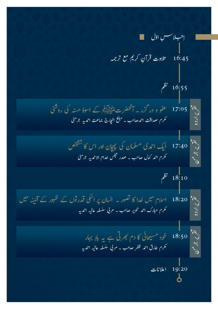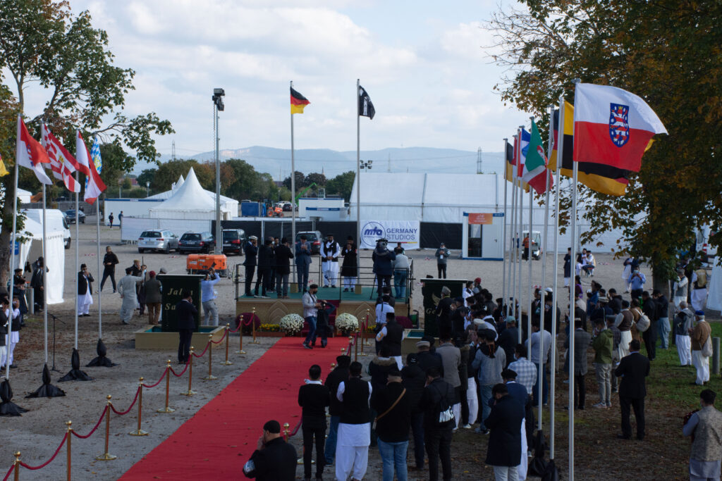 (مئی مارکیٹ، منہائم، جرمنی: نمائندہ الفضل انٹرنیشنل) Covid-19 کی وجہ سے 2020ء میں پوری دنیا میں سیاسی، ثقافتی، سوشل اورمذہبی تقریبات احتیاطی تدابیر کی نظر ہو گئیں۔ البتہ 2021ء کے دوران ان احتیاطی تدابیر میں بعض گنجائشیں پیدا کر کے محدود پیمانے پر لوگوں کو سوشل اور مذہبی اجتماعات کی اجازت دے دی گئی۔ جلسہ سالانہ برطانیہ کے انعقاد پر جماعت جرمنی نے بھی حضور ایدہ اللہ تعالیٰ بنصرہ العزیز سے جرمنی میں جلسہ سالانہ کے انعقاد کی اجازت طلب کی توحضورِانور نے کمال شفقت کا مظاہرہ کرتے ہوئے ملکی قوانین کی حدود میں رہتے ہوئے جلسہ سالانہ کے انعقاد کی اجازت مرحمت فرمائی۔ الحمدللہ رب العالمین چنانچہ اس حوالے سے جرمنی کے متعلقہ حکام سے رابطہ کر کے پانچ ہزار افراد کے اجتماع کی اجازت اور جگہ کے حصول کے لیے کوششیں شروع کر دی گئیں۔ Messe Kalsruhe،جہاں سالہاسال سے جلسہ سالانہ کا انعقاد کیا جا رہاہے، پانچ ہزار کے اعتبار سے بہت بڑی جگہ بنتی تھی۔ اللہ تعالیٰ نے مخلصین کی کوششوں میں برکت ڈالی اور شہر منہائیم میں مئی مارکیٹ کے نام سے وسیع و عریض رقبہ، جس میں وسیع ہال اور ضرورت کی بہت ساری عمارات تعمیر شدہ ہیں، جلسہ سالانہ کے انعقاد کے لیے مل گئی۔ اس سے قبل بھی اس سرزمین پر سولہ جلسہ ہائے سالانہ کا انعقاد ہو چکا ہے، شرکائے جلسہ کی تعداد بڑھنے اور انتظامات میں وسعت آجانے کی وجہ سے جلسہ گاہ تبدیل کرنا وقت کی ضرورت تھی۔ چنانچہ جلسہ گاہ کا فیصلہ ہوتے ہی جلسہ سالانہ کمیٹی ترتیب دے کر اس کی منظوری حضور ایدہ اللہ سے حاصل کی گئی۔ شرکائے جلسہ میں پورے جرمنی کی نمائندگی کو ممکن بنانے کے لئے پلان ترتیب دیا گیا۔ ۸ اکتوبر جمعہ کا روز من ہائیم اور اس کے ۱۰۰ کلومیٹر قطر میں رہنے والے احمدیوں کے لیے مخصوص کر دیا گیا ہے۔ جبکہ ہفتہ کا روز دور دراز سے آنے والے احمدیوں کو جلسہ گاہ میں آنے کی اجازت ہو گی۔ اس کے لئے مرکزی طور پر داخلہ کارڈ تیار کر کے جماعتوں کو ارسال کئے جا چکے ہیں۔ تیاری جلسہ سالانہ: اب تک یہ روایت رہی ہے کہ جلسہ سالانہ کا انعقاد چھٹیوں میں کیا جاتا ہے، جس سے سکولوں، کالجز میں چھٹیاں ہونے کی وجہ سے تیاری جلسہ گاہ کے لیے کارکنان بآسانی مہیا ہو جاتے ہیں۔ اکتوبر میں یہ سہولت حاصل نہ تھی۔ اس کے لیے مرکزی شعبہ وقفِ عارضی نے جرمنی کی تمام جماعتوں میں خطوط ارسال کر کے احباب کو ایک ہفتہ کے لیے وقف عارضی کرنے کی تحریک کی۔ چنانچہ اس سکیم کے تحت 140 احباب ایک ہفتہ کے لیے مقام جلسہ سالانہ میں وقفِ عارضی کی غرض سے تشریف لائے۔ ایک سو دس طلبہ جامعہ احمدیہ نے بھی اس خصوصی وقارِعمل میں حصہ لیا۔ اپنے طور پر بھی احباب تیاری جلسہ گاہ کے لیے وقت دیتے رہے۔ مکرم ندیم احمد صاحب، ناظم تیاری جلسہ سالانہ جن کے ذمہ مردانہ اور زنانہ جلسہ گاہ کے تمام انتظامی امور کو سر انجام دے کر جلسہ کے لیے تیار کر کے ناظمین شعبہ کے حوالے کرنا تھا 350 افراد کے ساتھ سوموار سے جمعرات تک دن رات کام کرتے رہے۔ طلبہ جامعہ احمدیہ اور وقفِ عارضی پر آنے والوں کے لیے رہائش کا انتظام بھی جلسہ گاہ میں کیا گیا تھا۔ عارضی لنگر خانہ کی تیاری میں معمول کے کام ہیں۔ لیکن Covid 19 کی وجہ سے بعض اضافی کام بھی سرانجام دیے گئے۔ اس بار زمین پر بیٹھنے کی بجائے شرکاء جلسہ کو کرسیاں مہیا کی گئیں۔ ہر کرسی پر درمیان میں 75 سینٹی میٹر کا فاصلہ رکھنا ضروری تھا۔ احتیاطی تدابیر کے پیشِ نظر مردانہ جلسہ ہال کو فاصلہ کے ساتھ 13 بلاکس میں تقسیم کیا گیا۔ ان 13 بلاکس میں 2564 کرسیاں بچھائی گئی ہیں اور ہر کرسی کے ساتھ نماز کی ادائیگی کے لئے جگہ چھوڑی گئی ہے۔ اس طرز پر زنانہ جلسہ گاہ کے دونوں خیمہ جات کو تیار کیا گیا۔ 100x30 میٹر کے خیمہ کو 12 بلاکس میں تقسیم کیا گیا۔ بلاک میں 110 کرسیاں 75 سینٹی میٹر کے درمیانی فاصلہ پر رکھی گئیں۔ خیمہ نمبر 2 جو 15X35 میٹر کا تھا اس کو دو بلاکس میں تقسیم کرکے 253 کرسیوں کی گنجائش رکھی گئی۔ جلسہ گاہ کی خاص بات حضرت امیر المومنین ایدہ اللہ تعالیٰ بنصرہ العزیز کے خطبہ جمعہ فرمودہ 6؍ دسمبر 2013ء کے اہم اقتباسات کو اردو 