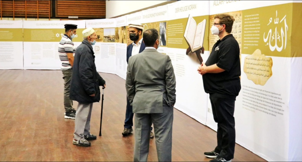 گزشتہ چند سالوں میں شعبہ تبلیغ جرمنی نے بڑی پلاننگ کے ساتھ جرمنی کے مختلف حصوں میں تبلیغی نمائشوں کا اہتمام کیا۔ ابھی یہ کاوشیں جاری تھیں کہ Covid 19 کی وجہ سے حکومت کی طرف سے لوگوں کے جمع ہونے حتی کہ عبادات کے لئے جمع ہونے پر بھی با حالت مجبوری پابندی لگا دی گئی۔ اب کچھ عرصہ سے پابندیوں میں بتدریج کمی لائی جا رہی ہے اور زندگی معمول کی طرف لوٹنی شروع ہوئی ہے تو جماعتی سرگرمیوں کی رونقیں بھی بڑھ گئی ہیں۔ شعبہ تبلیغ جرمنی نے بھی تبلیغی نمائشوں کا دوبارہ سے آغاز کر دیا ہے۔ وائٹاشٹڈ (Weiterstadt) جرمنی کا ایک خوبصورت قصبہ دو بڑے شہروں فرانکفرٹ اور ڈام شٹڈ کے درمیان واقع ہے۔ ڈام شٹڈ میں مسجد نور الدین 2003ء میں تعمیر ہوئی تھی۔ مسجد سے پانچ کلو میٹر دور موٹر وے کے دوسری طرف جماعت وائٹا شٹڈ کا قیام 1986ء میں عمل میں آیا۔ تبلیغی نمائش کے انتظامات کے لئے صدر جماعت مرزا وسیم احمد صاحب نے ذیلی تنظیموں کے نمائندگان پر مشتمل کمیٹی جنرل سیکرٹری اشعر عثمان صاحب کی صدارت میں ترتیب دی۔ اسلامی نمائش سے متعلق چھوٹے بڑے پوسٹر طبع کرواکر پہلے سے مقررہ جگہوں اور دیواروں پر چسپاں کرواے گئے۔ نمائش سے ایک ماہ قبل شہر کے ہر لیٹر بکس میں معلوماتی مواد ڈالا گیا۔ مقامی اخبار میں اشتہار شائع کروایا گیا۔ سوشل میڈیا پر اہل شہر کو معلومات باہم پہنچائی گئیں اور ان کے سوالات کے جوابات دیے گئے۔ شہر کی لائبریری اور یونیورسٹی میں بھی معلوماتی فولڈر تقسیم کئے گئے۔ اسلامی کتب اور لٹریچر کی نمائش کے لئے 18و19؍ستمبر دو دن مقرر تھے۔ 17؍ستمبر کو نماز جمعہ کے بعد احباب جماعت نے مل کر نمائش کا ہال تیار کیا۔ قرآن کریم کے تراجم، مختلف زبانوں میں اسلامی کتب، بینرز، چارٹ اور دو ٹیلیویژن سکرین لگاکر رات گئے تک محنت کر کے نمائش کے کام کو مکمل کیا گیا۔ نمائش کا افتتاح علاقائی پارلیمنٹ میں شہر کے نمائندہ Dr. Alexander Koch نے کیا۔ اس موقع پر جرمن و دیگر قومیتوں کے افراد بھی موجود تھے۔ مہمان خصوصی و دیگر حاضر مہمانوں نے پوری نمائش دلچسپی سے دیکھی۔ دونوں روز صبح نو بجے سے شام چھ بجے تک مہمانوں کی آمد کا سلسلہ جاری رہا۔ جن کی طرف سے پوچھے جانے والے سوالات کے جوابات مربیان سلسلہ مکرم نعمان خالدصاحب، مکرم آفاق احمد صاحب، مکرم ہارون احمد صاحب اور مکرم عبدالنور خواجہ صاحب دیتے رہے۔ مقامی ممبران جماعت خواتین و حضرات کے نمائش سے استفادہ کے لئے گروپس بنا دیے گئے تھے۔ وہ اسی ترتیب سے نمائش میں آتے رہے۔ تاثرات مہمانوں نے نمائش کو بہت سراہا اور اسلام سے واقفیت کا ایک کامیاب تجربہ قرار دیا۔ نظریہ جہاد کی اصل حقیقت سے واقفیت، مقدس جنگ کا تصور، ایک سکول ٹیچر نے کہا کہ میں نے اسلام سے متعلق جو کچھ سیکھا ہے اور خصوصاً جہاد کے بارے میں جو معلومات ملی ہیں وہ اپنے سکول میں طلبہ اور اساتذہ کے سامنے بیان کروں گی۔ اسلام میں عورتوں کے جو حقوق بیان ہوئے ہیں وہ جرمن خواتین کو بتانے کی ضرورت ہے تاکہ خواتین بلاخوف اسلامک سوسائٹی آیا جایا کریں۔ اسلام میں مہدی کی آمد کے بارے میں نمائش سے پہلے علم نہیں تھا۔ نمائش میں آکر اسلام کی صحیح تصویر سامنے آئی ہے۔ مسلمانوں کو اپنی تعلیم پر عمل بھی کرنا چاہئے۔ اس شہر میں اسلام مخالف سیاسی پارٹی کے لوگ 12 فیصد ہیں ۔ آپ لوگوں کو اسی طرح محنت کر کے ان کا اثر زائل کرنا پڑے گا۔ اسلام کی تبلیغی نمائش میں مکرم حافظ فرید احمد صاحب نیشنل سیکرٹری تبلیغ بھی تشریف لائے۔ لوکل صدر صاحب نے سیکرٹری تبلیغ مقامی مکرم ماجد احمد ، مکرم آفاق احمد مبلغ سلسلہ، زعیم انصار اللہ مکرم محمد اشرف صاحب، صدر لجنہ مکرمہ رضوانہ احمد صاحبہ اور تمام کارکنان جنہوں نے نمائش کو کامیاب بنانے میں تعاون کیا کا شکریہ ادا کیا۔