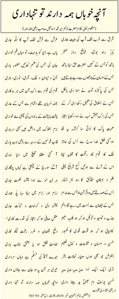 آنچہ خوباں ہمہ دارند تو تنہاداری