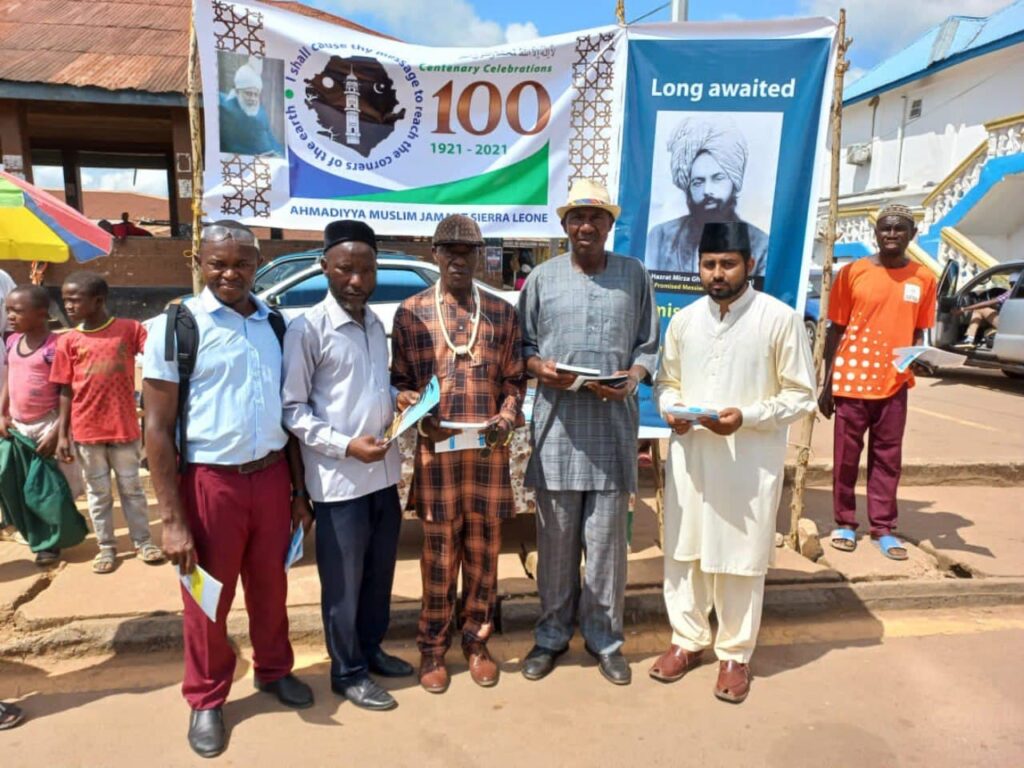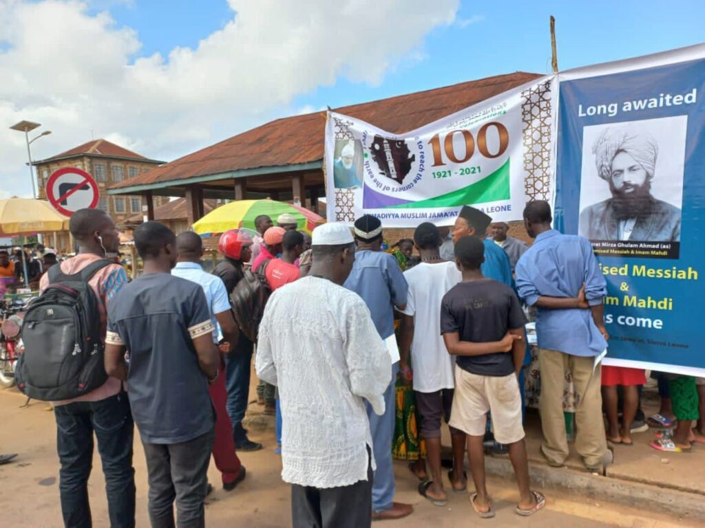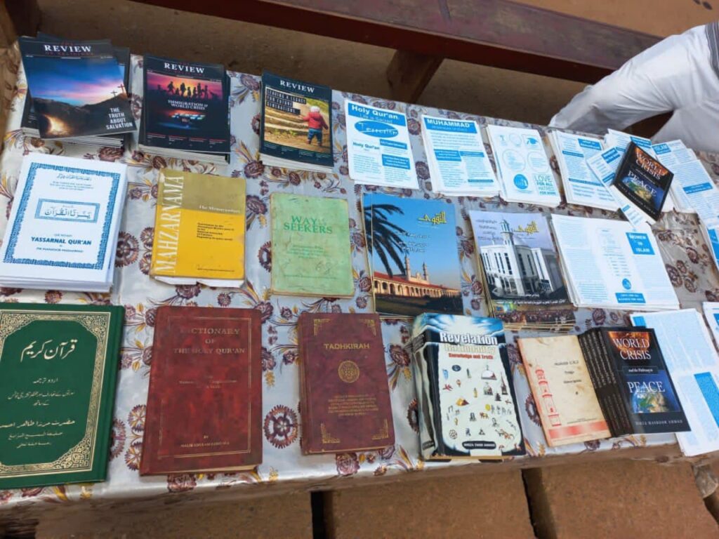 مکرم انیس احمد صاحب مربی سلسلہ واستاد طاہر احمدیہ سیکنڈری سکول کیلاہوں سیرالیون تحریر کرتے ہیں کہ محض اللہ تعالیٰ کے فضل وکرم سے مورخہ 26؍نومبر 2021ء بروزجمعة المبارک جماعت احمدیہ کیلاہوں، سیرالیون کو تبلیغی سٹال لگانے کی توفیق ملی۔ الحمد للہ علی ذالك۔ تبلیغی سٹال سے چند روزقبل جگہ کا تعین اور تیاری شروع کر دی گئی۔ سٹال کے لیے کیلاہوں ٹاؤن کی معروف شاہراہ منتخب کی گئی۔اور جمعة المبارک کے دن کا انتخاب کرنے میں یہ حکمت پیش نظر تھی کہ اس دن اردگرد کے دیہات سے لوگوں کی ایک بڑی تعداد نماز جمعہ کی ادا ئیگی کے لیے ہمارے ٹاؤن کا رخ کرتی ہے ۔ 26؍نومبر بروز جمعة المبارک بعد از نماز فجر خدام اور سرکٹ مشنریز کی مدد سے تبلیغی سٹال کو ترتیب دیا گیا۔ سٹال کے بیک گراؤنڈ میں حضرت مسیح موعود علیہ الصلوٰةوالسلام کی تصویر آویزاں کی گئی جس پر انگریزی زبان کے جلی حروف میں لکھا تھا: Long awaited Promised Messiah & Imam Mahdi has come۔ اسی طرح دوسرا بینر جماعت احمدیہ سیرالیون کے سوسال مکمل ہونے کے متعلق آویزاں کیا گیا۔ سٹال کا آغاز صبح نو بجے اجتماعی دعا سے کیا گیا۔ سٹال پر یسرنا القرآن، قرآن کریم ،قرآن کریم کی ڈکشنری و کتب حضرت مسیح موعود علیہ الصلوٰة والسلام و خلفائے سلسلہ احمدیہ و دیگر رسائل جن میں التقویٰ اور ریویو آف ریلیجنز شامل تھے برائے نمائش و فروخت رکھے گئے۔ اسی طرح لوگوں میں اسلام احمدیت سے متعلق فلائرز و لٹریچر مفت بھی تقسیم کیا گیا۔ سٹال پر آنے والے لوگوں کو مقامی زبان میں جماعت احمدیہ کا تعارف کروایا گیا نیز ان کے سوالات کے جوابات دیے گئے۔ کافی لوگ ہمارے سٹال پر آئے۔ لوگوں نے اس سٹال کو بہت سراہا۔ اس سٹال کے ذریعہ کم وبیش ٹاؤن کے 350 افراد تک پیغام حق پہنچا اور ایک ہزار کے قریب مختلف فلائرز اور لٹریچر تقسیم کیے گئے۔ الحمدللہ یہ تبلیغی سٹال کامیاب رہا۔ احباب جماعت سے دعا کی عاجزانہ درخواست ہے کہ الله تعالیٰ ہماری ادنی ٰکاوشوں کے نیک نتائج پیدا فرمائے اور لوگوں تک اسلام احمدیت کا پیغام کما حقہ پہنچانے کی توفیق عطا فرمائے اور اللہ تعالیٰ جماعت احمدیہ میں نیک اور سعید روحوں کو داخل ہونے کی توفیق عطا فرمائے۔آمین