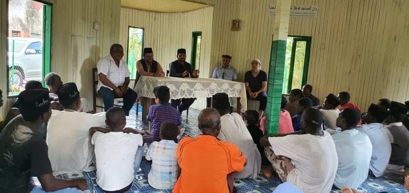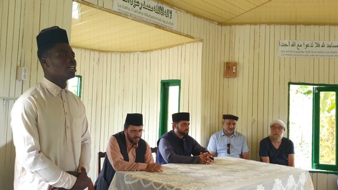 اللہ تعالیٰ کے فضل سے مورخہ 17؍اکتوبر 2021ء کو ساؤتومے میں جماعت احمدیہ کی تیرھویں مسجد مسجدبیت الرحمٰن کا افتتاح ہوا۔ اس مسجد کا 8میٹر چوڑائی کے ساتھ Octagon کا ڈیزائن ہے جس میں تقریباً ساٹھ افراد نماز ادا کر سکتے ہیں۔ مسجد کا سنگ بنیاد مورخہ 23؍ستمبر 2021ء کو رکھا گیا تھا۔ یہ مسجد کاؤوے (Caué) ضلع کے گاؤں سولداد (Solidade)میں بنائی گئی ہے۔ اس گاؤں میں مکرم سید حماد رضا صاحب ریجنل مبلغ ترینداد کے ذریعے 6؍جون 2021ء کو جماعت کا پودا لگا تھا۔ الحمد للہ مسجد کے افتتاح کے روز مبلغین کرام نے مسجد کو آباد کرنے کے متعلق احباب جماعت کو نصائح کیں۔ دعا کے بعد نمازظہر و عصر ادا کی گئیں اور تمام شاملین کی خدمت میں ظہرانہ پیش کیا گیا۔ مسجد کے افتتاح کے اس پروگرام میں12جماعتوں سے 73 احباب شامل ہوئے۔ خداتعالیٰ تمام شاملین کے ایمان و ایقان میں ترقی دیتا چلا جائے۔ آمین اس علاقہ میں احمدیت کا نفوذ شروع میں 10 افراد عیسائیت (Nova Apostolica) چھوڑ کر اسلام احمدیت میں داخل ہوئے۔ مستقل تربیتی کلاس کا اہتمام کرنے کے نتیجے میں کچھ اور لوگ احمدی ہوئے۔ ان میں اس چرچ کے پادری مکرم اوشتیلو کوژمی (Ostilo Cosme) صاحب بھی شامل تھے جو 16 سال نیشنل پارلیمنٹ کےممبر بھی رہ چکے ہیں۔ کئی دفعہ وہاں تبلیغی نشستیں منعقد کی گئیں۔ بہت سے مباحثوں کے بعد بالآخر شراب کی ممانعت پر بات اٹک گئی۔ لوگ کہنے لگے کہ ہم شراب نہیں چھوڑ سکتے۔ بہر حال مربیان سلسلہ تبلیغ کر کے وہاں سے چلے گئے۔ اگلے دن ایک شخص نے بہت ساری شراب پی اور اپنی بیوی سے جھگڑنے لگا۔ وہ عورت اپنی مدد کے لیے لوگوں کو بلانے لگی۔ اس پر اوشتیلو صاحب نے لوگوں کو کہا کہ کل ہی جماعت کے مبلغین نے ہمیں شراب سے منع کیا تھا۔ ہمیں اسلام میں داخل ہوجانا چاہیے۔ ان نومبائعین میں چونکہ ایک پادری صاحب بھی شامل تھے اس لیے تمام عیسائی فرقوں میں تشویش کی لہر دوڑ گئی۔ کئی طریقوں سے انہیں واپس عیسائیت میں لانے کی کوشش کرتے رہے۔ لیکن اللہ تعالیٰ کے فضل سے تمام لوگوں نے استقامت دکھائی اور مزید افراد جماعت میں شامل ہونے شروع ہوگئے۔ مکرم اوشتیلو صاحب کی والدہ نے کہا کہ مسلمان لوگوں کو قتل کرتے ہیں۔ پادری کہتے ہیں کہ مسلمانوں نے تیرے بیٹے کو جو تیرا اکلوتا سہارا ہےماردینا ہے۔ اس لیے اس مذہب کو چھوڑ دیں۔ انہوں نے اپنی والدہ کو سمجھایا جو 80 سال کی بوڑھی ہیں کہ احمدی مسلمان تو دوسروں کو زندگی دیتے ہیں۔ کسی کی زندگی چھینتے نہیں ہیں۔ اس عورت کو مسجد کے افتتاح پر بلایا گیا تھا۔ وہاں جماعتی تعلیمات سن کر بہت متاثر ہوئیں اور کہنے لگیں کہ میں پادریوں کی باتوں سے گھبرا گئی تھی۔ اب مجھے سمجھ آ گئی ہے کہ ہم سے جھوٹ بولا گیا تھا۔ یہ تو بہت اچھا پرامن مذہب ہے۔ یہاں سب سے مل کر مجھے اطمینان ہو گیا ہے۔