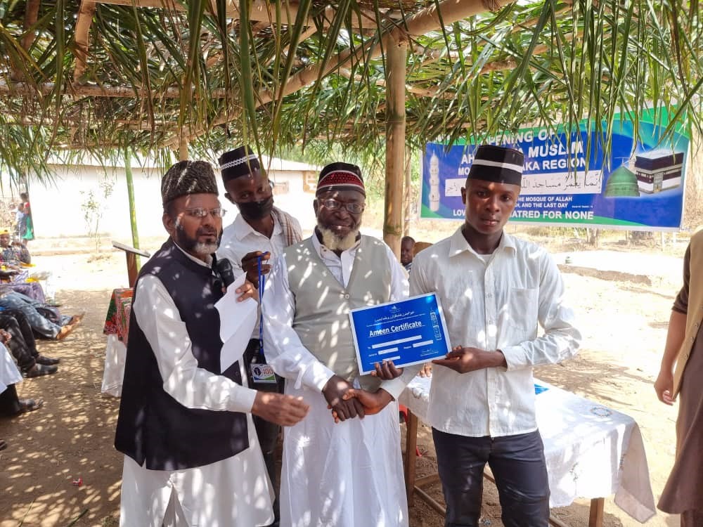Listen to 20220211-report sierra leone byAl Fazl International on hearthis.at مکرم ولید احمد صاحب ریجنل مبلغ مشاکا ریجن سیرالیون تحریر کرتے ہیں کہ محض اللہ تعالیٰ کے فضل سے مورخہ29؍جنوری 2022ء کو احمدیہ مسلم جماعت سیرالیون کو مشاکا ریجن کی جماعت Magbanlapie میں ایک نئی مسجد کے افتتاح کی توفیق ملی۔ الحمدللہ۔ مسجد کے افتتاح کے ساتھ تقریبِ آمین کا بھی انعقاد کیا گیا۔ اس مسجد کا سنگِ بنیاد جون 2021ء میں ریجنل جماعت پریزیڈنٹ مکرم Younisa Deen Kargbo صاحب، خاکسار اور علاقہ کی ایک معزز شخصیت مکرمAbdul K Kargbo صاحب نے ایک سادہ تقریب میں رکھا۔ سنگِ بنیاد کے وقت ایک بکرا صدقہ کرکے اس کا گوشت مستحقین میں تقسیم کیا گیا۔ اس مسجد کا کل مسقف احاطہ 35*45 فٹ ہے اور اس میں 250 افراد نماز ادا کرسکتے ہیں۔ مورخہ 29؍جنوری کو افتتاح کی تقریب کا باقاعدہ آغاز مولانا سعیدالرحمٰن صاحب امیر و مشنری انچارج سیرالیون کی صدارت میں تلاوتِ قرآنِ کریم سے ہوا۔ جس کے بعد قصیدہ اور نظم پیش کی گئی۔ اس کے علاوہ بچوں اور بچیوں نے کورس میں قرآنی دعائیں معہ ترجمہ، احادیث باترجمہ اور نماز باترجمہ پیش کی۔ جس کے بعد معزز مہمانوں کا تعارف کروایا گیا۔ مکرم امیر صاحب نے قرآن کریم کا پہلا دور مکمل کرنے والوں سے قرآنِ کریم سنا اور ان میں اسناد تقسیم کیں۔ کل آٹھ بچوں کو امسال اس جماعت میں قرآن کریم کا پہلا دور مکمل کرنے کی سعادت حاصل ہوئی۔ ان خوش نصب بچوں کے نام یہ ہیں۔ عزیزم لامن کروما، عزیزم محمد کمارا، عزیزم بشیر کاپو، عزیام ابراہیم سُوری، عزیزم ابوبکر کانو، عزیزہ آمنتہ بونڈو، عزیزہ حفصہ کرومااور عزیزہ مامی بانگے۔ دعا ہے کہ اللہ تعالیٰ ان کو قرآن کو پڑھنے، اس کو سمجھنے اور اس پر عمل کرنے کی توفیق دیتا چلا جائے۔ آمین مکرم امیرصاحب نے اپنے خطاب میں مساجد کی تعمیر کی اہمیت اور ان کو آباد رکھنے کی طرف توجہ دلائی اور بتایا کہ احمدیت جس اسلام کو سیرالیون میں لائی ہے وہی اسلام کی حقیقی تعلیم ہے۔ احمدیت کے آنے سے قبل اس ملک میں نماز کے لئے بلانے کے لئے اذان کا رواج نہیں تھا۔ اب اس ملک میں جماعت کی ایک ہزار سے زائد مساجد ہیں۔ اور احمدیت اسلام کی تبلیغ اور تربیت کا کام احسن طور پر کررہی ہے۔ اس کے بعد آپ نے باقاعدہ فیتہ کاٹ کر مسجد کا افتتاح کیا جس کے بعد مسجد میں نمازِ ظہر باجماعت ادا کی گی۔ نماز کے بعد شاملین کی خدمت میں ظہرانہ پیش کیا گیا۔ اس بابرکت تقریب میں 45 غیر از جماعت ائمہ، دو سیکشن چیف اور 30 جماعتوں کے نمائندوں سمیت 350 سے زائد افراد شامل ہوئے۔ دعا ہے کہ اللہ تعالیٰ اس مسجد کو ہمیشہ حقیقی نمازیوں سے آباد رکھے۔ آمین