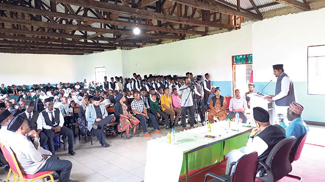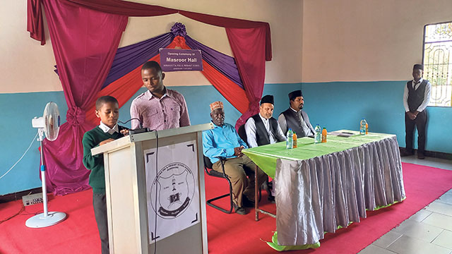 Listen to 20220304- report tanzania .. masroor hall .. byAl Fazl International on hearthis.at محض خدا تعالیٰ کے فضل سے 28؍فروری بروز پیر احمدیہ پری اینڈ پرائمری اسکول، موروگورو، تنزانیہ میں ’’مسرور ہال‘‘ کے افتتاح کی تقریب منعقد ہوئی۔ مسرور ہال کا باقاعدہ افتتاح مکرم طاہر محمود چودھری صاحب امیر و مبلغ انچارج تنزانیہ نے دعا سے کیا۔ احمدیہ پری اینڈ پرائمری سکول مشرقی افریقہ کے ملک تنزانیہ کے موروگورو ریجن میں واقع ہے۔ یہ سکول جماعت احمدیہ تنزانیہ کا پہلا پری اینڈ پرائمری سکول ہے۔ اس کا آغاز سال 2013ء میں آٹھ طلبہ سے ہوا اور اس وقت سکول میں طلبہ کی تعداد 310 کے قریب ہے۔ الحمدللہ علی ذالک۔ مکرم امیر صاحب نے اس سکول کے آغاز کی ذمہ داری جامعہ احمدیہ تنزانیہ کو سونپی۔ جامعہ احمدیہ تنزانیہ کے پہلے پرنسپل مکرم شیخ کریم الدین صاحب (حال مبلغ سلسلہ مبیا و کٹاوی ریجنز) نے اپنے اسٹاف ممبران کے ہمراہ اس سکول کے آغاز میں نمایاں کردار ادا کیا۔ پہلی کلاس جامعہ کی ہال میں شروع کی گئی۔ اسی دوران ہیومینٹی فرسٹ امریکہ کے تعاون سے ابتدائی عمارت کی تعمیر شروع ہوئی۔ سال 2014ء میں مکرم عابد محمود بھٹی صاحب کا تقرربطور پرنسپل جامعہ احمدیہ تنزانیہ ہوا۔ اور انہوں نے پرنسپل جامعہ کے ساتھ ساتھ بطور نگران احمدیہ پری اینڈ پرائمری سکول اپنی ذمہ داریوں کا آغاز کیا۔ تنزانیہ کے تعلیمی نظام میں پری کلاسز میں تین سالہ نصاب مقرر ہے۔ جبکہ پرائمری کلاسز میں سات سالہ نصاب ہے۔ احمدیہ پری اینڈ پرائمری سکول انگلش میڈیم سکول ہے اور ہمارے اس سکول میں 2013ء سے ،آغاز کے ساتھ ہر سال ایک کلاس کا اضافہ ہوتا چلا آیا۔ اور بالآخر 2021ء میں اس سکول کے ابتدائی طلبہ کی پہلی کلاس STANDARD 7 کے امتحانات پاس کر کےاس درسگاہ سے فارغ التحصیل ہوئی، جملہ 27 طلبہ نمایاں گریڈز کے ساتھ کامیاب ٹھہرے۔ الحمدللہ۔ 2014ء میں تعمیر ہونے والی عمارت 2کمروں اور 2بیوت الخلاپر مشتمل تھی۔ اور اس وقت سال 2022ء تک 10 کلاس رومزپر مشتمل تین کشادہ عمارتیں ، 3کمروں پر مشتمل دفاتر کی عمارت، طلباء، طالبات اور اساتذہ کے لیے الگ الگ بیوت الخلا کی وسیع عمارت، مجوزہ کمپیوٹر لیبارٹری کی عمارت اور ایک وسیع و عریض ’’مسرور ہال‘‘ کی عمارت سکول کا حصہ ہیں۔ سکول اسٹاف میں کل 14مستقل اساتذہ،6 رضاکار اساتذہ اور 5مستقل کارکنان شامل ہیں۔ جبکہ نگران احمدیہ پری اینڈ پرائمری سکول مکرم عابد محمود بھٹی صاحب جامعہ سٹاف کی معاونت سے سکول کے جملہ انتظامی امور کی نگرانی کرتے ہیں۔ مورخہ 28؍فروری 2022ء کو مکرم امیر صاحب تنزانیہ نے ’’مسرور ہال‘‘ کا افتتاح کیا۔ فیتہ کاٹنے کے بعد تختی کی نقاب کشائی کی گئی۔ اس کے بعد امیر صاحب کو سکول کا دورہ کروایا گیا۔ بعد ازاں تقریب کا آغاز ہوا۔ سکول کے طالب علم عزیزم یوسف علی ماکامے نے تلاوت کی اور انگریزی ترجمہ پڑھا۔ سکول کی مختصر تاریخ منظوم انداز میں سواحیلی زبان میں پیش کی گئی۔ جس کے بعد سکول کے جملہ طلبہ نے ’’سکول گیت‘‘ پڑھا، جس میں مہمان خصوصی کے لیے استقبالیہ کلمات اور بچوں کی سکول سے محبت کا اظہار تھا۔ بعد ازاں مکرم عمر بشیر استاد سکول نے ایک رسالہ پیش کیا جس میں مختصر تاریخ، کامیابیاں اور چیلنجز کا اظہار کیا گیا۔ بعدہ مکرم امیر صاحب نے طلبہ و جملہ حاضرین سے خطاب کیا۔ آپ نے جماعت کا تعارف کروایا، خدمت انسانیت میں جماعت احمدیہ مسلمہ کے نمایاں کردار سے آگاہ کیا۔ مزید برآں بچوں کو محنت سے تحصیل علم کی تاکید کی اور اساتذہ کو دلجمعی اور حب الوطنی کے جذبہ کو مد نظر رکھ کر تعمیر قوم کا حق ادا کرتے ہوئے محنت سے فریضہ ادا کرنے کی تلقین کی۔ آپ نے سکول اور جامعہ کی انتظامیہ کے لیے اظہار تشکرکیا۔ آخر پر مکرم عابد محمود بھٹی صاحب پرنسپل جامعہ و نگران احمدیہ پری اینڈ پرائمری سکول نے مہمانان کا شکریہ ادا کیا۔ تقریب کا اختتام دعا سے ہوا۔ جس کے بعد شاملیں میں ریفریشمنٹ تقسیم کی گئی۔ یہ تمام ترقیات آج ہم خلافت کی برکت سے سمیٹ رہے ہیں۔ اللہ تعالیٰ پیارے آقا حضرت مرزا مسرور احمد خلیفۃ المسیح الخامس ایدہ اللہ تعالیٰ بنصرہ العزی