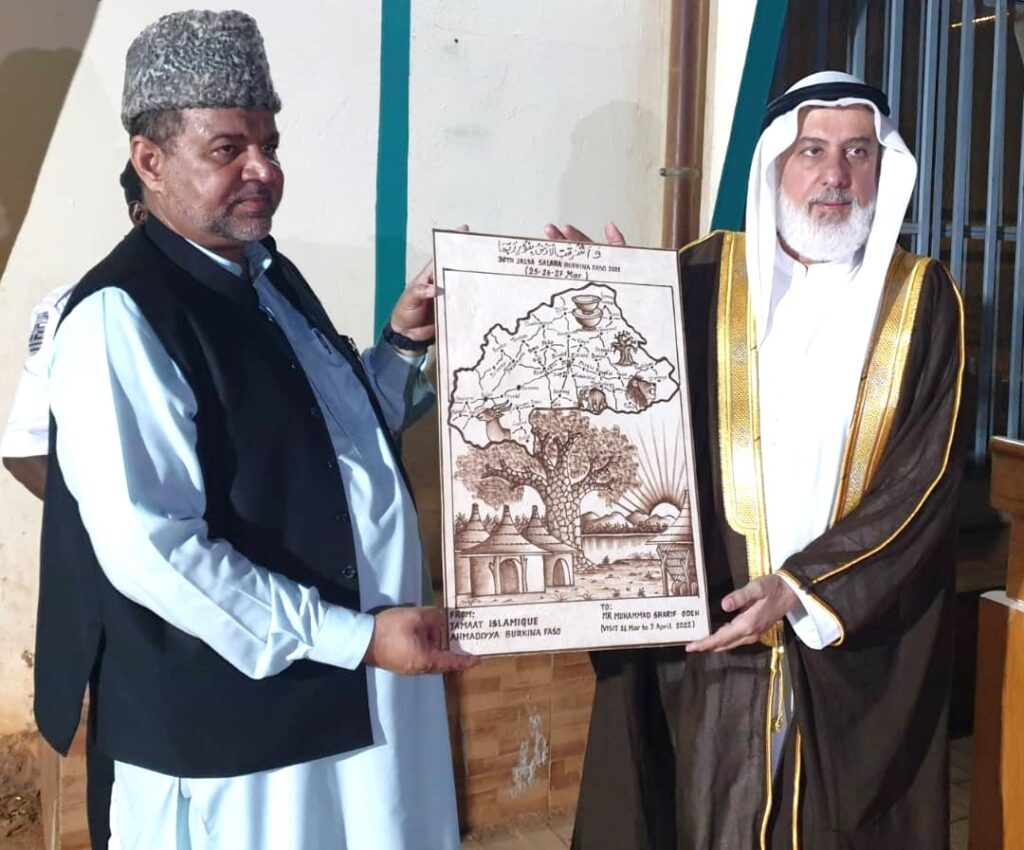 Listen to 20220422-burkinafaso markzi mehman ....eshaeya.. byAl Fazl International on hearthis.at امسال سیدنا حضرت امیر المومنین ایدہ اللہ تعالیٰ بنصرہ العزیز کی جانب سے مکرم محمد شریف عودہ صاحب امیر جماعت کبابیر کو برکینا فاسو کے 30ویں جلسہ سالانہ کے لیے مرکزی نمائندہ مقرر کیا گیا تھا۔ آپ مورخہ 21؍مارچ 2022ء کو بینن کے دورے کے بعد برکینا فاسو تشریف لائے۔ آپ نے 25 تا 27 مارچ برکینافاسو کے تیسویں جلسہ سالانہ میں شرکت کی اور اپنی پرجوش تقاریر، نماز تہجد اور نمازوں کی امامت کرکے دعاؤں کے ذریعہ حاضرین جلسہ کے ایمان تازہ کیے۔ آپ نے خلافت سے محبت اور اطاعت کے غیر معمولی واقعات حاضرین کو سنائے۔ علاوہ ازیں پریس کانفرنسز، ریڈیو، ٹی وی، سوشل میڈیا، پرنٹ میڈیا اور دیگر کو متعدد انٹرویوز دیے اور اسلام کی خوبصورت تعلیمات کو لوگوں تک پہنچایا۔ جلسہ کے بعد آپ کو برکینافاسو کی متعدد جماعتوں کا دورہ کرنے کی توفیق ملی۔ آپ کے دورے کے دوران چار نئی مساجد کا افتتاح عمل میں آیا۔ آپ نے مبلغین کرام سے میٹنگ کی ۔اسی طرح آپ جامعۃ المبشرین تشریف لائے اور طلبہ سے پر مغز خطاب کیا۔ آپ کے دو ہفتہ کےکامیاب دورے کے آخر پر 2؍اپریل 2022ء کو شام سات بجے مرکزی مشن ہاؤس واگا دوگو میں آپ کے اعزاز میں ایک عشائیہ منعقد کیا گیا۔ اس پروگرام میں واگا دوگو شہر سے ممبران نیشنل مجلس عاملہ، مجلس عاملہ انصار اللہ، مجلس عاملہ خدام الاحمدیہ، مبلغین کرام اور ان کی فیملیز، جامعۃ المبشرین کا سٹاف، احمدیہ ہسپتال کے ڈاکٹرز اور دیگر معززین شامل ہوئے۔ مجموعی طور پر ایک صد پچاس کے قریب لوگ اس پروقار تقریب میں شامل ہوئے۔ واگا دوگو مشن میں ایوان مسرور کے سامنے خوبصورت صحن میں اس عشائیہ کا اہتمام کیا گیا تھا۔ تقریب کا آغاز تلاوت قرآن مجید سے ہواجو مکرم حافظ سورے بشیر صاحب نے کی۔ بعد ازاں مکرم محمود ناصر ثاقب صاحب امیر جماعت برکینا فاسو نے مہمان خصوصی کا شکریہ ادا کیا۔ مکرم امیر صاحب نے بتایا کہ جس دن سے آپ برکینا فاسو تشریف لائے ہیں مسلسل کام میں مصروف ہیں۔ روزانہ کی بنیاد پر آپ کی مصروفیات کا ایک بھر پور پروگرام سامنے تھا جسے آپ نے خوش دلی کے ساتھ مکمل کیا۔ آپ نے اندرون ملک کم و بیش تیرہ صد کلومیٹرز کا بائی روڈ سفر کیا۔ جو آسان کام نہیں تھا۔ دوران سفر آپ مسلسل تربیتی اور تبلیغی جہاد اور دعاؤں میں مصروف رہے۔ آپ کی تقریروں نے جماعت میں ایک نیا جذبہ پھونک دیا ہے۔ اللہ تعالیٰ آپ کو بہترین جزا دے۔ ان کلمات کے ساتھ آپ نے جماعت احمدیہ برکینا فاسو کی طرف سے مہمان خصوصی کی خدمت میں ایک سووینیر، نرم لیدر کے ٹکڑے پر روایتی آرٹ کے ایک خوبصورت نمونے کی صورت میں پیش کیا۔ اس پر آپ کانام، برکینافاسو میں عرصہ قیام اور برکینا فاسو کا نقشہ وغیرہ کندہ تھے۔ صدر مجلس خدام الاحمدیہ نے بھی مجلس خدام الاحمدیہ کی طرف سے خدام الاحمدیہ کی ٹی شرٹ جس پر خدام الاحمدیہ کا لوگو پرنٹ تھا پیش کی۔ اس کے ساتھ ہی معزز مہمان کو دعوت تقریر دی گئی۔ مکرم محمد شریف عودہ صاحب نے خلافت کے ساتھ تعلق، اطاعت خلافت، خلافت کی شفقتوں، قبولیت دعا اور خلافت کی برکت سے بے انتہا فیوض کے حصول کا واقعاتی رنگ میں تذکرہ کیا۔ یہ سب واقعات اتنے ایمان افروز تھے کہ وقت گزرنے کا احساس ہی نہ ہوا۔ آپ کی تقریرڈیڑھ گھنٹہ جاری رہی۔ آپ کی تقریر کا رواں فرنچ ترجمہ مکرم ابو بکر سانوگو صاحب مبلغ سلسلہ کو کرنے کی توفیق ملی۔ تقریر کے اختتام پر آپ نے دعا کروائی جس کے بعد مہمانوں کی خدمت میں کھانا پیش کیا گیا۔ کھانے کے بعد گروپس کی شکل میں اور انفرادی طور پر بہت سارے احباب نے آپ کے ساتھ تصاویر بنوائیں۔ (رپورٹ: چودھری نعیم احمد باجوہ۔ نمائندہ الفضل انٹرنیشنل)