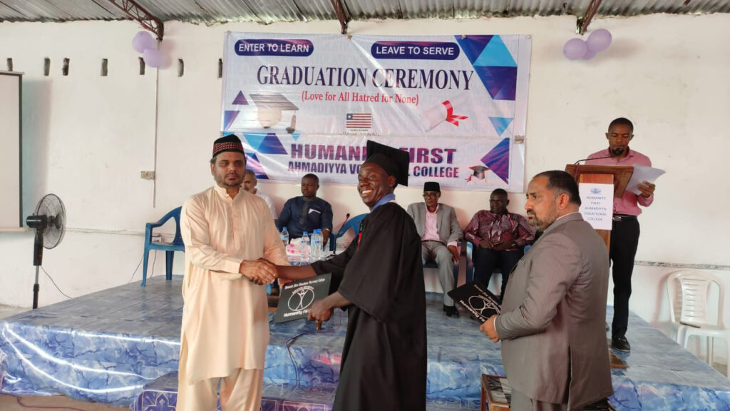 اللہ تعالیٰ کے فضل و کرم سے جماعت احمدیہ لائبیریا کو ہیومینٹی فرسٹ لائبیریا کے ووکیشنل کالج کی تیرھویں سالانہ گریجوایشن کی تقریب مورخہ 28؍نومبر کو منعقد کرنے کی توفیق ملی۔ تقریب میں محترم امیر و مشنری انچارج لائبیریا اور حکومت کی جانب سے کھیلوں کے نائب منسٹر پیٹر بیماء نے شرکت کی۔ گریجوایشن کی تقریب کے سارے انتظامات پرنسپل ہیومینٹی فرسٹ کالج مکرم سلمان احمد صاحب نے اپنی نگرانی میں ادا کیے۔ لائبیریا میں ہیومینٹی فرسٹ کے ووکیشنل کالج کا آغاز 2011ء میں ہوا۔ آغاز میں سکول سٹاف صرف چار افراد پر مشتمل تھا اور طلباء کی تعداد بھی نہایت کم تھی۔ لیکن وقت کے ساتھ ساتھ محض اللہ کے فضل سے کالج اپنی جڑیں مضبوط کرتا چلا گیا اور قوم کے نوجوانوں کے ہاتھ میں ہنر کی طاقت دینے کے دس سال مکمل کر چکا ہے۔ امسال ہیومینٹی فرسٹ ووکیشنل کالج اپنے دس سال مکمل کر رہا ہے اور تعلیمی معیار کو ہر سال اچھے سے اچھا بناتے ہوئے بارہ بیچ تعلیم مکمل کر کے میدان عمل میں کالج کا نام روشن کر رہے ہیں۔ مورخہ 28؍نومبر کو تیرھویں گریجوایشن تقریب میں کل 270 طلباء میں امیر صاحب لائبیریا اور نائب منسٹر صاحب نے اسناد تقسیم کیں۔ ان 270 طلباء نے مختلف شعبہ جات میں مقرر کردہ کورس مکمل کر کے باقاعدہ امتحان پاس کیا۔ قارئین کی دلچسپی کے لیے یہاں اس بات کا تذکرہ کرنا بے سود نہ ہوگا کہ ہیومینٹی فرسٹ لائبیریا اس وقت مندرجہ ذیل چھ شعبہ جات میں طلباء کو تعلیم دینے میں مصروف ہے ٭ ڈرائیونگ ٭کمپیوٹر کورس ٭الیکٹریشن ورک ٭ٹیلرنگ ٭ریفریجریٹر اور اے سی مرمت کورس ٭آٹو مکینک کورس تقریب کے آخر میں نائب منسٹر صاحب نے ہیومینٹی فرسٹ کی کاوشوں کی پذیرائی کرتے ہوئے کہا کہ لائبیریا ووکیشنل کالجز میں سے ہیومینٹی فرسٹ کا نام نمایاں ہے اور یہ ادارہ لائبیریا کی ترقی میں اپنا اہم کردار ادا کر رہا ہے جس کو حکومت قدر کی نگاہ سے دیکھتی ہے۔ اور امید کرتی ہے کہ یہ ادارہ اپنا دائرہ کار ہر آنے والے دن کے ساتھ وسیع سے وسیع تر کرتا چلا جائے گا۔ (رپورٹ: مرزا عمر احمد۔ نمائندہ الفضل انٹرنیشنل) ٭…٭…٭